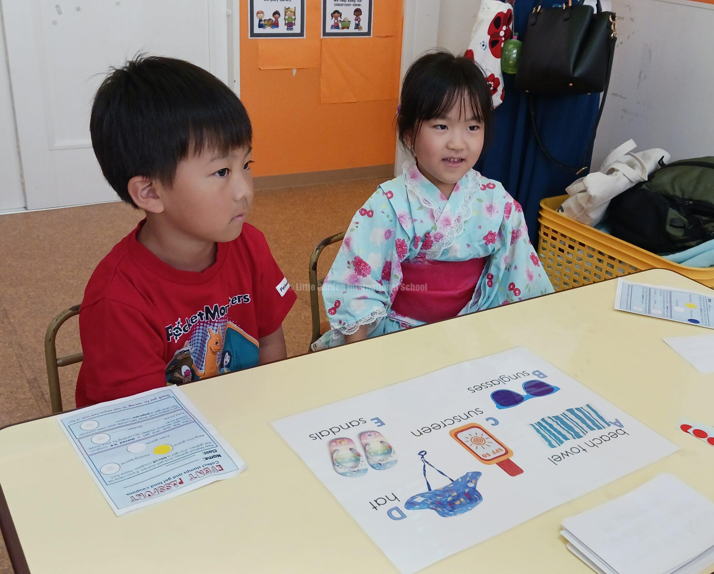 クイズコーナーでは、先生が考えたクイズを答えました。ちょっと難しいものもあったのか、「ちょっと考えちゃった…。」と、教えてくれる子もいました。