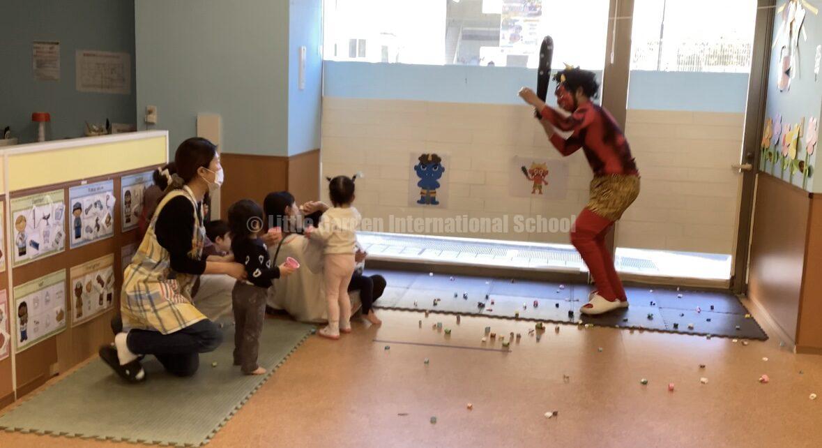 Today was Setsubun! We started with stories and songs. Suddenly, an “Oni” (ogre) came into the room, and everyone started screaming! Some children cried at first, but they were very brave. They threw beans and shouted “Go away, Oni!” until the monster left.After the fight, we ate yummy homemade “Oni Crepes.” The children were so happy to eat the cute monsters! It was a great day of courage and sweet treats.