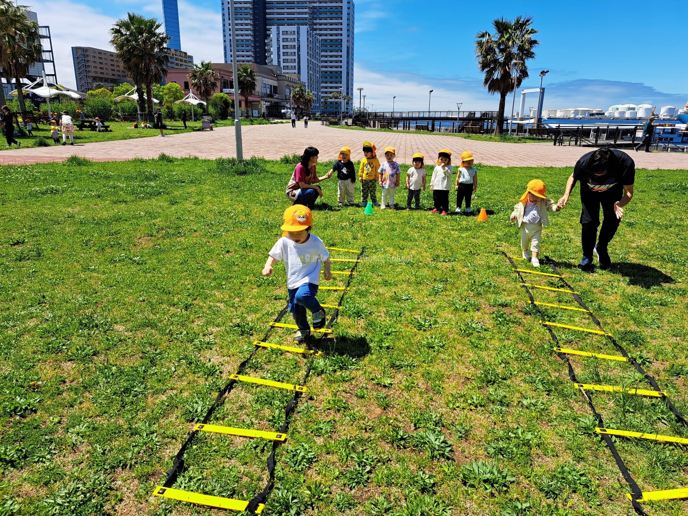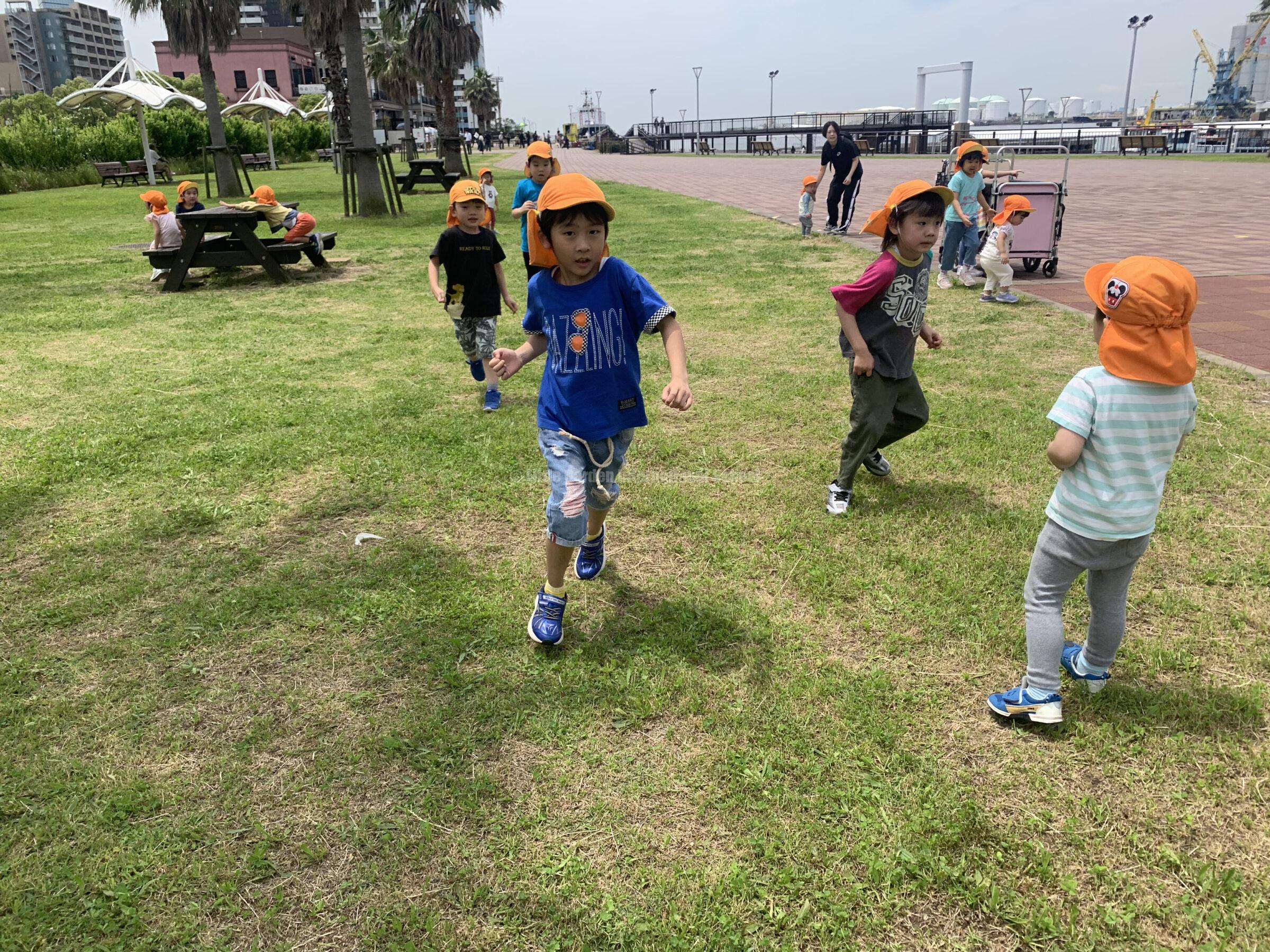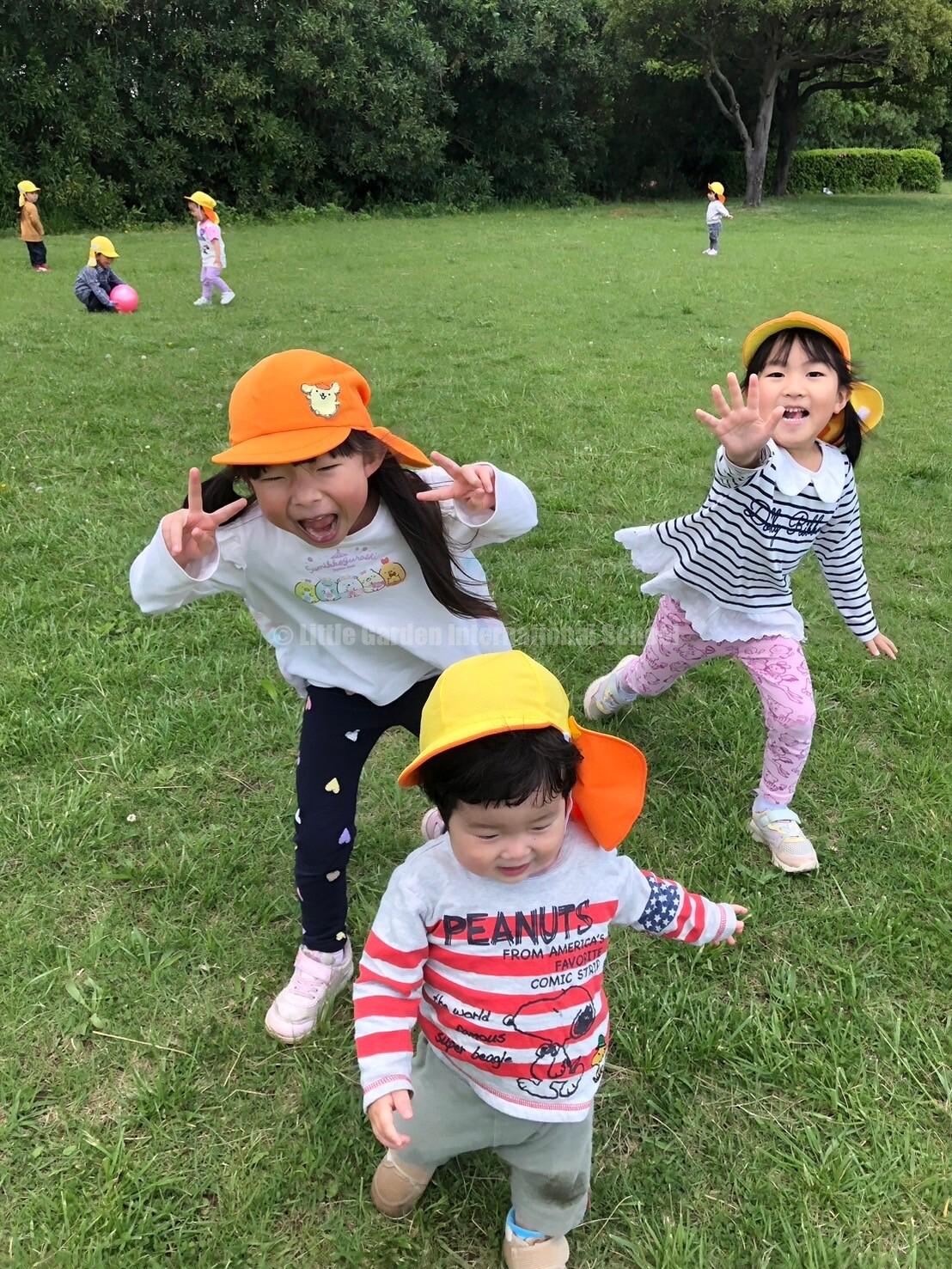 On the other hand, the photos below were taken when the older classes, K1 and K2, went on a picnic. We went to Chiba Park and the children were delighted with the beauty of the park and had fun playing with the facilities in the park.