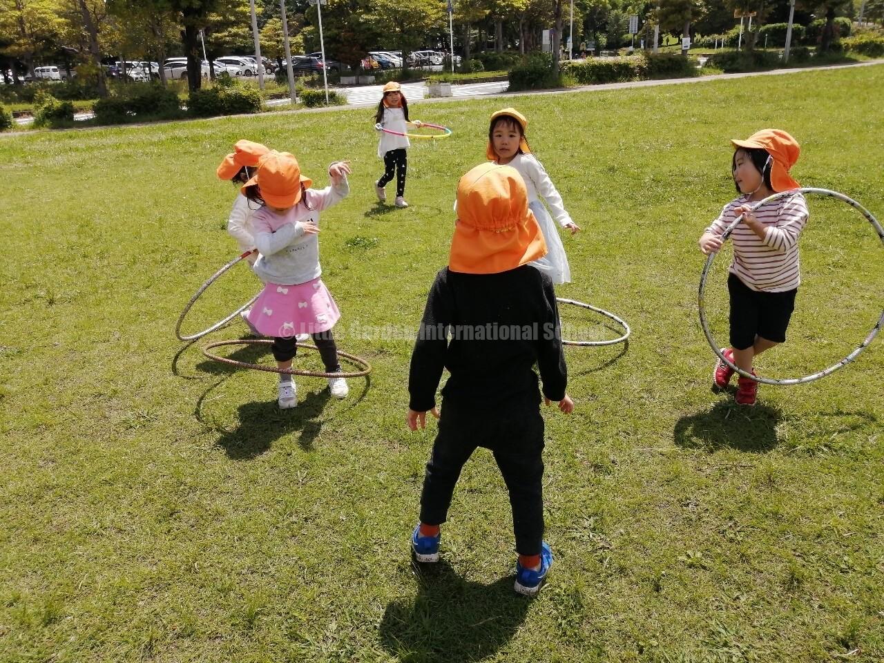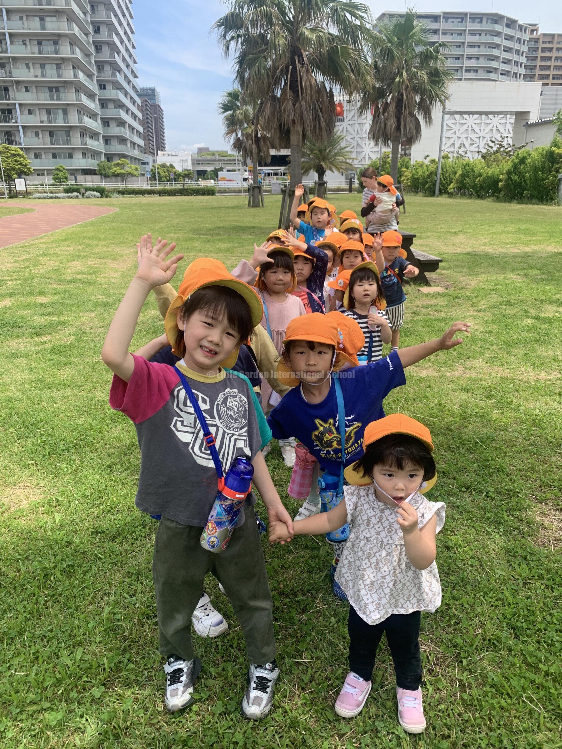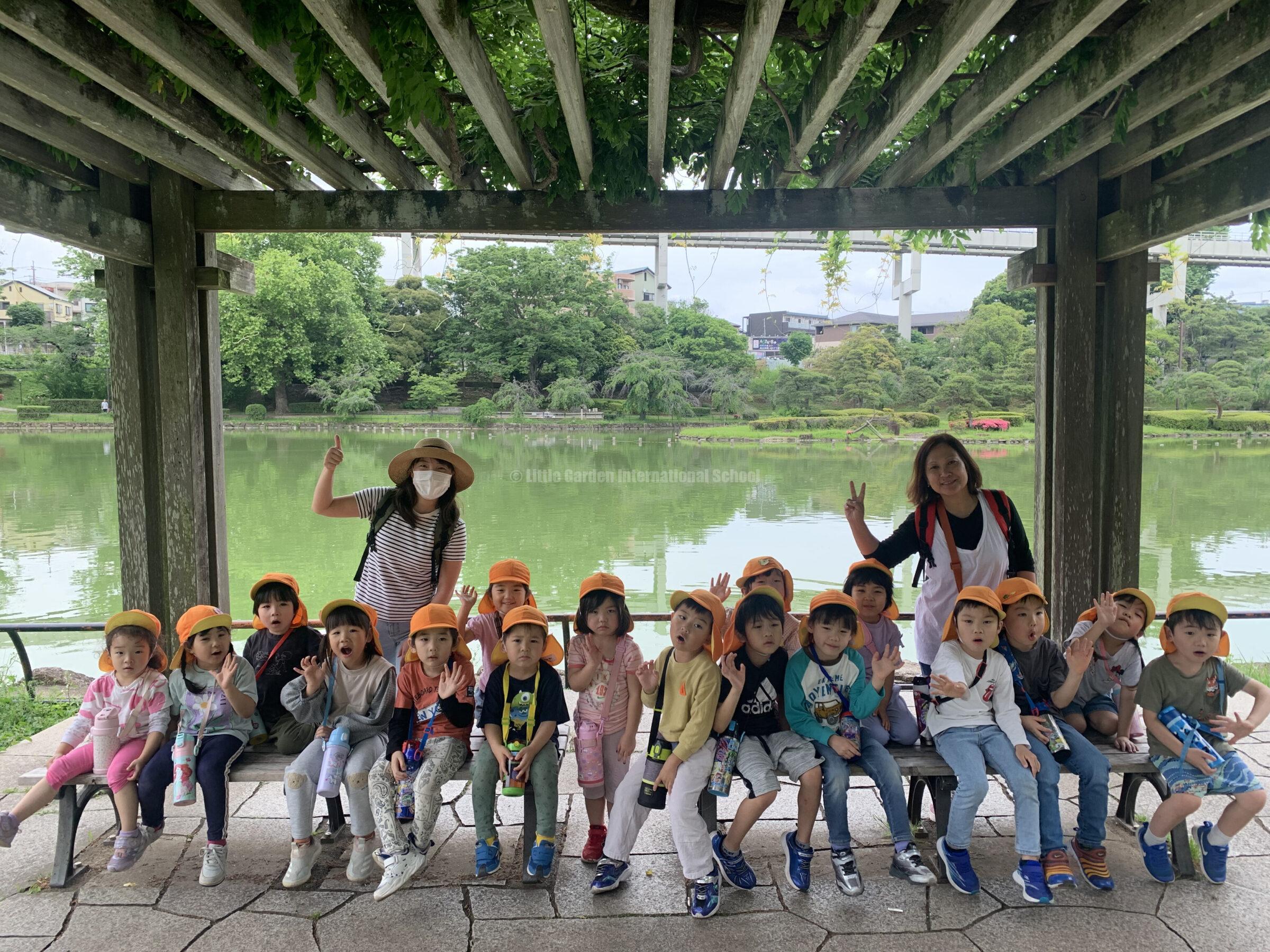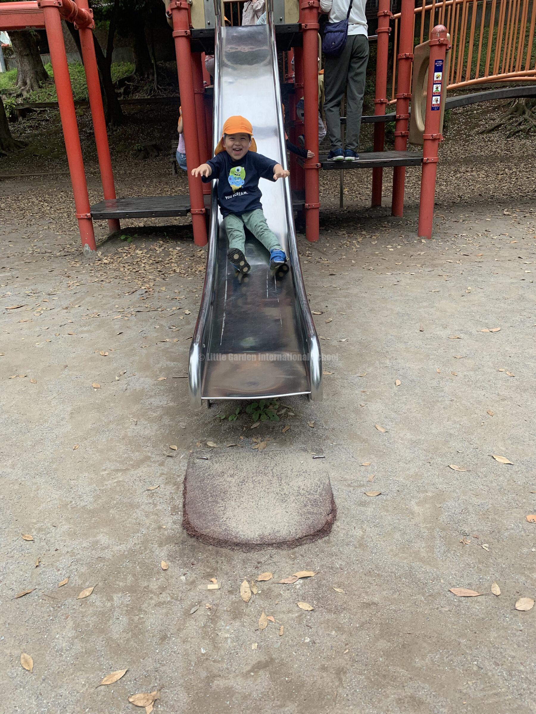 On the other hand, the photos below were taken when the older classes, K1 and K2, went on a picnic. We went to Chiba Park and the children were delighted with the beauty of the park and had fun playing with the facilities in the park.