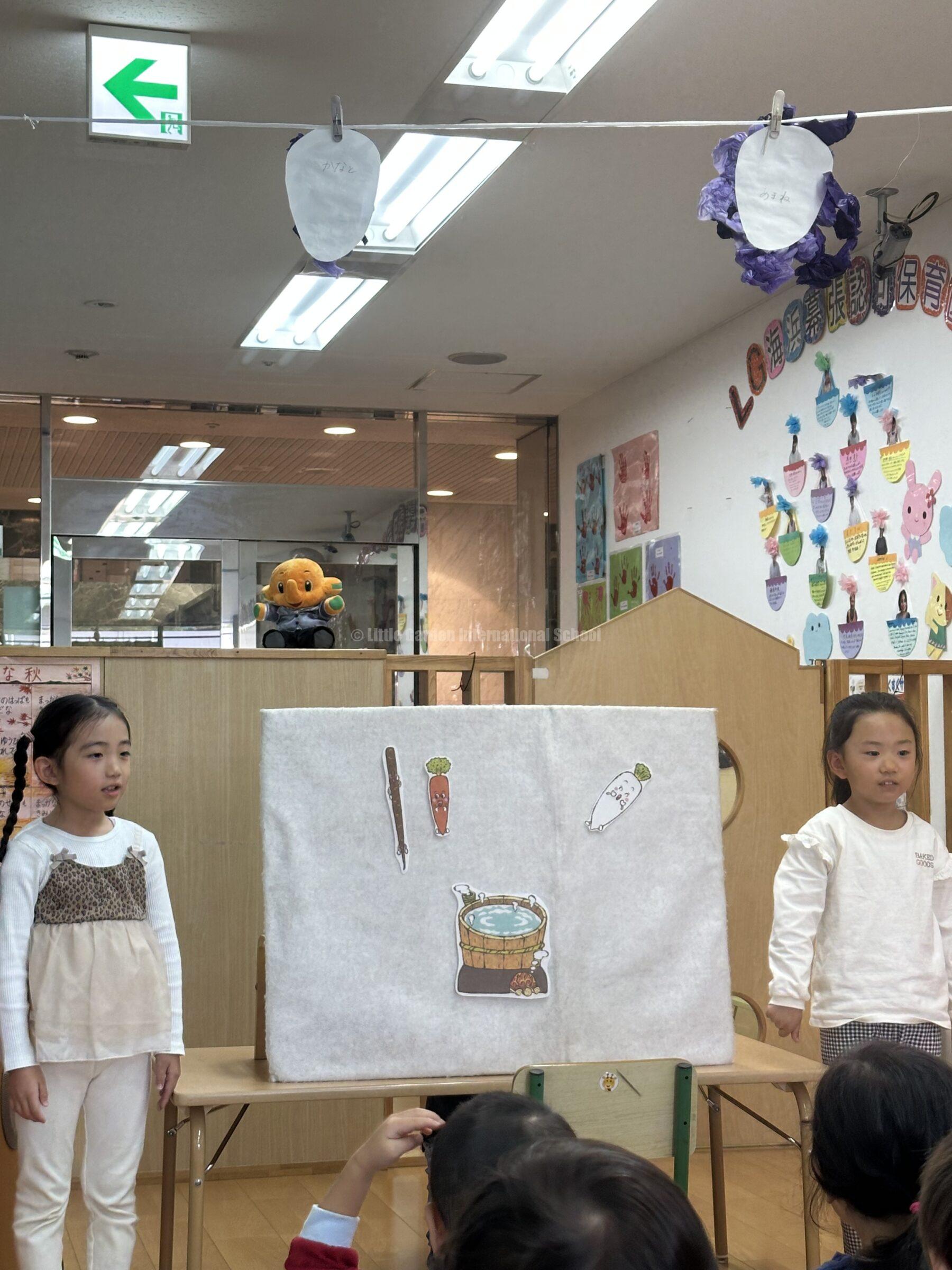 今月はぞう組のお友達からの出し物「だいこんさん、にんじんさん、ごぼうさん!」