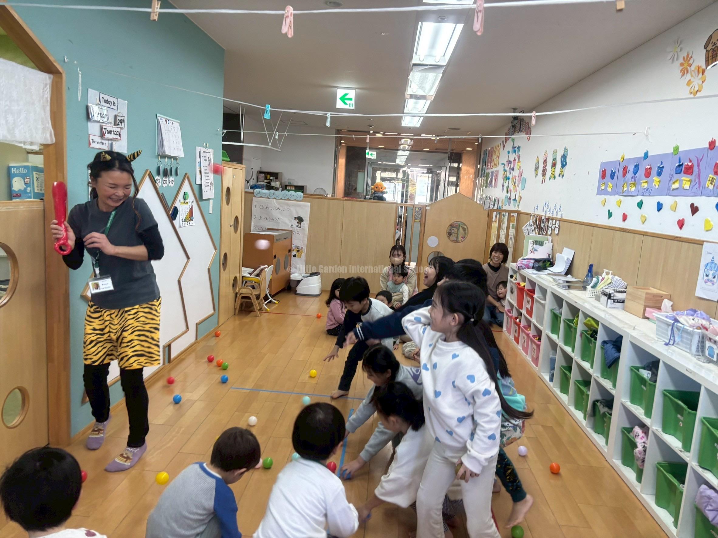 今日は豆でなく、ボールで「鬼は外!福は内!」とオニを退治しました👍