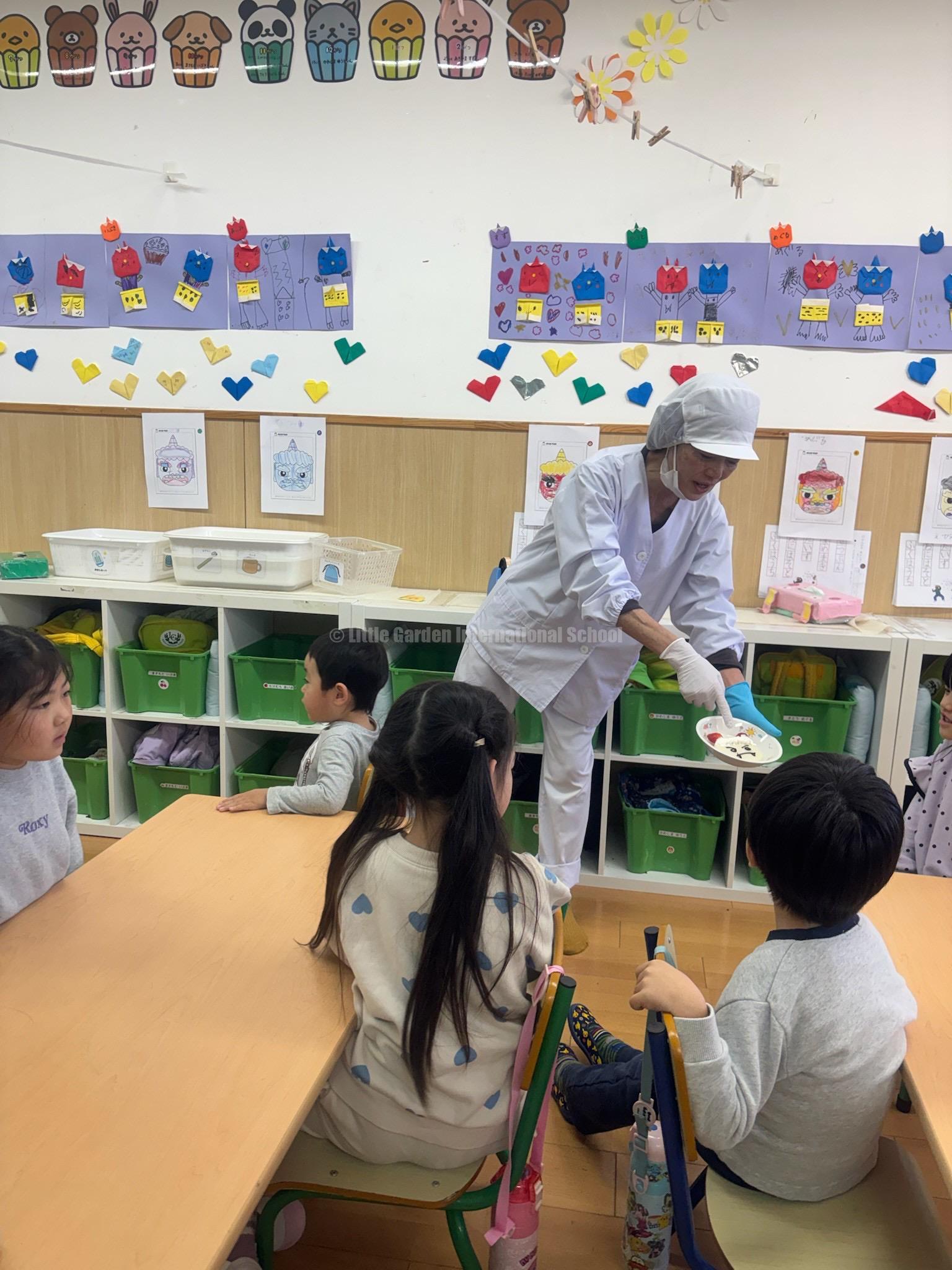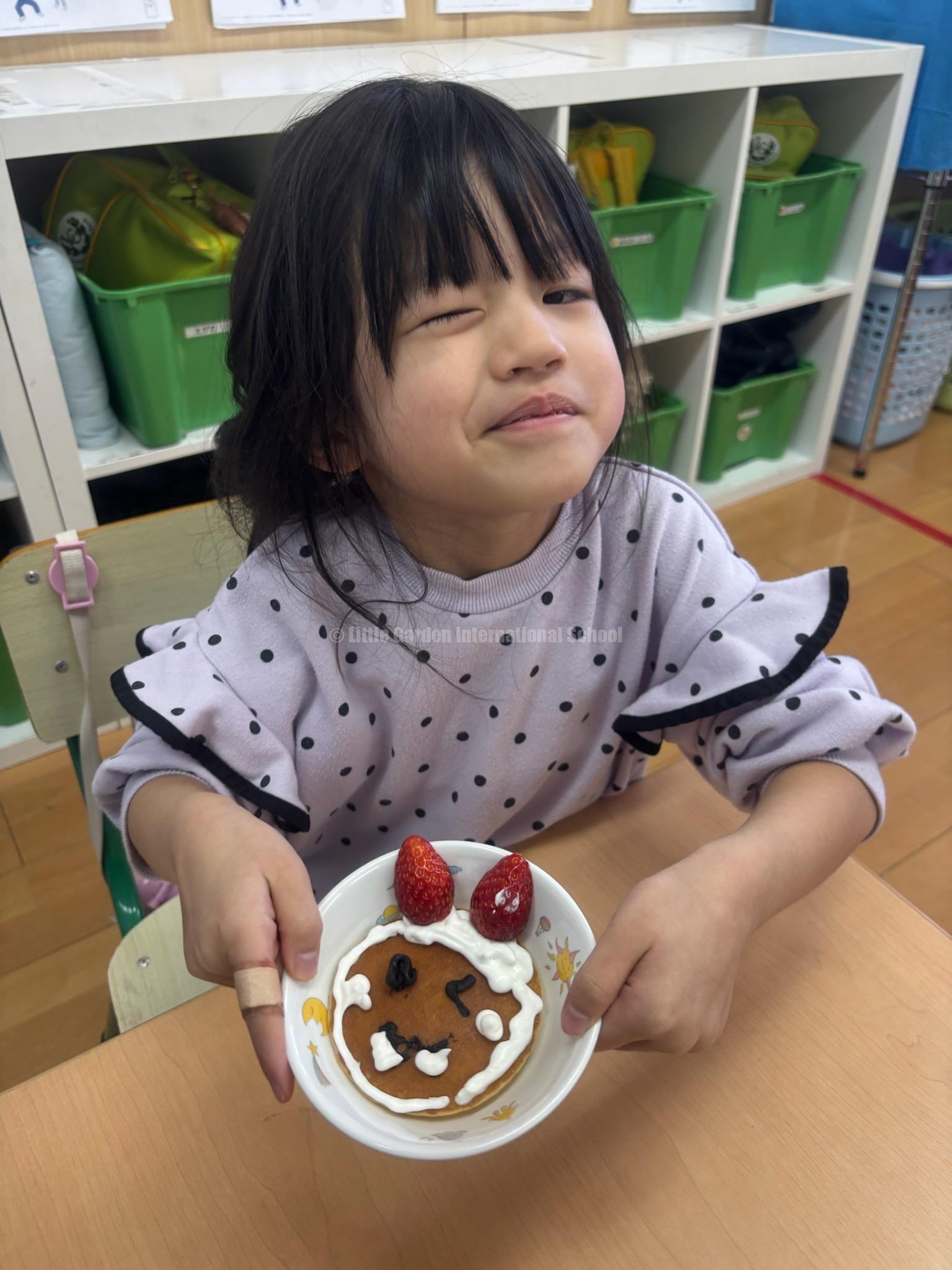 節分の会が終わり、幼児組さんは食育でパンケーキにオニをデコレーション🎶しました☺