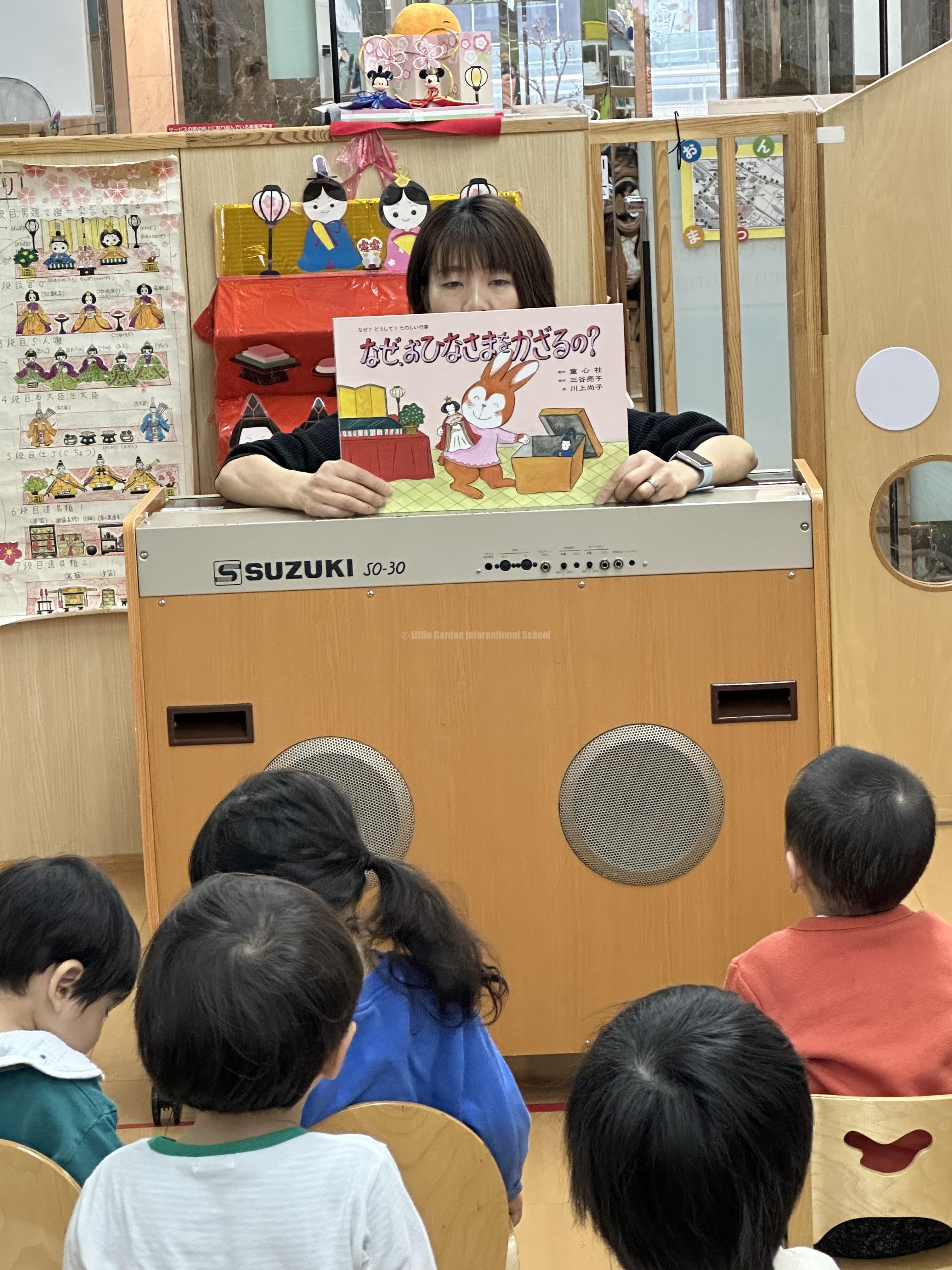 そして「なぜおひなさまをかざるの?」の紙芝居を真剣に聞いていました☺