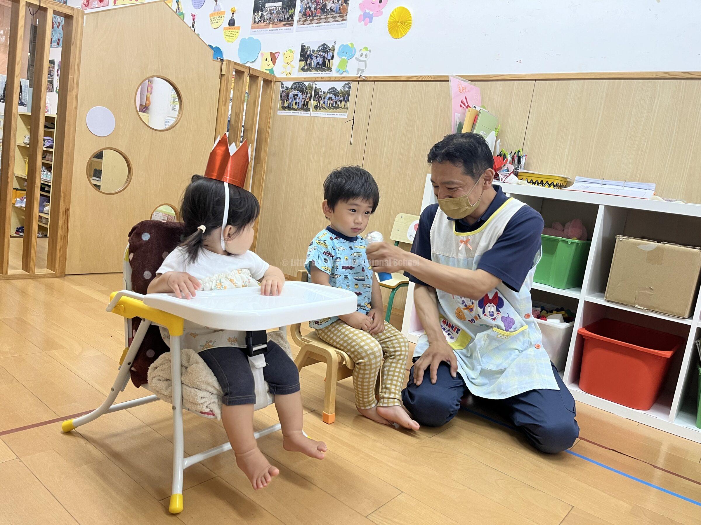 7月の誕生児は、ひよこ組(0歳児)、りす組(1歳児)の2名でした。