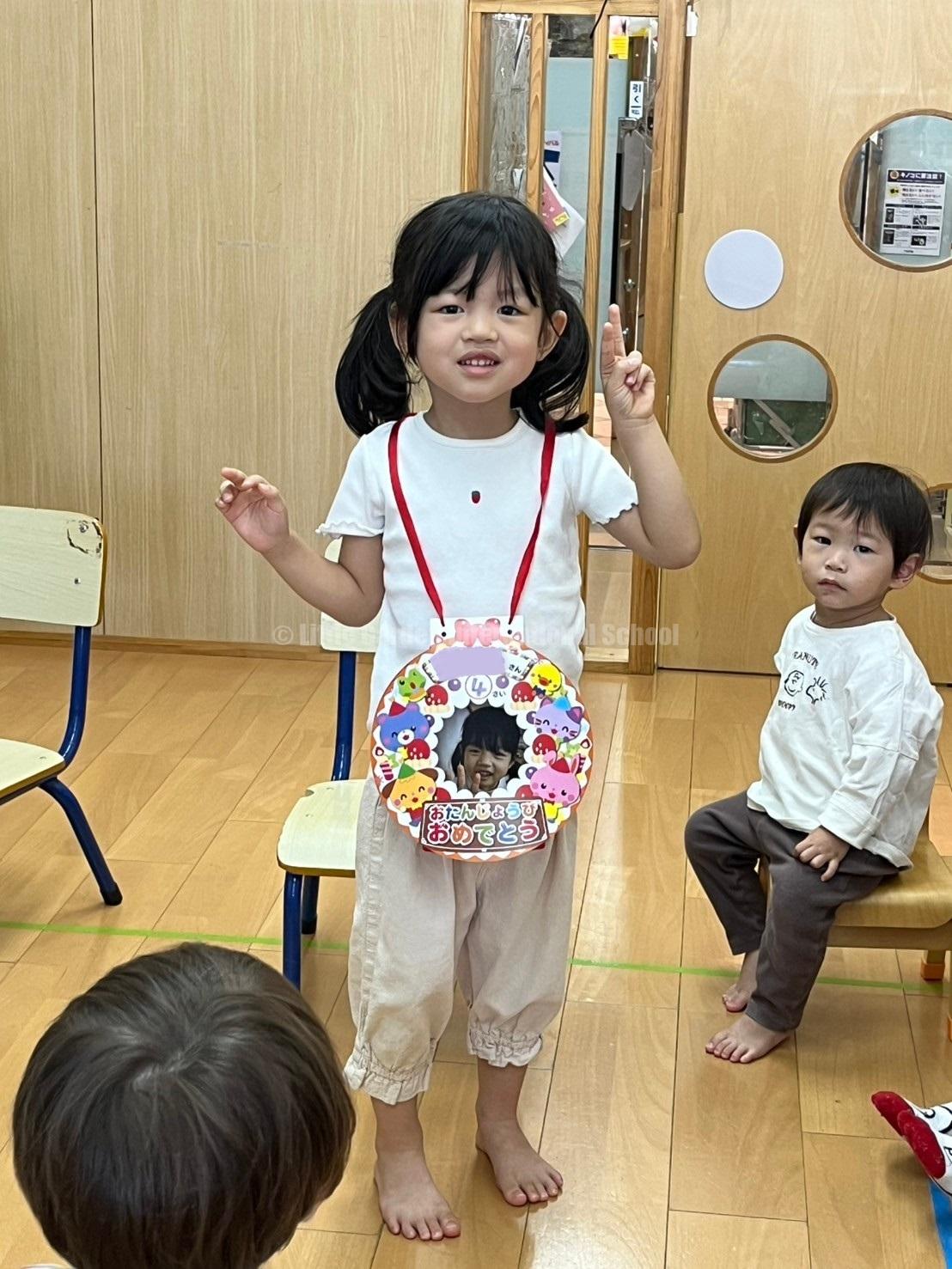 10月の誕生児は、ぱんだ組(年少児)、りす組(1歳児)の2名でした。