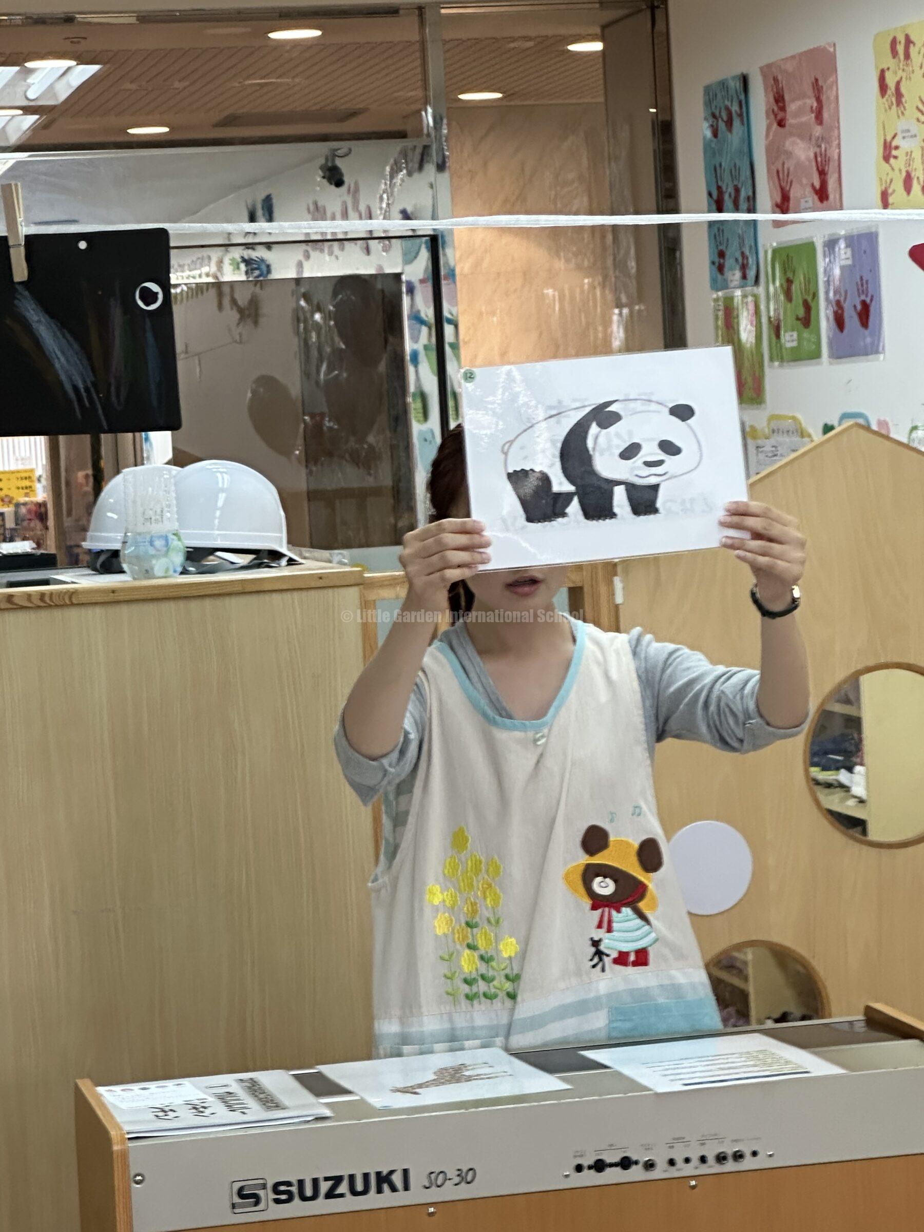 お次は先生からの出し物☺「動物の鳴き声クイズ」です!!ネコ、イヌ、ブタ、ゾウ、ゴリラ等などみんな真剣に考えていました!!さて、この問題のパンダの鳴き声は何でしょ~か??
