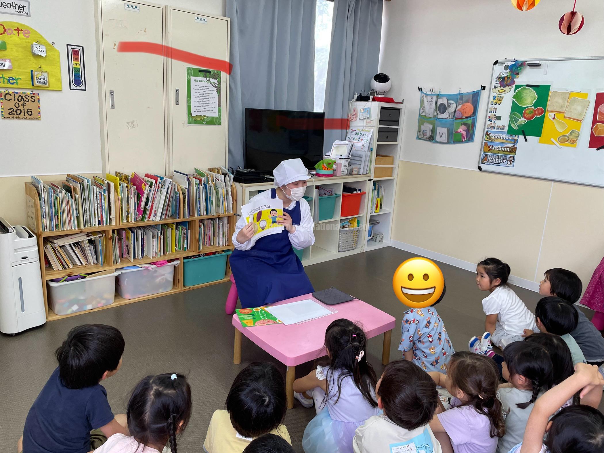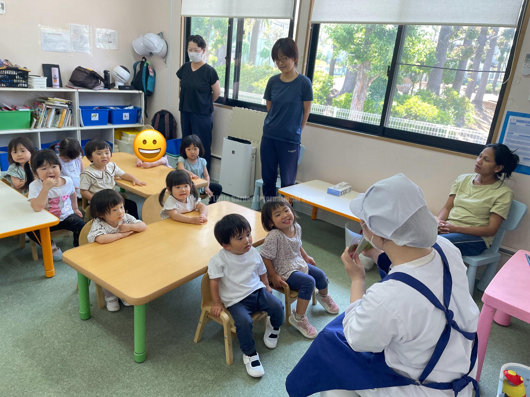 今年度の食育は絵本を使用した食育ということで、4月は「おべんとうバス」 5月は「いろんなおやさいどこになる?」 6月は「サンドイッチサンドイッチ」の読み聞かせを行いました!