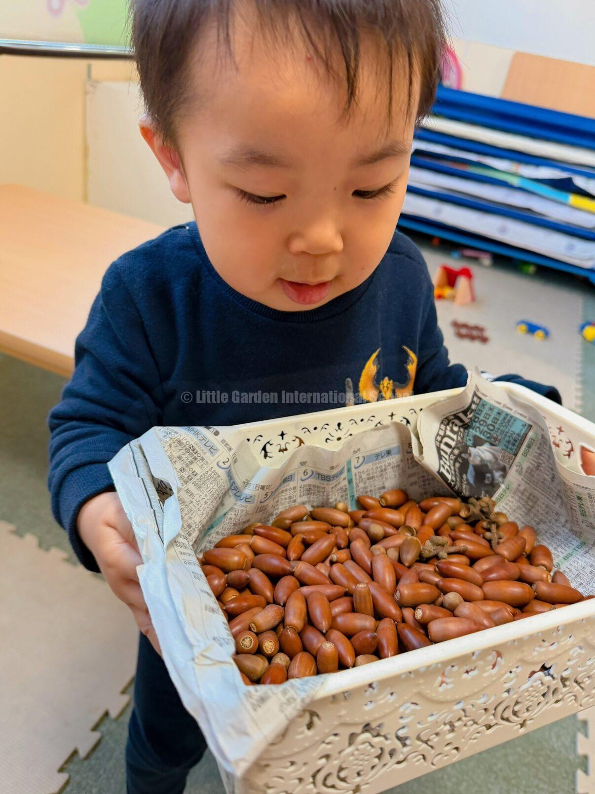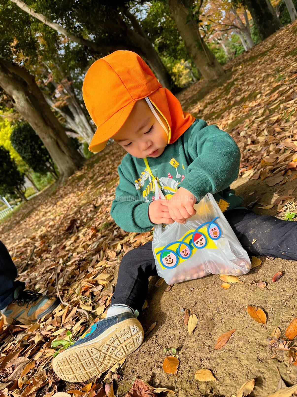 公園に着くと、早速大小様々などんぐりたちがたくさん落ちていて、子どもたちは大興奮🙌