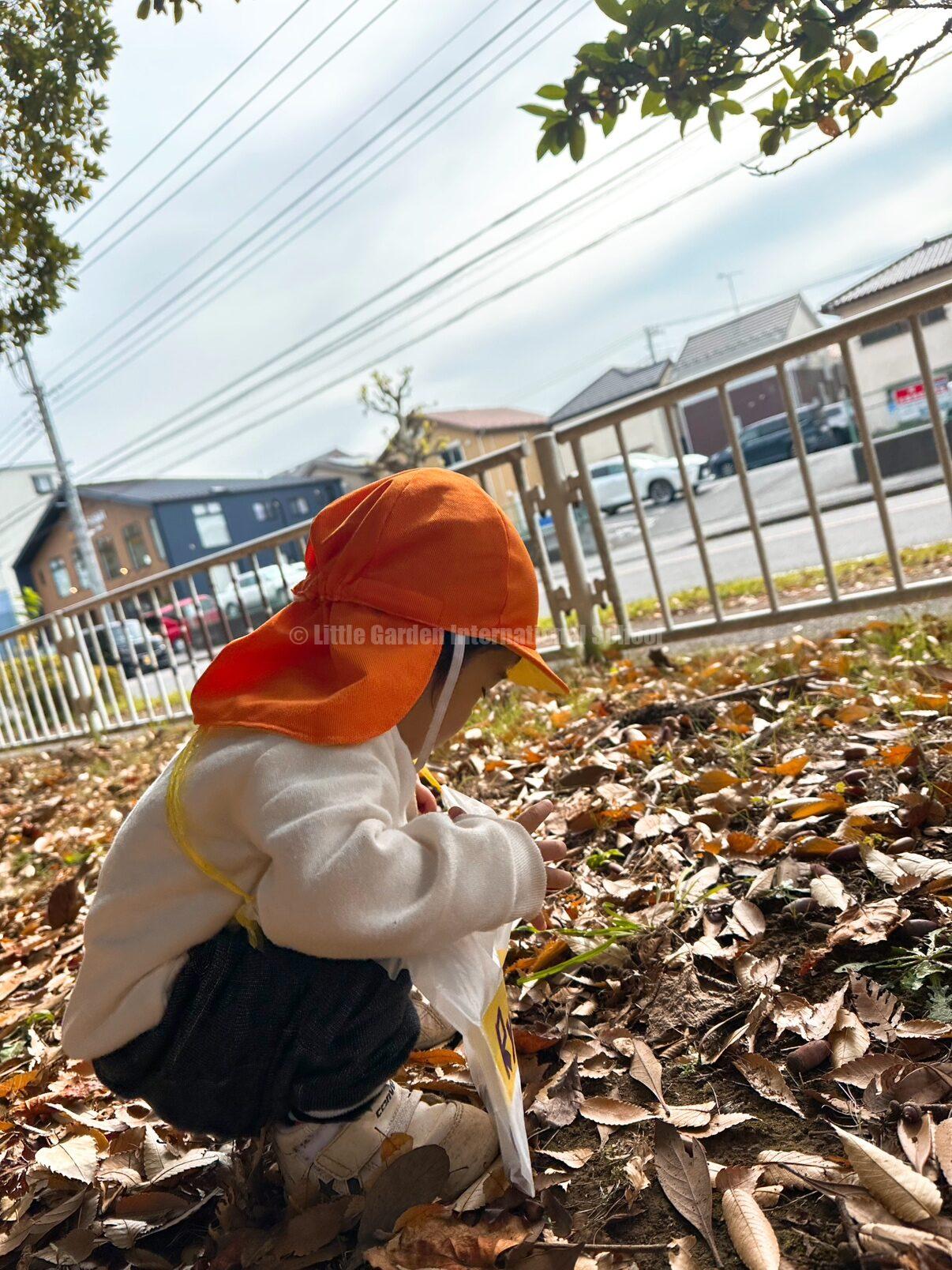 この時期ならではの楽しみと言ったら、みんな大好き【Acorn picking🌰-どんぐり拾い- 】先日、全園児で近所の大きな公園まで行ってきました🐾
