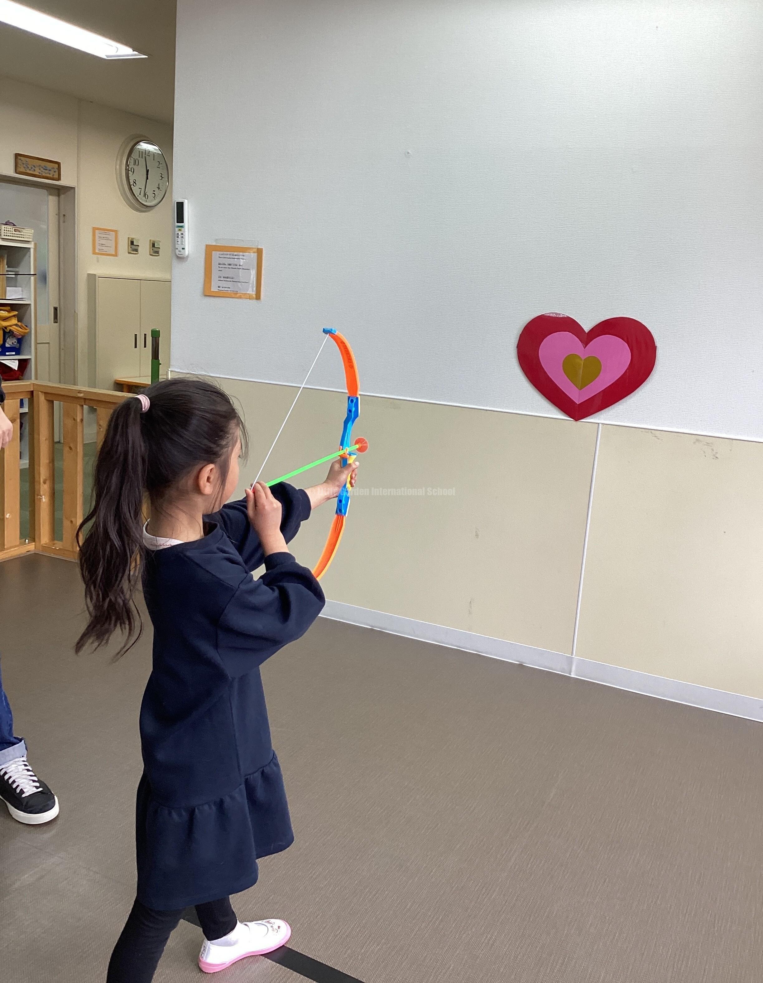 大きいお兄さんお姉さんのクラスは「あなたのハートに狙い撃ち💘」の弓矢ゲームでも盛り上がりました!