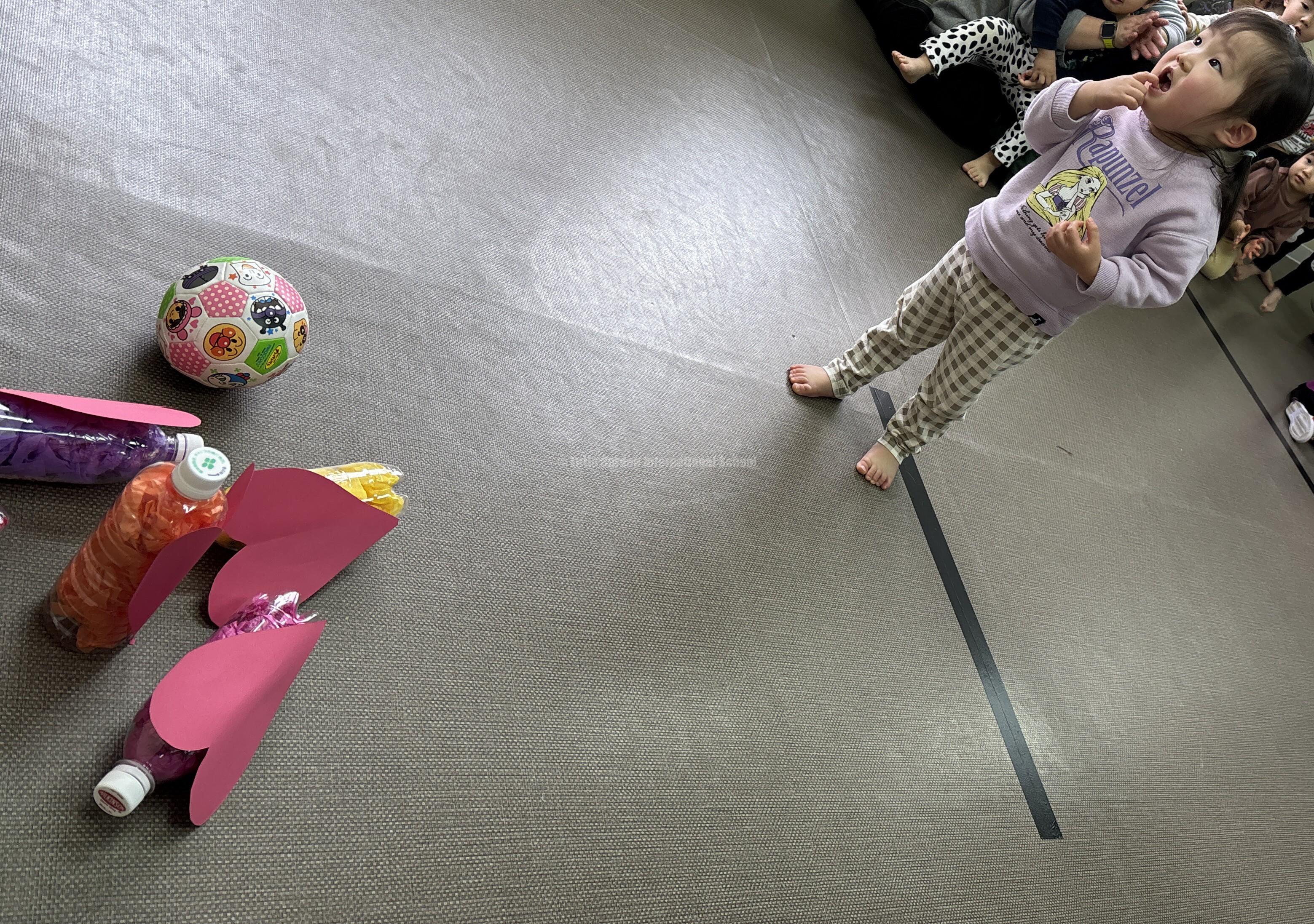 コロコロと上手にボールを転がしたり、エイっと思いきり投げてピンを倒したりと思い思いの投げ方で楽しみました😊