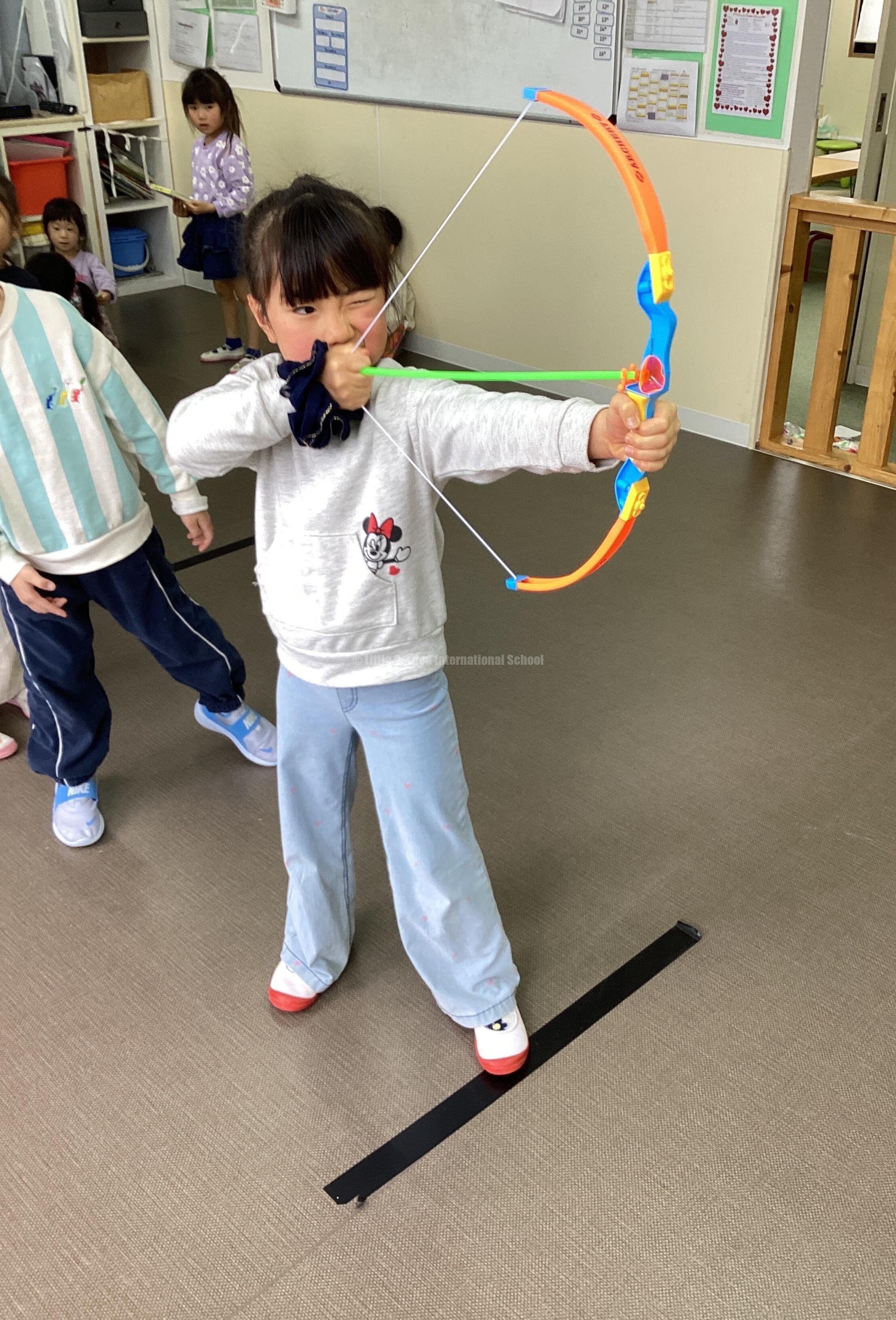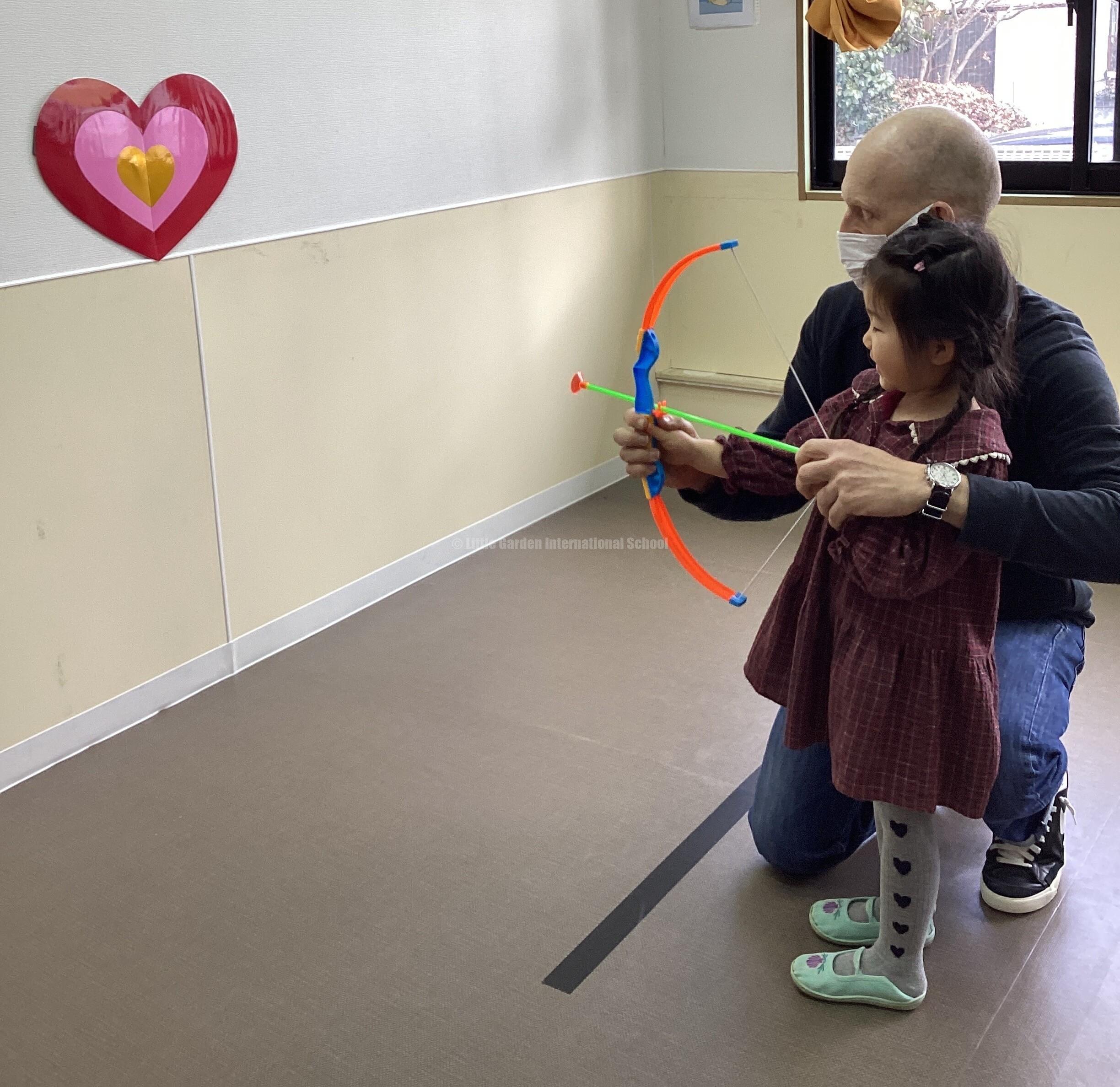 大きいお兄さんお姉さんのクラスは「あなたのハートに狙い撃ち💘」の弓矢ゲームでも盛り上がりました!