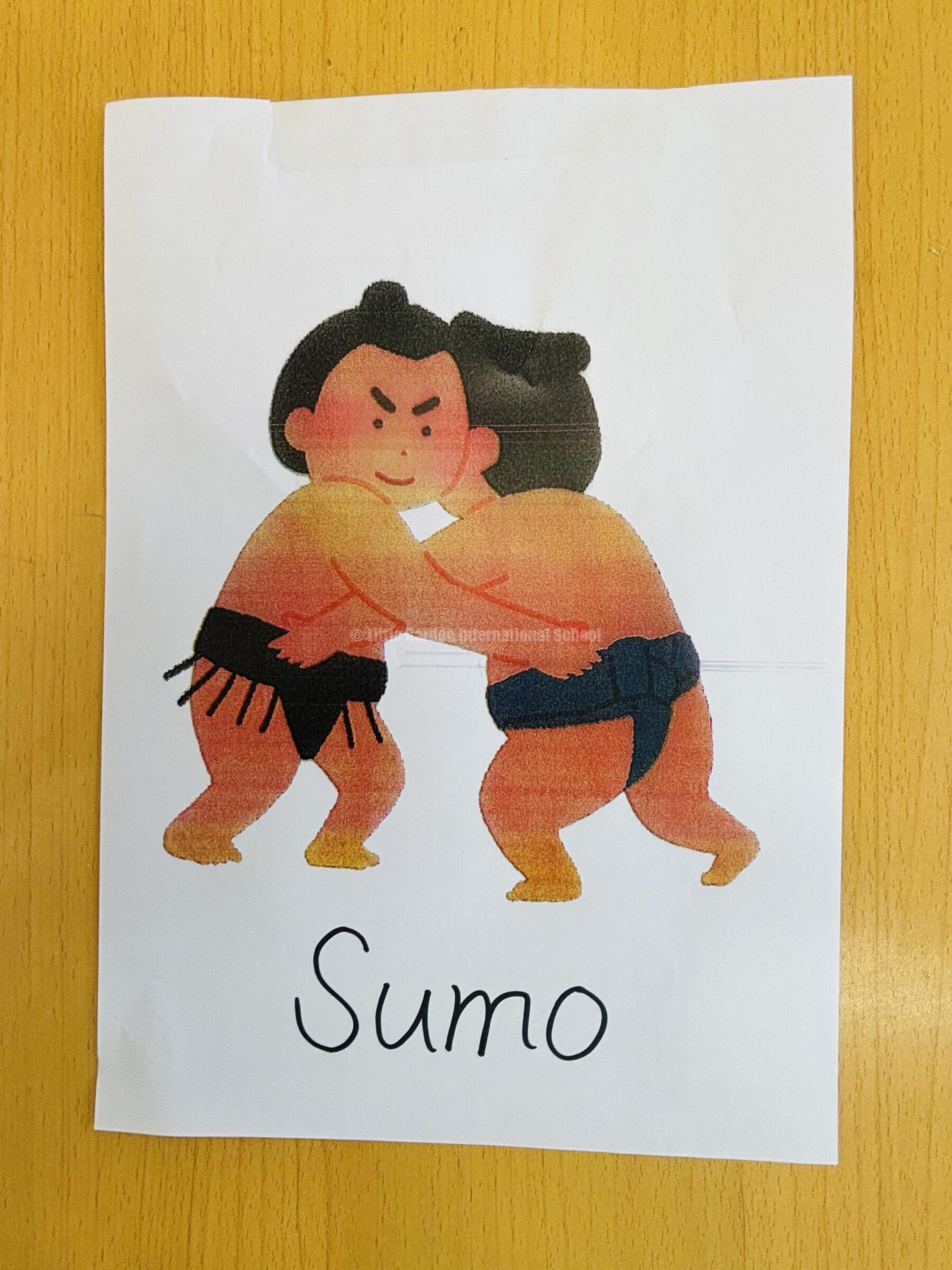 (子どもたちが自分自身で色を塗った力士!指でとんとん!はっけ~よい!!!)