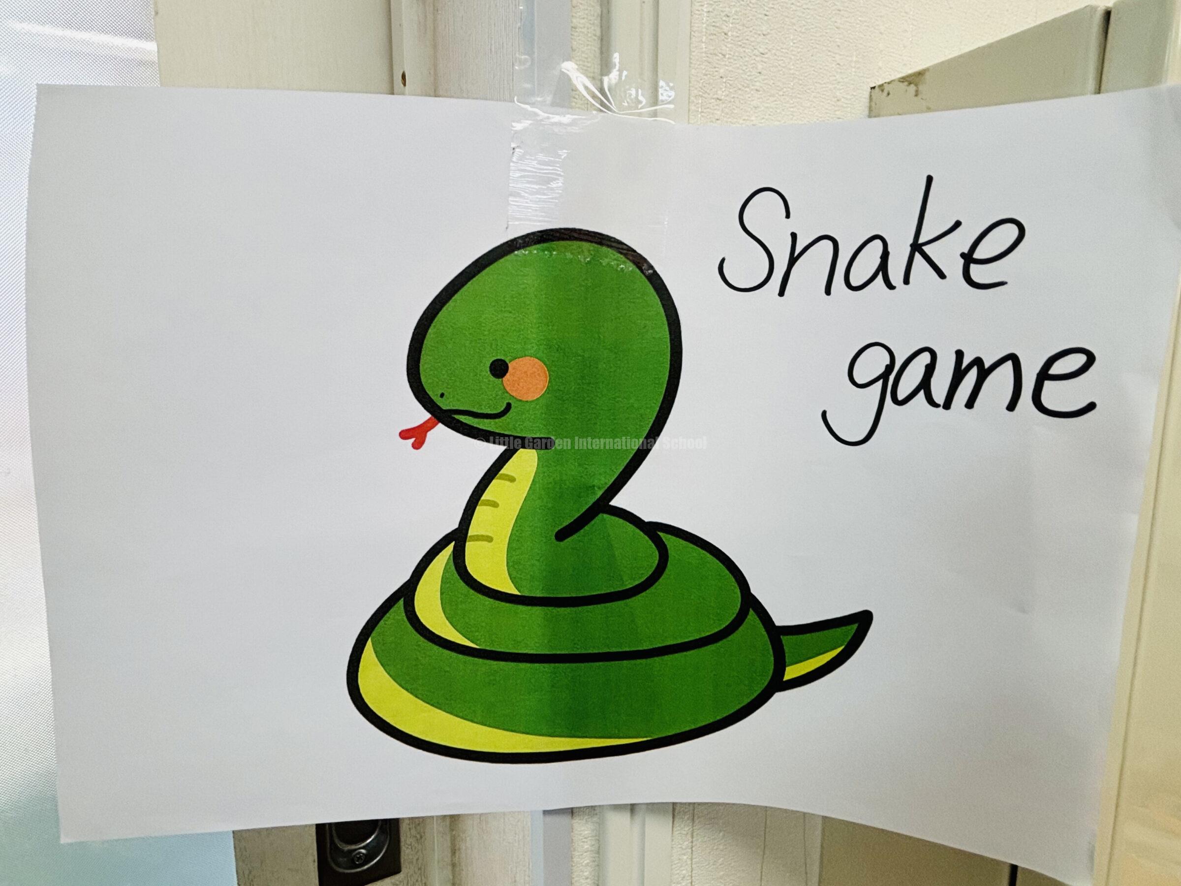 (ペットボトルのキャップで作ったへびの体を40秒の間に長くつなげた方が勝ち❕)