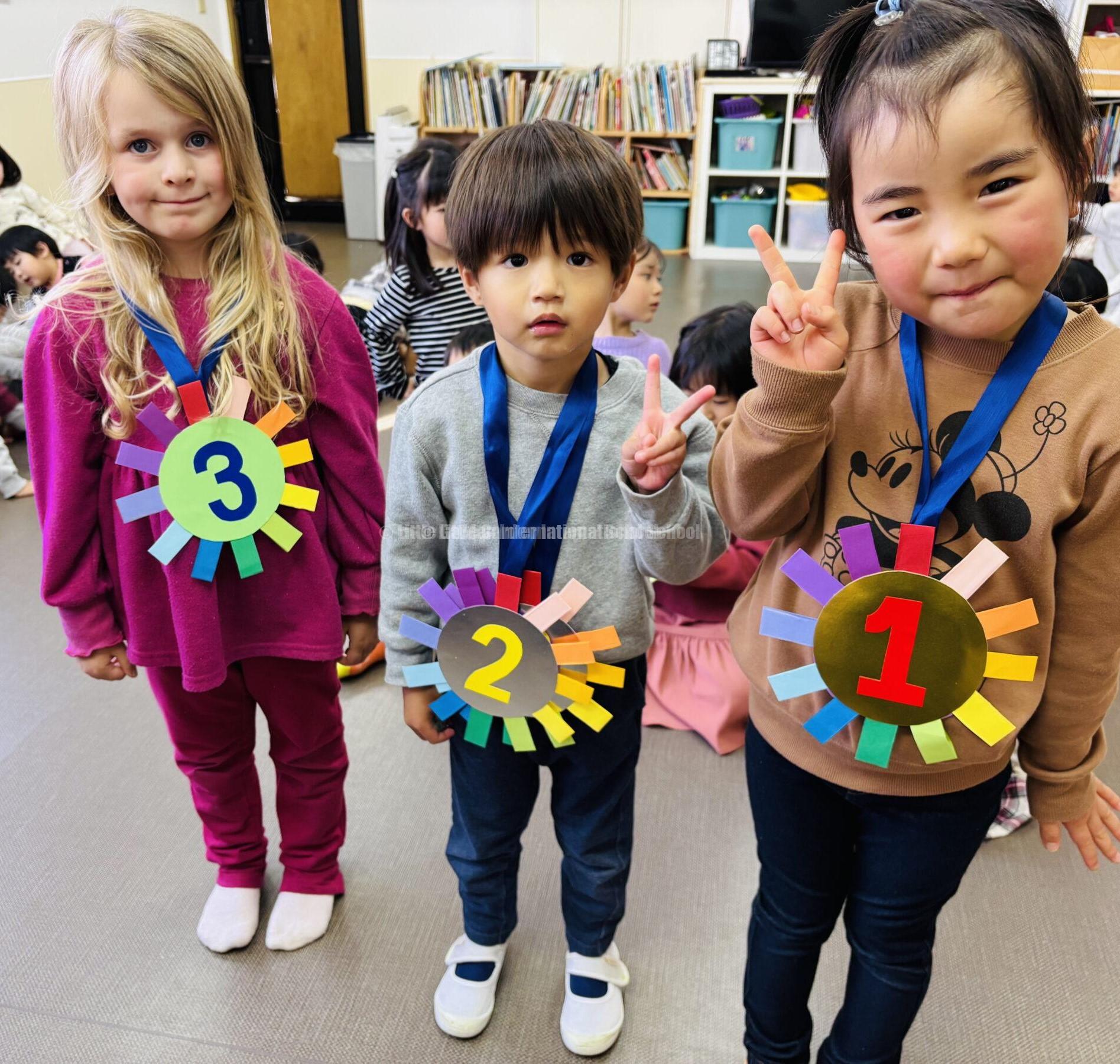各ゲームの勝敗が決まり、3位、2位、チャンピオンの子どもたちにK2クラスよりメダルが贈られ、嬉しくてニコニコ😊のメダリストたちでした✨
