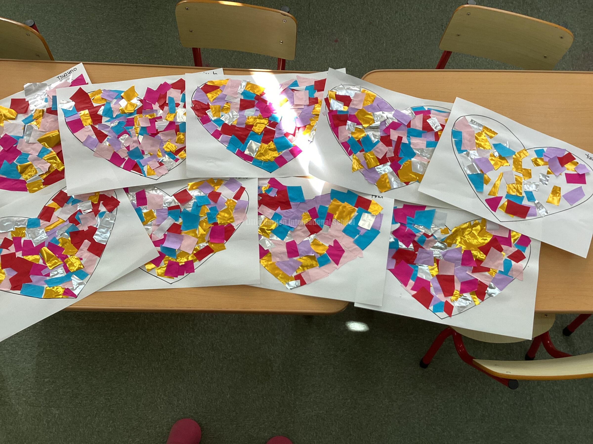 最後はみんなが大好きなゲーム。子どもたちはそれぞれ違う絵のついたハートの半分を配られ、もう片方のハートを持った自分のパートナーを探します。お互いのパートナーを見つけたペアは先生の所に行き、キーワードの「Happy Valentine’s Day」を言います。すると子供たちはかわいいハート型のバレンタインカードをもらい、満面の笑顔。