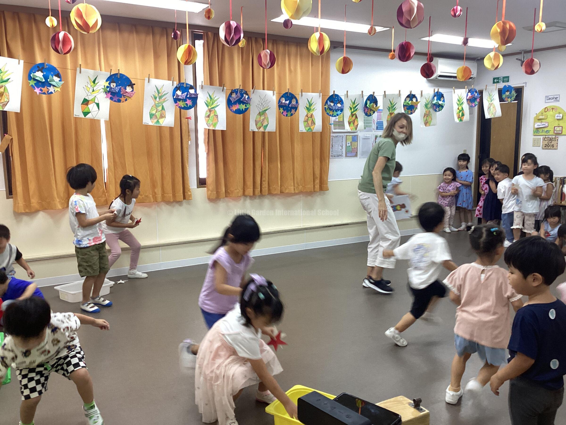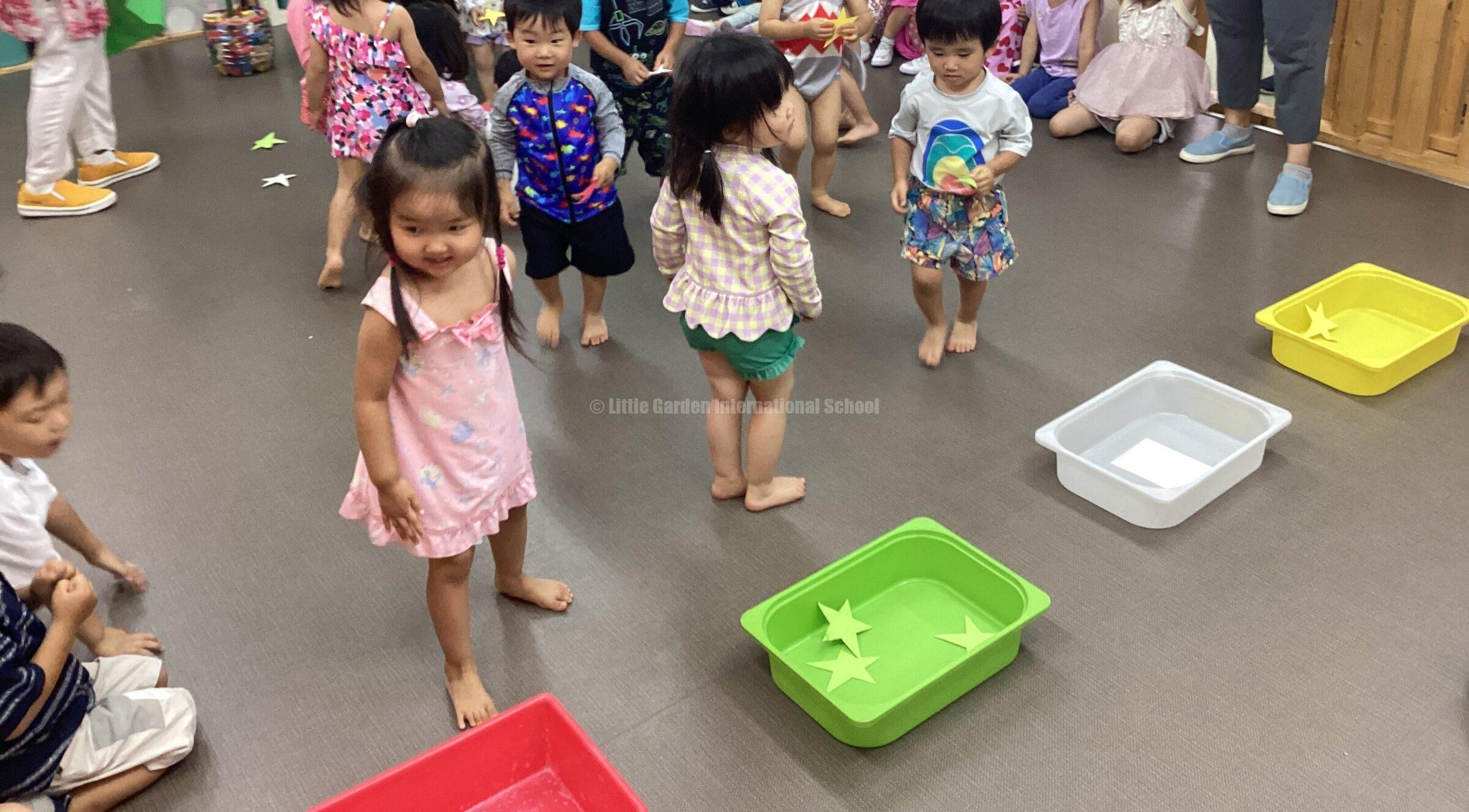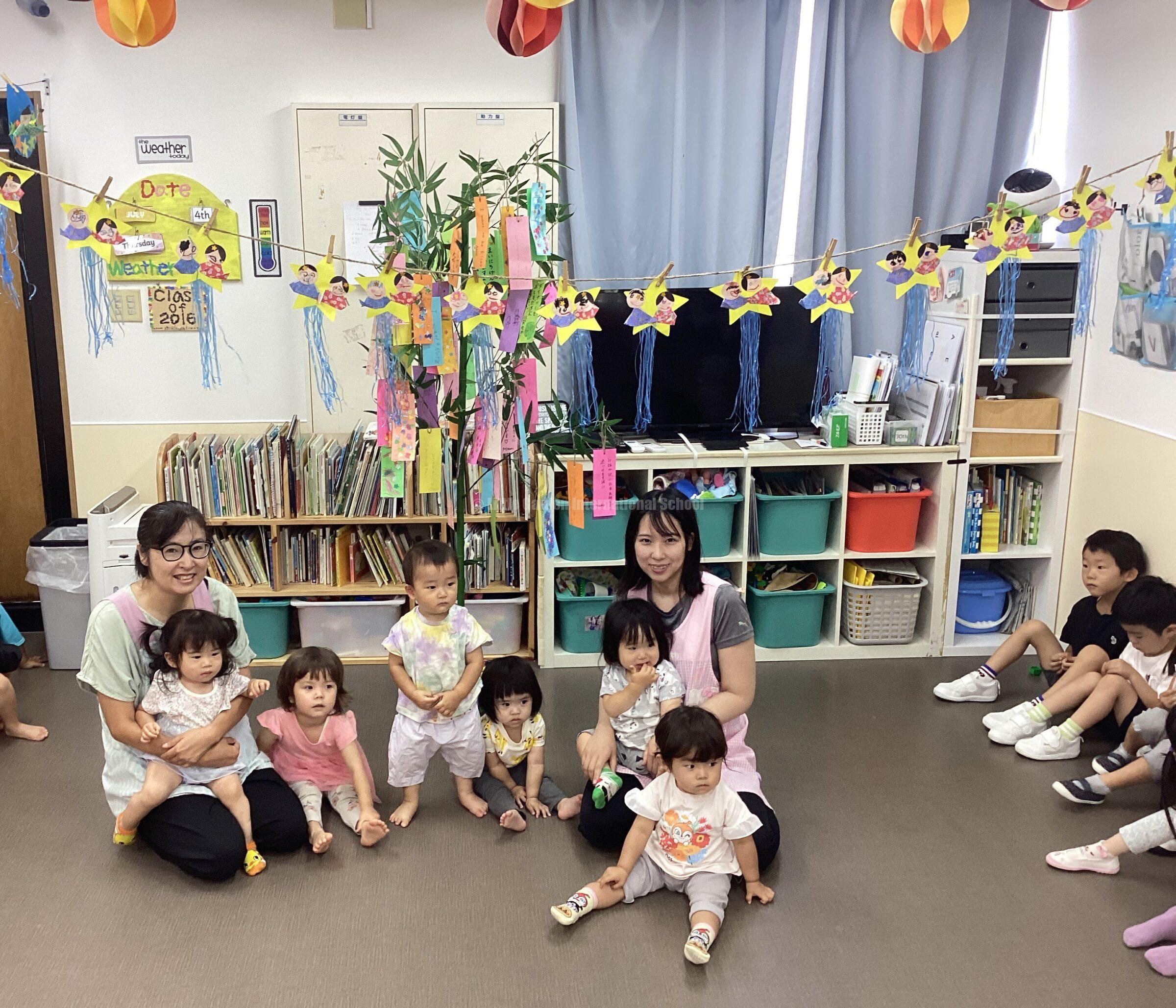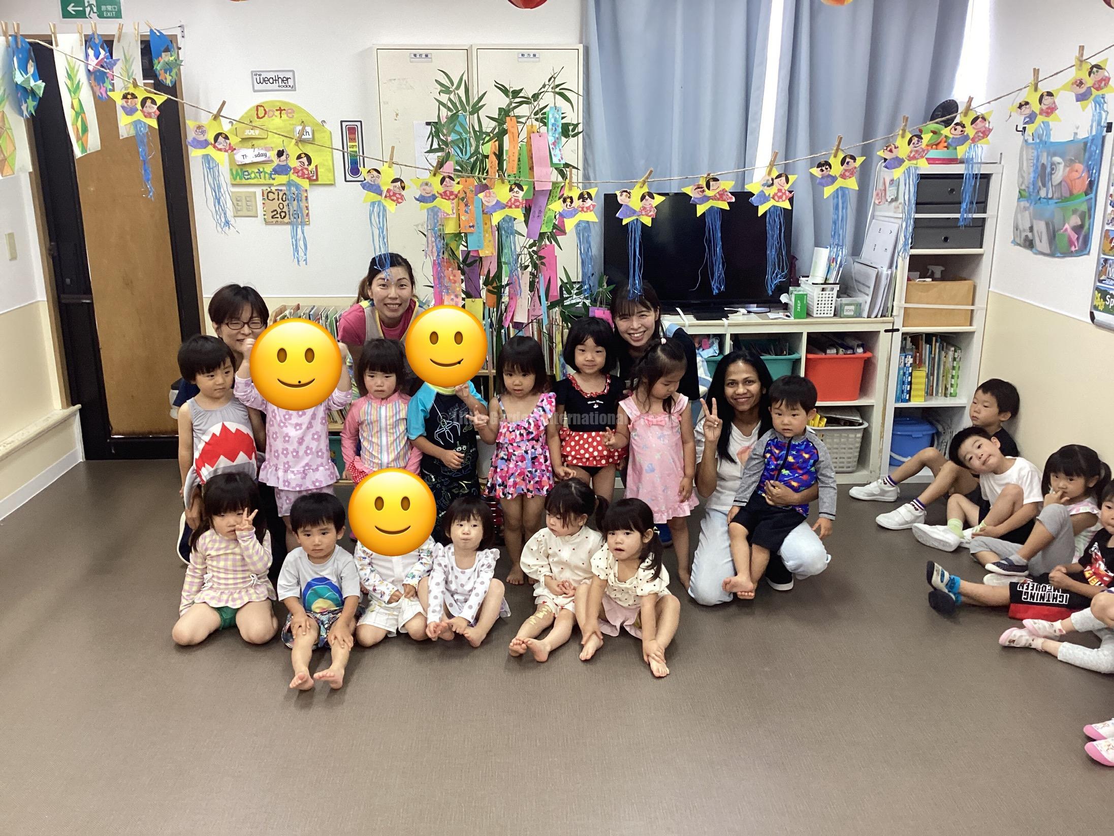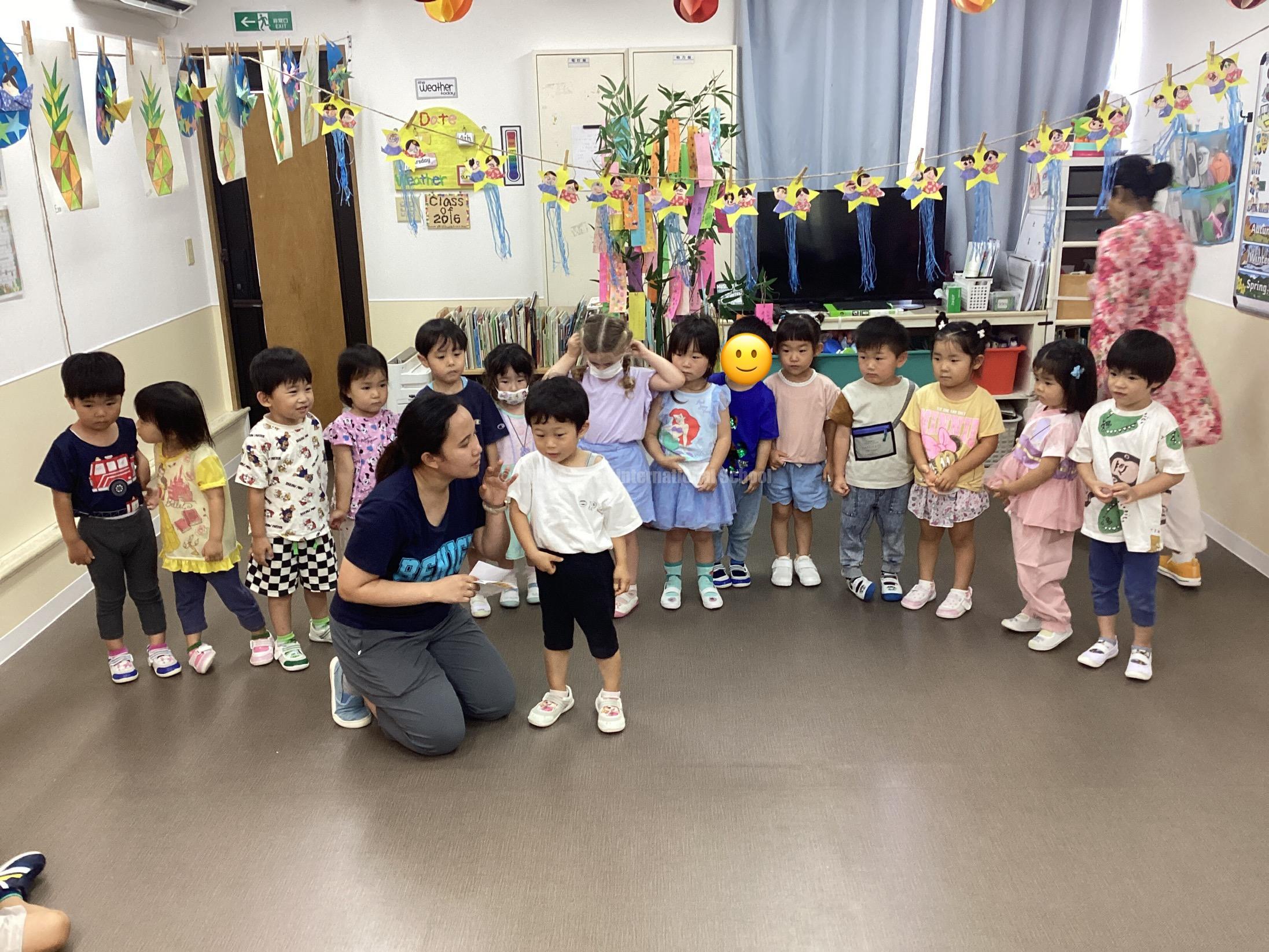 We had the Star, Nursery, Pre, K1 and K2 kids play a fun Tanabata game. The kids had to put the stars in the matching colored box. The entire school cheered and helped their school friends during the game.