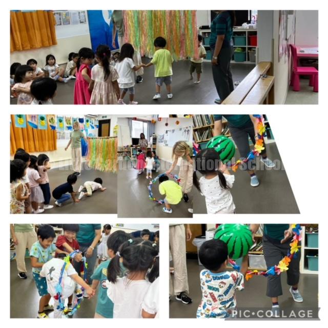 The very first activity of the summer school was a tasty start and it was the watermelon smashing. this game is a popular activity during Japanese summer festivals and gatherings providing fun and refreshments on hot days. All the kids had fun smashing the watermelon and at the end, tasting the juicy fruit together.