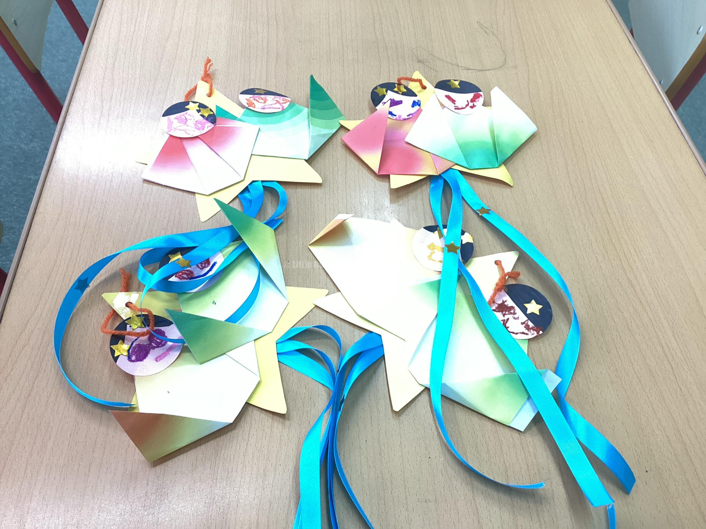 Students creating Tanabata themed arts and crafts. Children proudly hanging their wishes on bamboo branches.