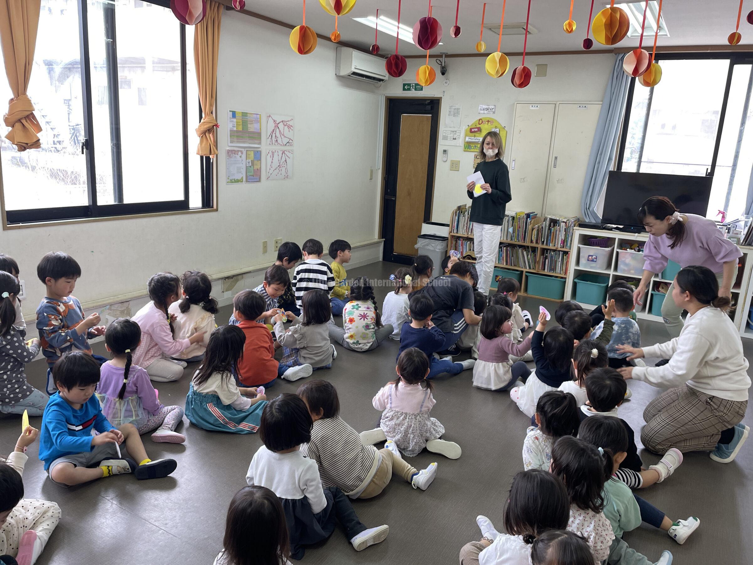 たくさんの英語の歌とダンス、おにいさんおねええさんに作ってもらったかわいい卵をもらいました。
