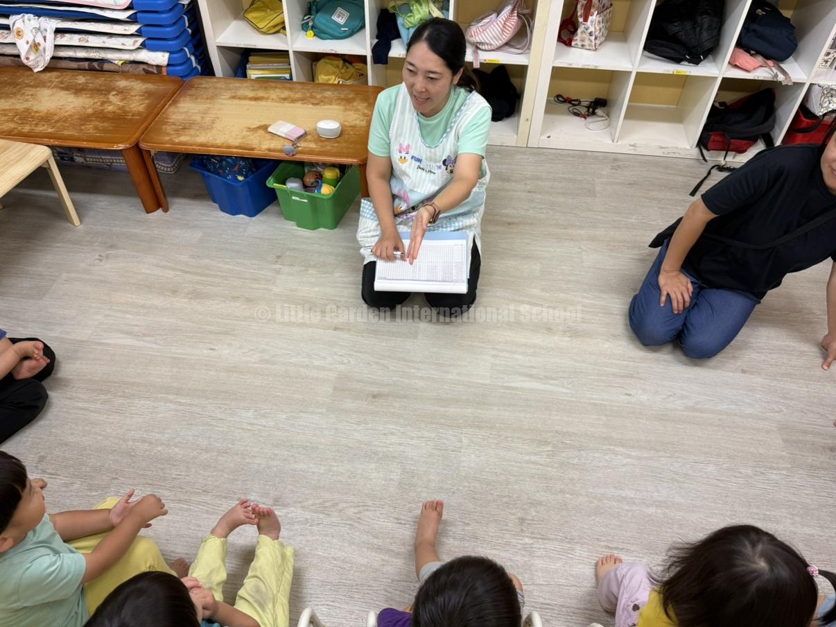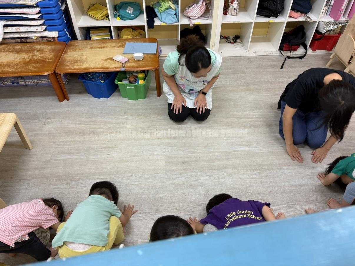 Our youngest class (0–2-year-olds) participates in the first 15 minutes of the morning circle. After that, they head to their classroom, where the teachers take roll call and talk about simple rules, such as holding hands with their friends. The teachers also introduce basic English vocabulary—our Star Classers are already great at naming different colors!