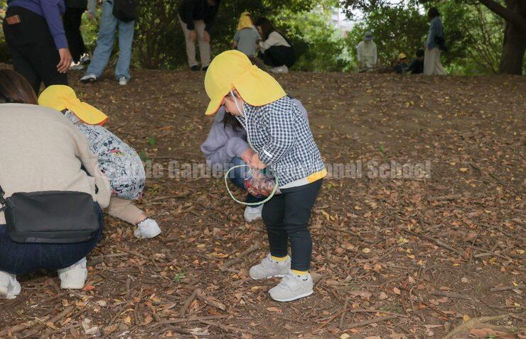 また、探検バッグを持ってどんぐりや木の実、色とりどりの落ち葉を拾いながら、自然の宝探しを満喫!