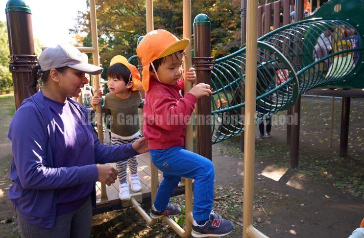 初めての遊具に少し戸惑いながらも、友だち同士で「頑張れ!」と励まし合いながら一緒に遊ぶ姿がとても微笑ましかったです。