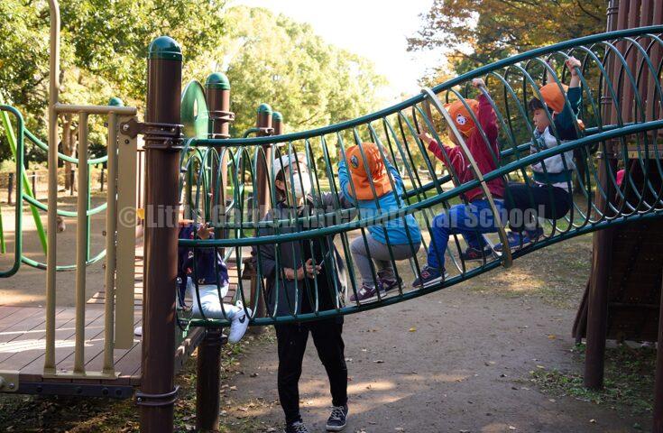 香澄公園では、大型遊具に挑戦する場面がたくさんありました。