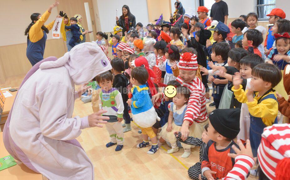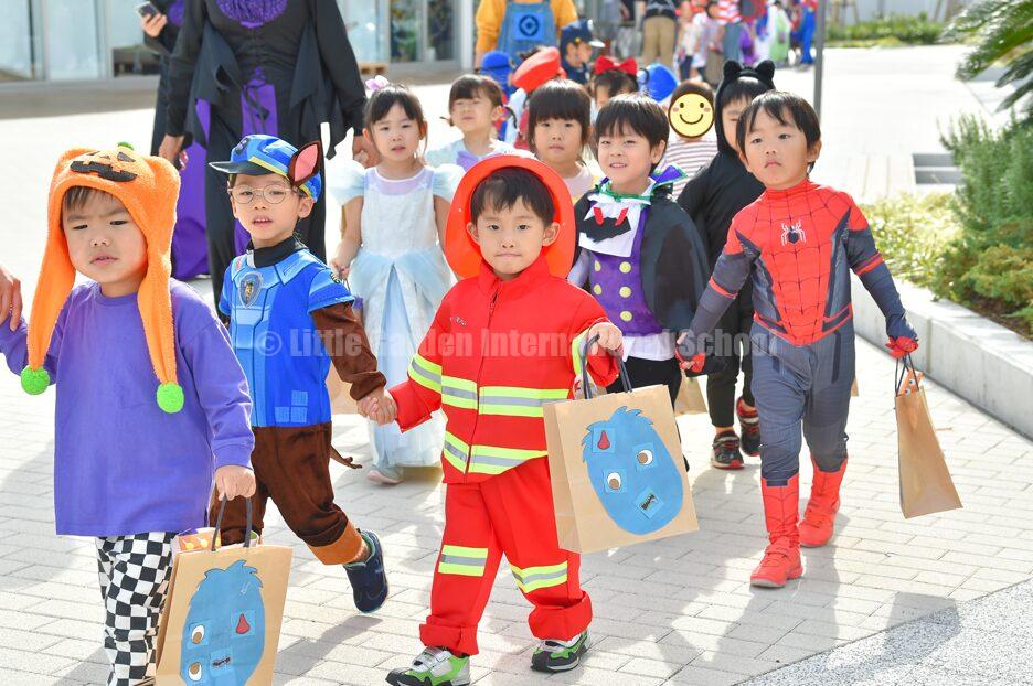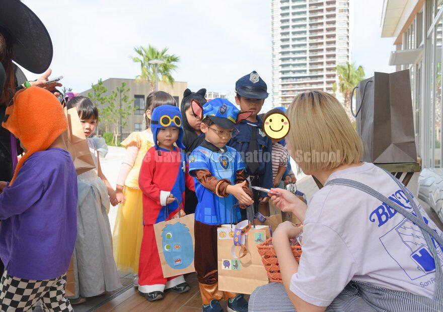 仮装したまま地域の皆さんのところへ向かい、「Trick or treat!」と大きな声でお菓子をおねだり。普段はちょっぴり恥ずかしがりやな子も、今日は勇気を出して声をかけ、「ありがとう!」とお礼を伝える姿がありました。