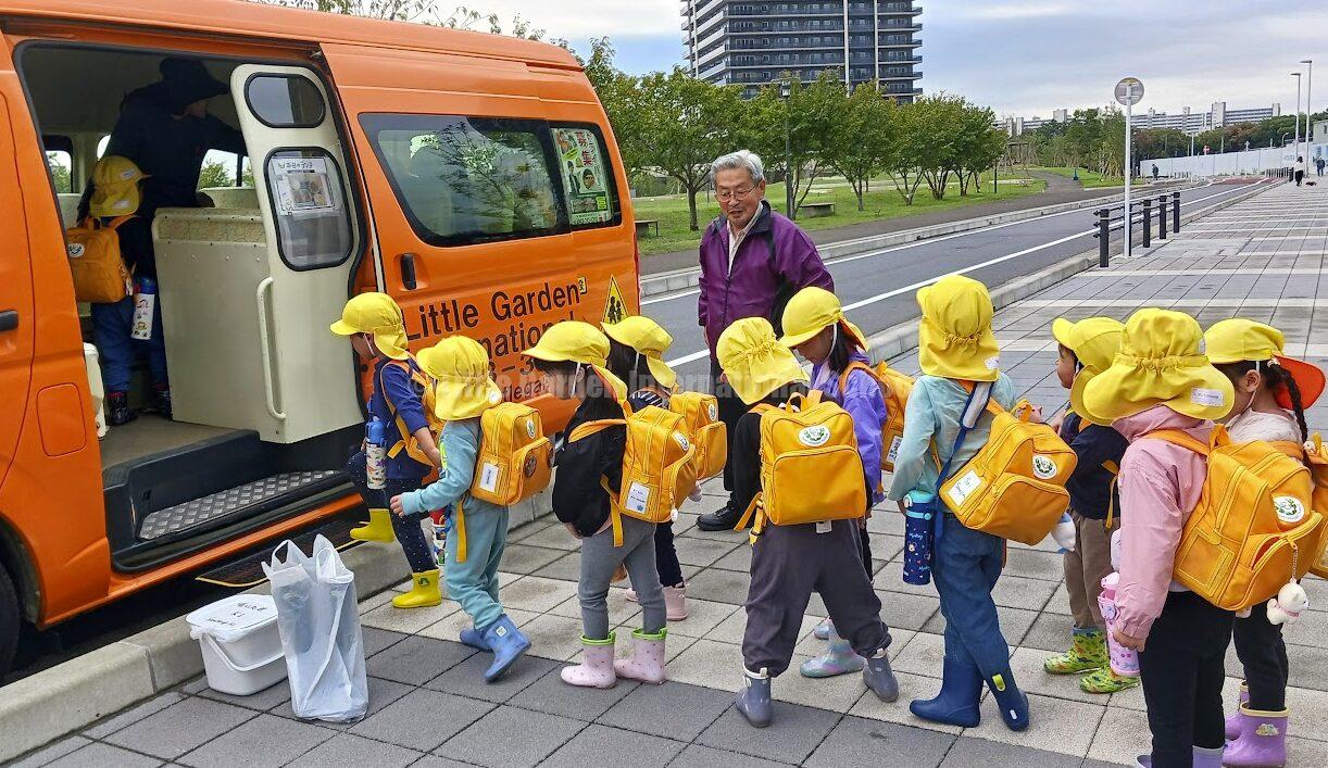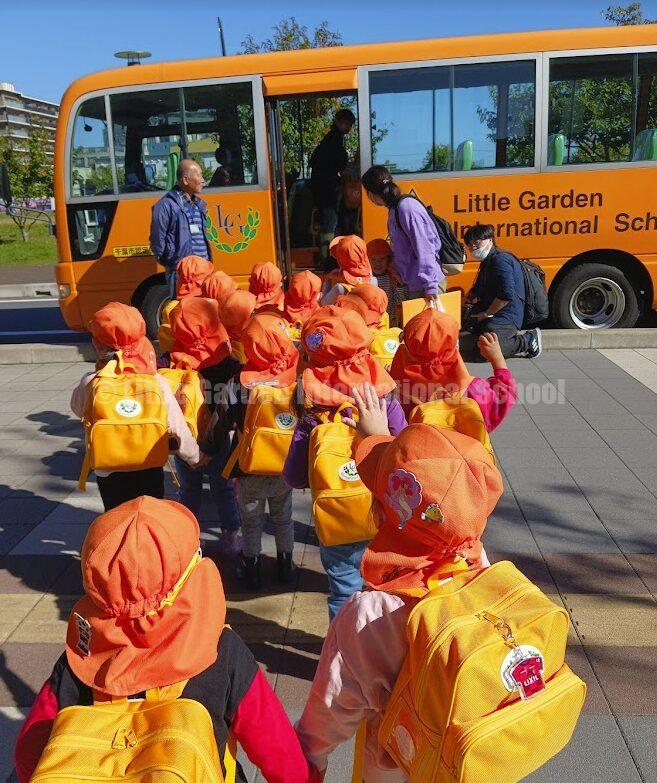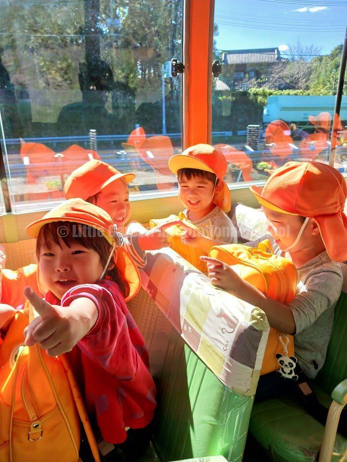 今回は、リトルガーデンのオレンジ色のバスで出発。出発前から「バスに乗れるんだ!」と嬉しそうな声が聞こえてきました。バスに乗ると、窓の外を眺めながら「どんなお芋がとれるのかな?」とワクワクした表情を見せていました