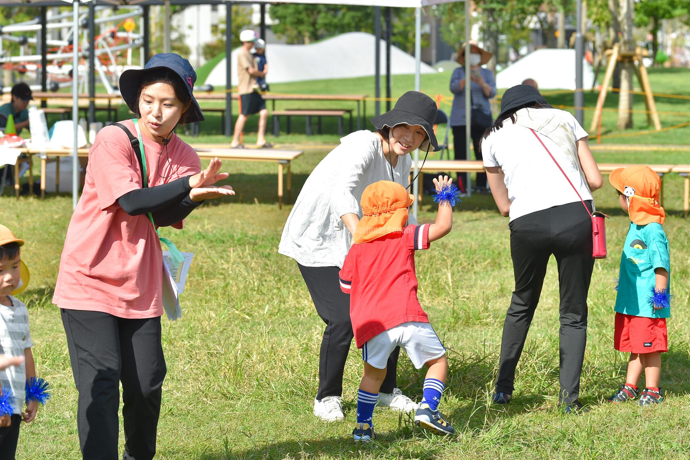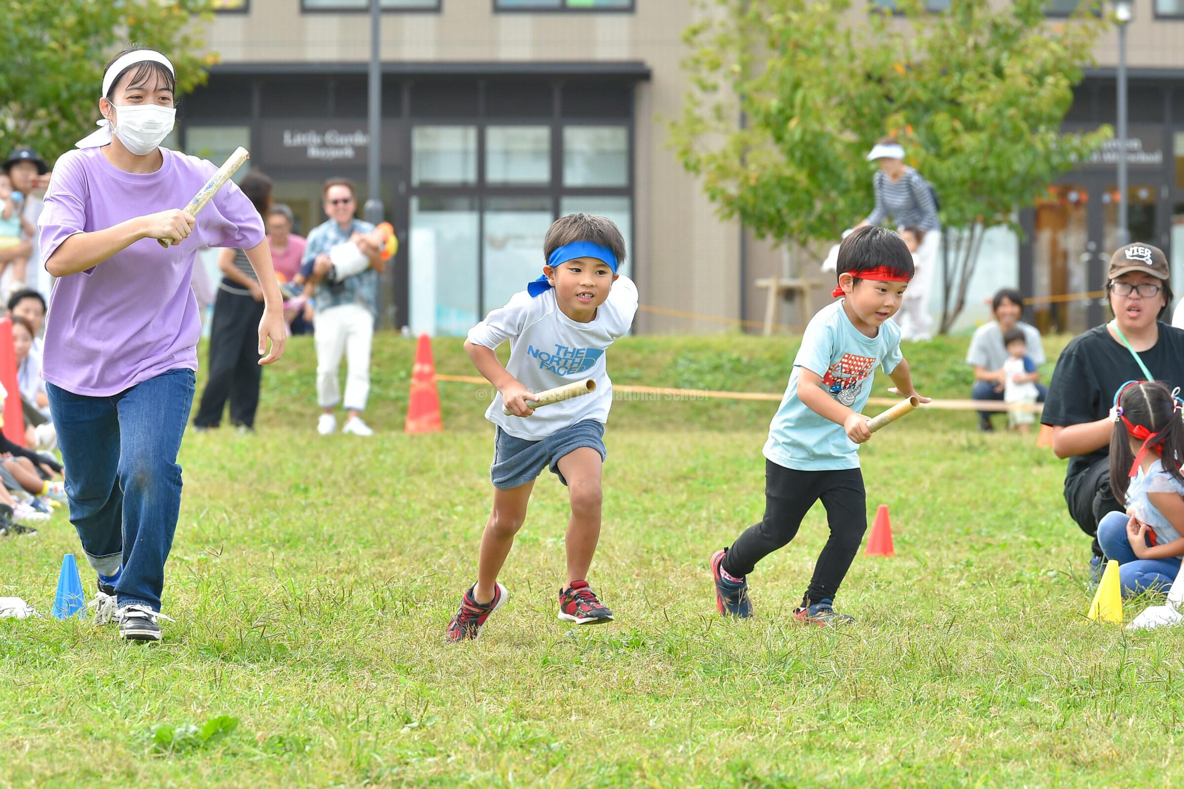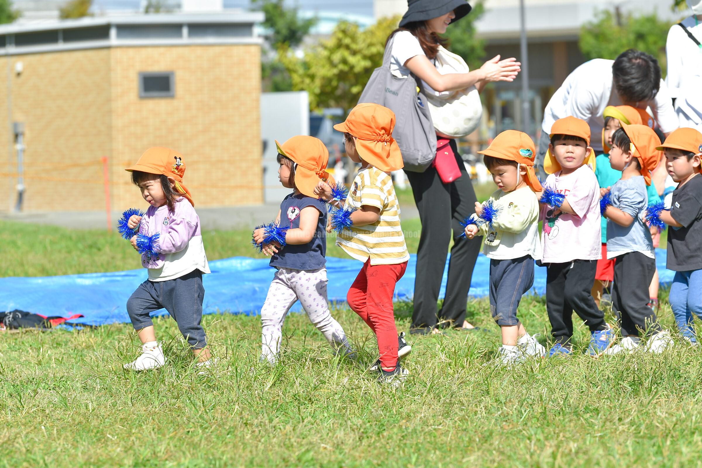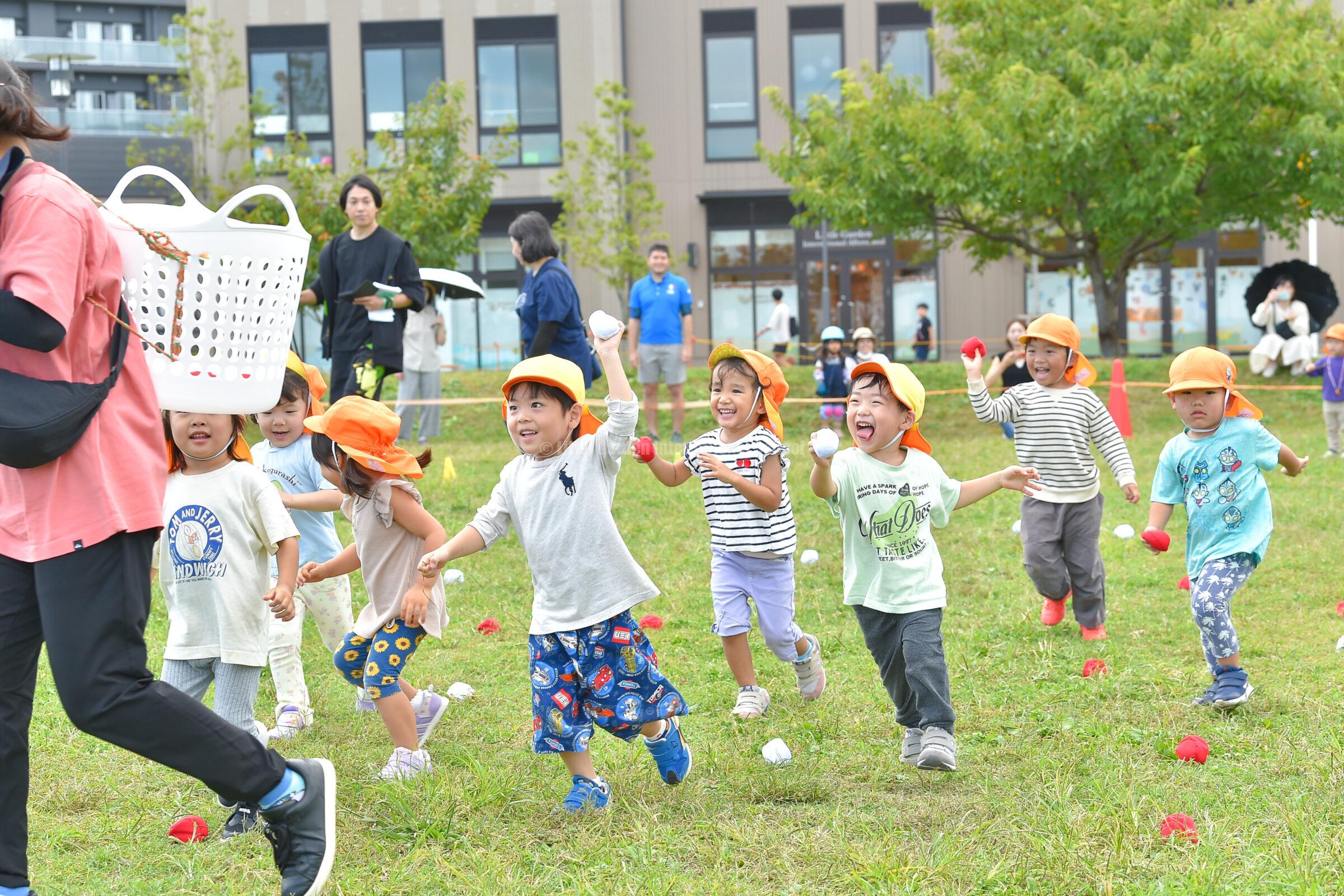 先生たちを追いかけながら、一生懸命走って玉入れをする姿がとてもかわいらしく、見ている保護者の皆さまも自然と応援に力が入っていました。