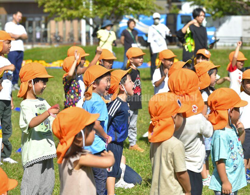 全体で「Hello Song」を元気よく歌い、朝の挨拶でスポーツデイがスタートしました。「Hello!」と大きな声で手を振り、先生や友達と目を合わせながら楽しそうに歌う姿に、会場全体が和やかな雰囲気に包まれました。