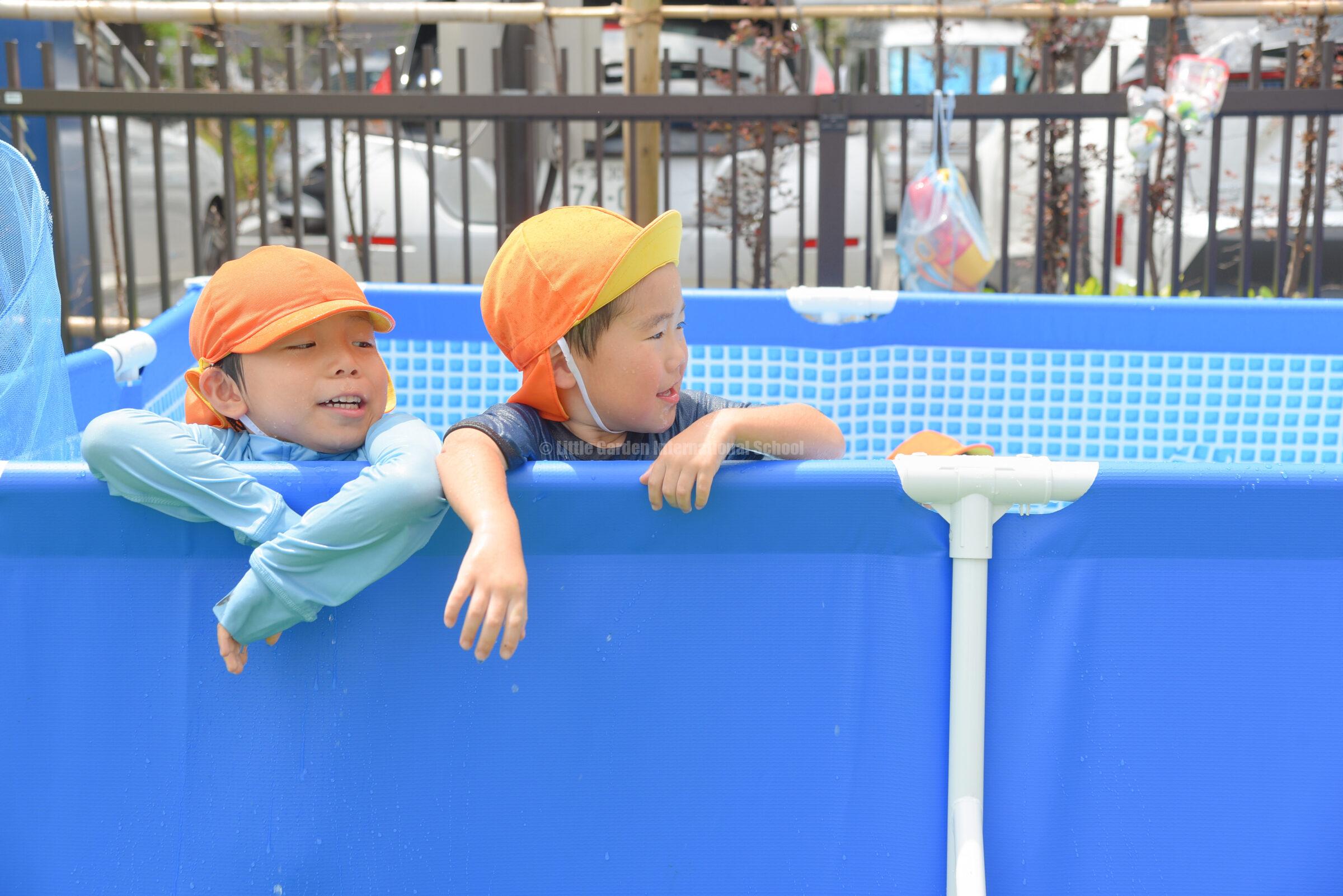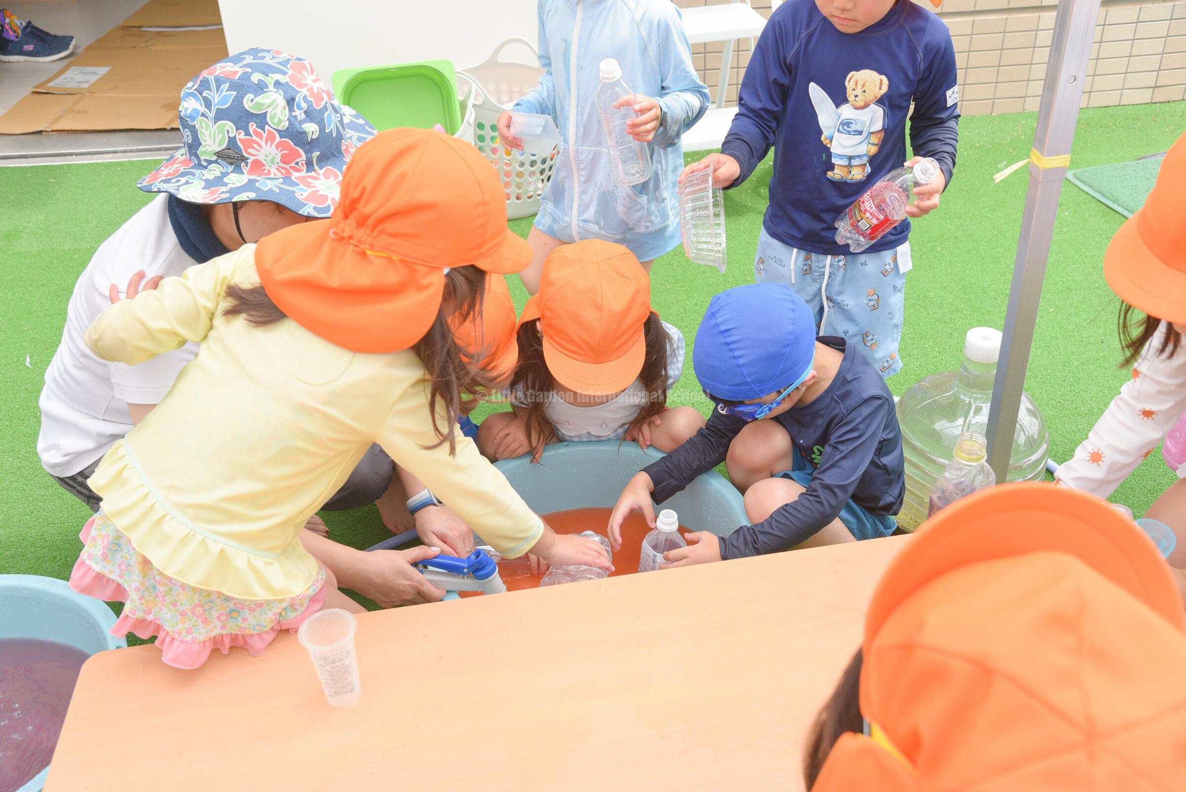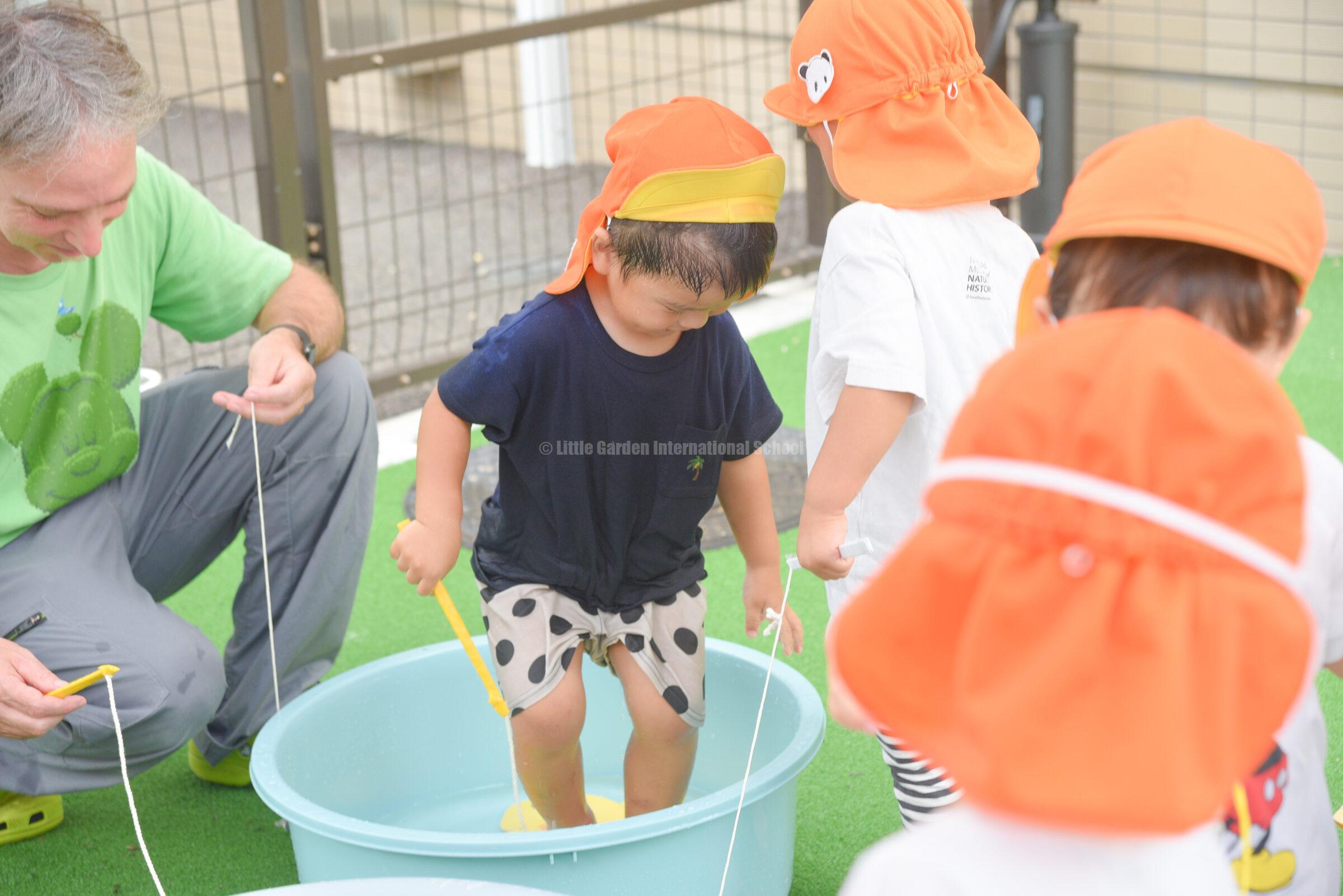 水遊びを通して、子どもたちは英語での表現や自分らしい遊び方を見つけ、心も体も大きく成長しています。
