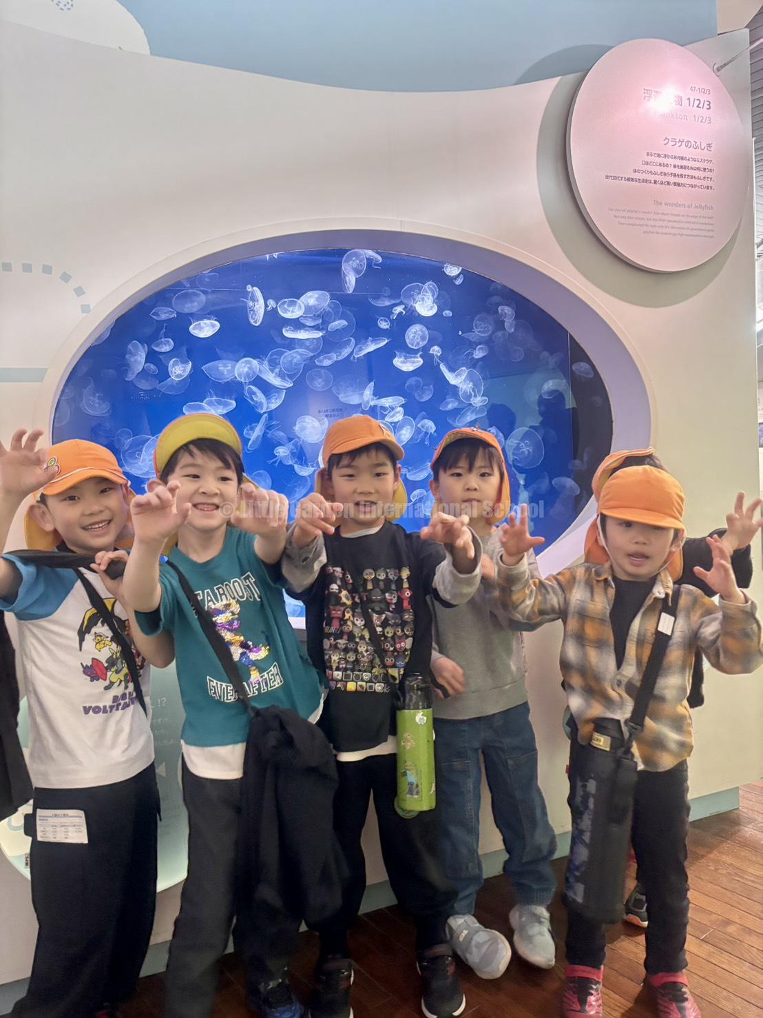 クラゲやペンギンの展示に興味を示し、自分が発見したことを先生やお友だちに一生懸命伝えていました😊