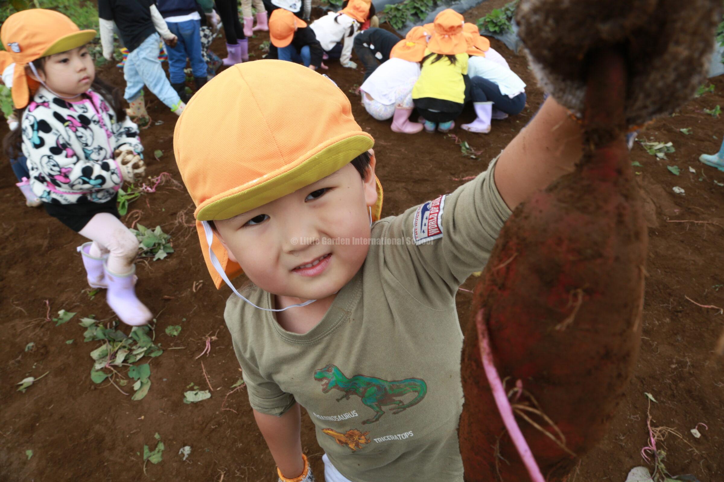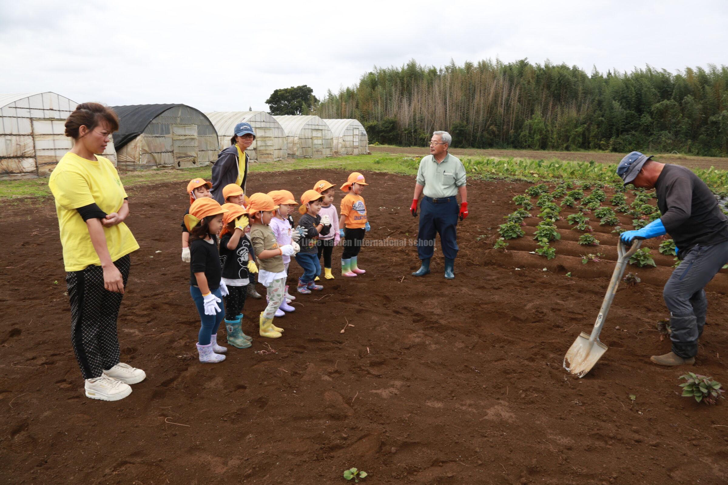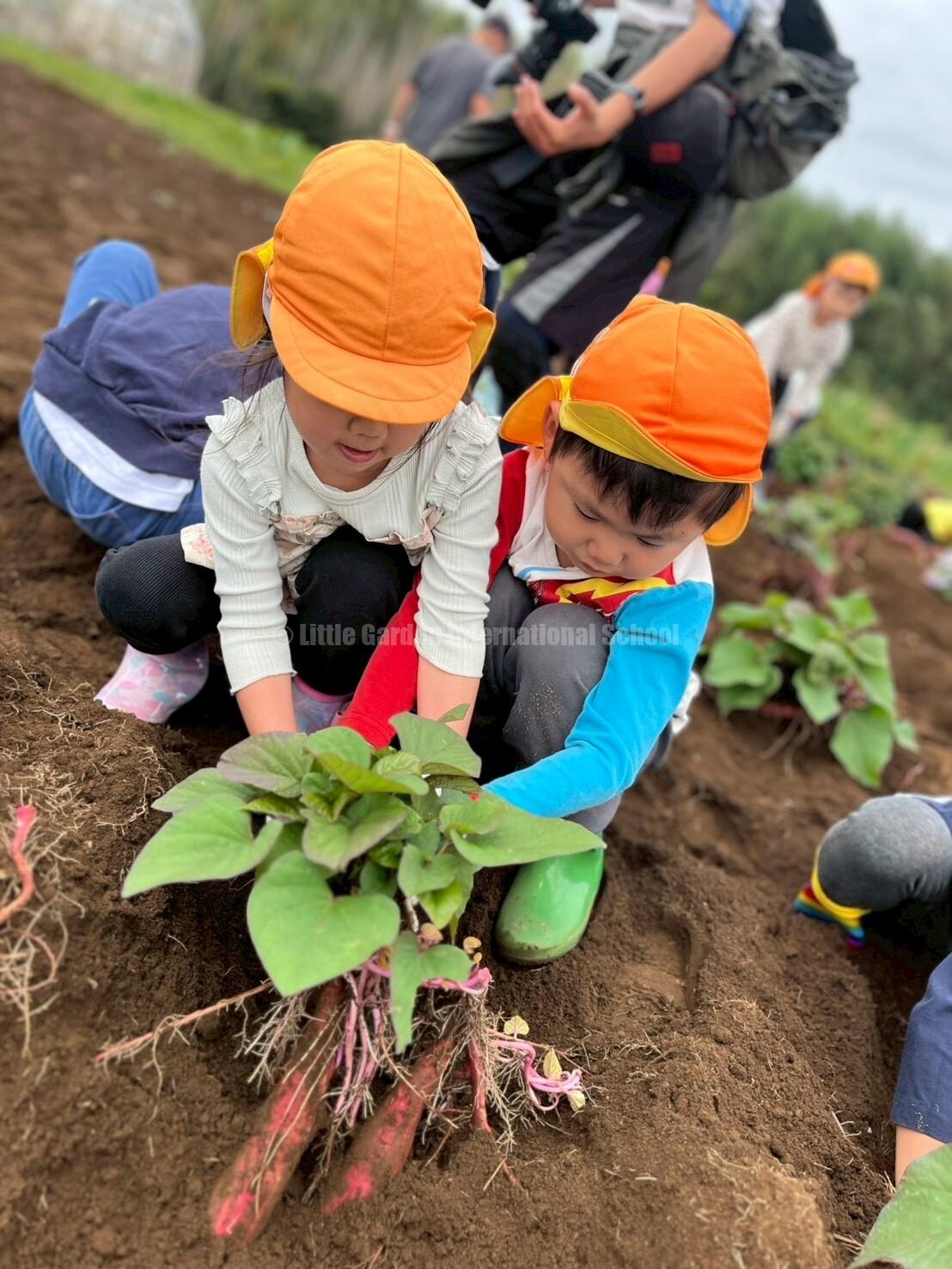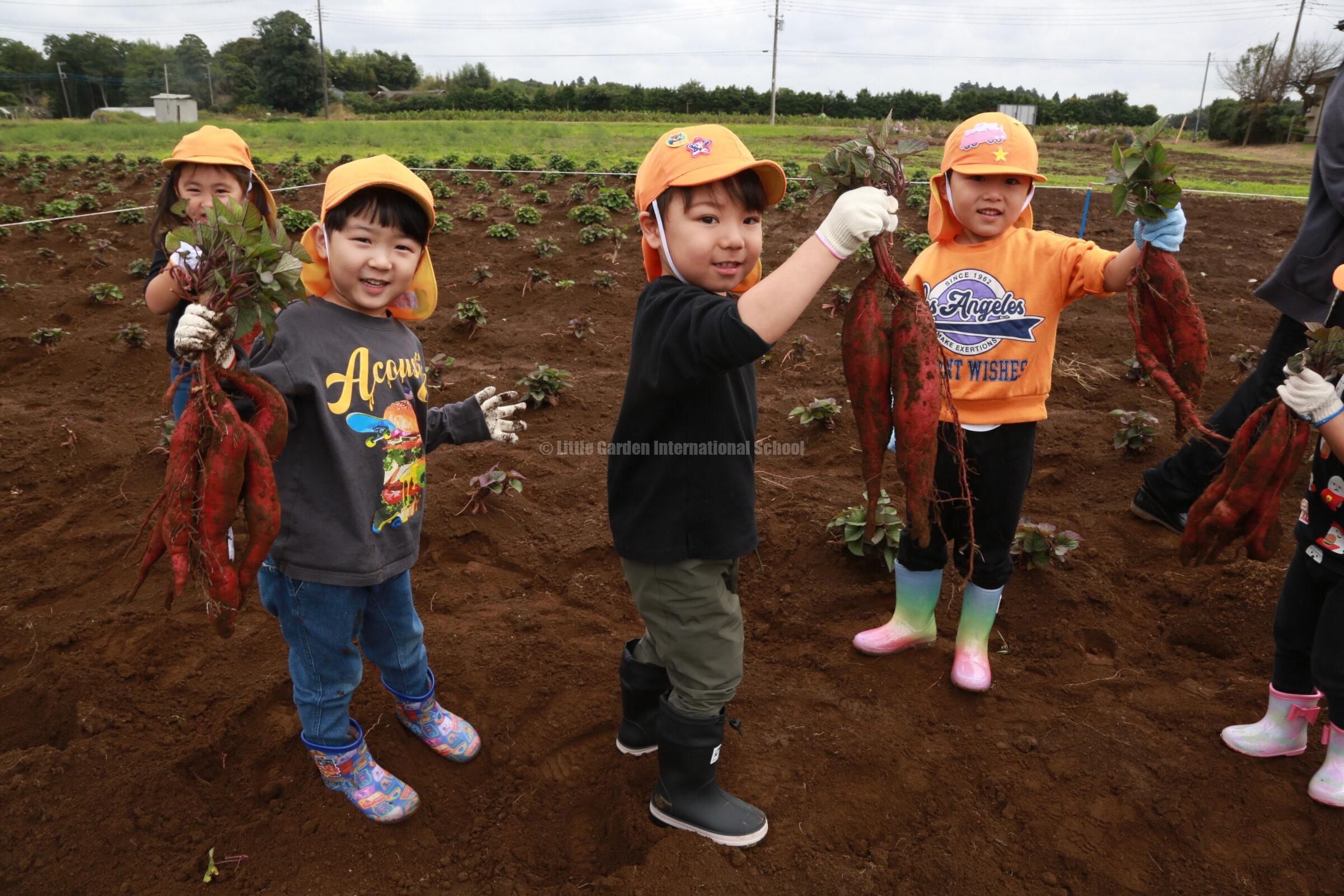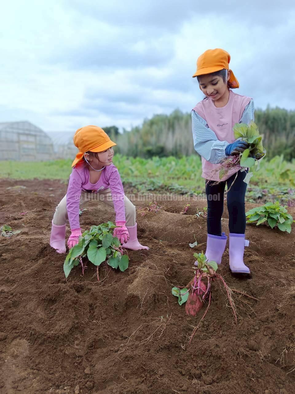 1週間前2歳児Nurseryクラスがお芋掘りに行っていたので、3歳児Preschool・4歳児K1・5歳児K2さんは今日を心待ちにしていました