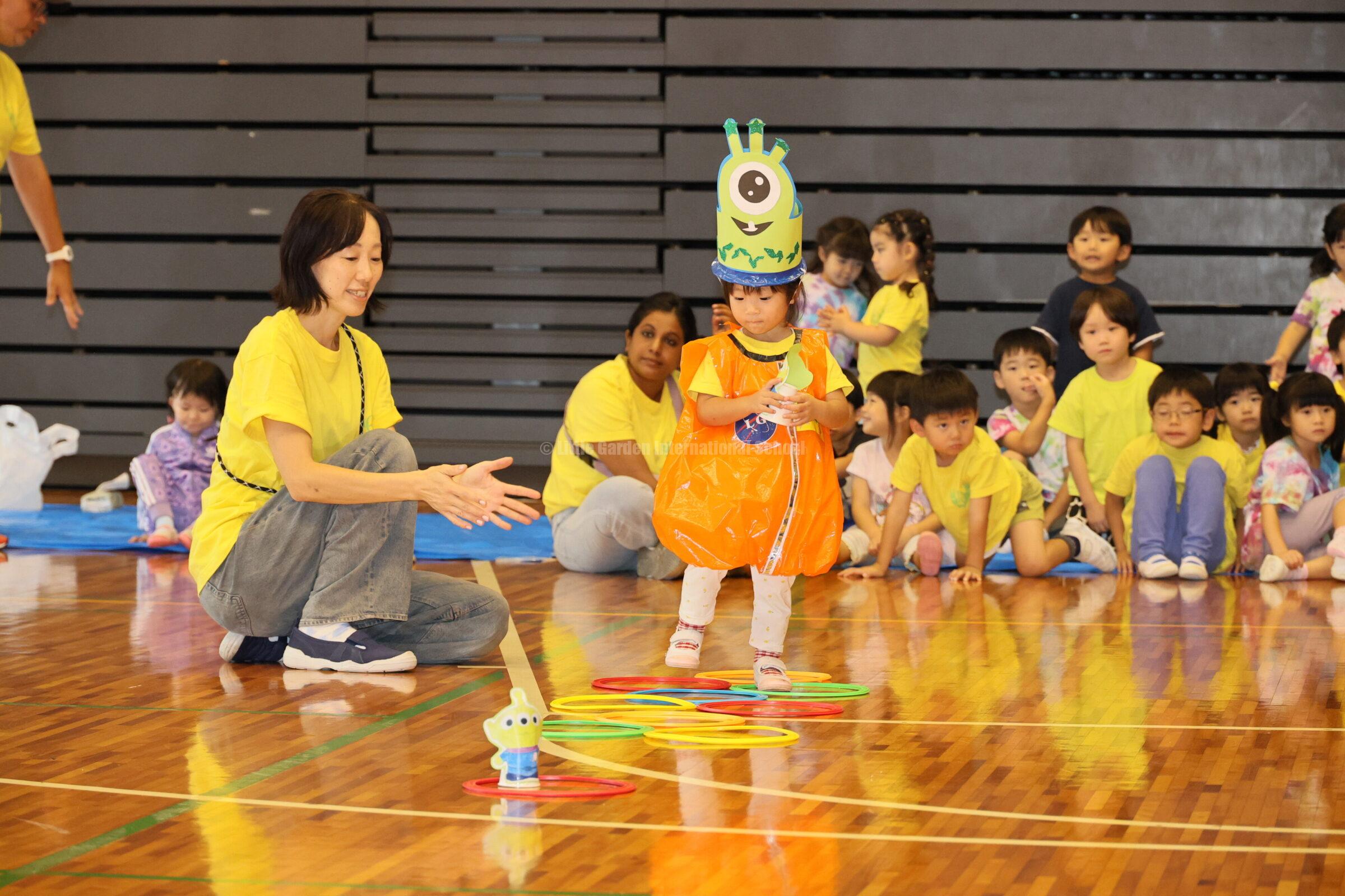 2歳児NurseryクラスはClose and Open(けんぱけんぱ)で宇宙の仲間を(小さいモンスター)助けに行き、エイリアンと一緒に待つおうちの方のもとへ