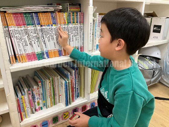 毎日のお迎えの際、お母さんと一緒に『今日はどの本をかりようかな』と仲睦まじく絵本を選ぶ姿を見ることが出来ます。とても微笑ましい瞬間です。