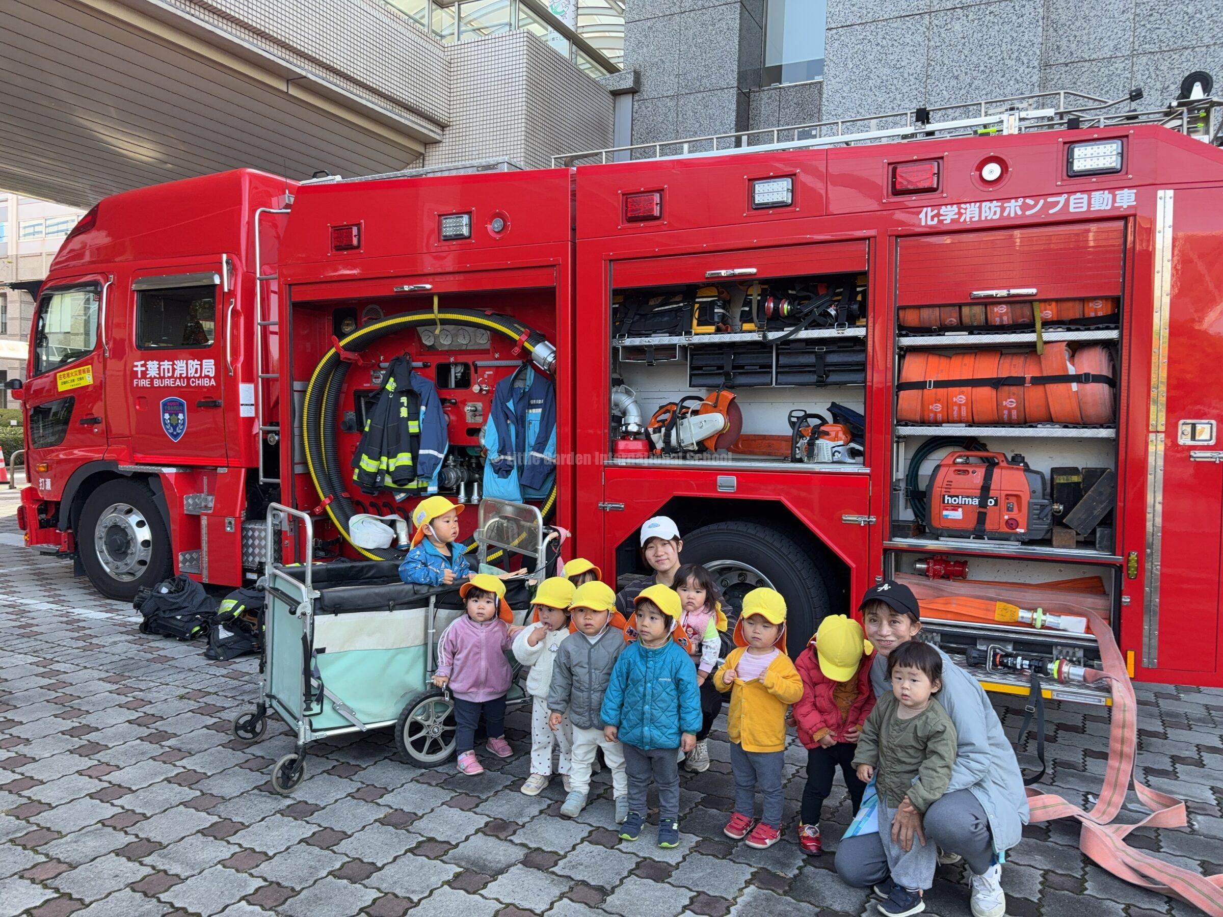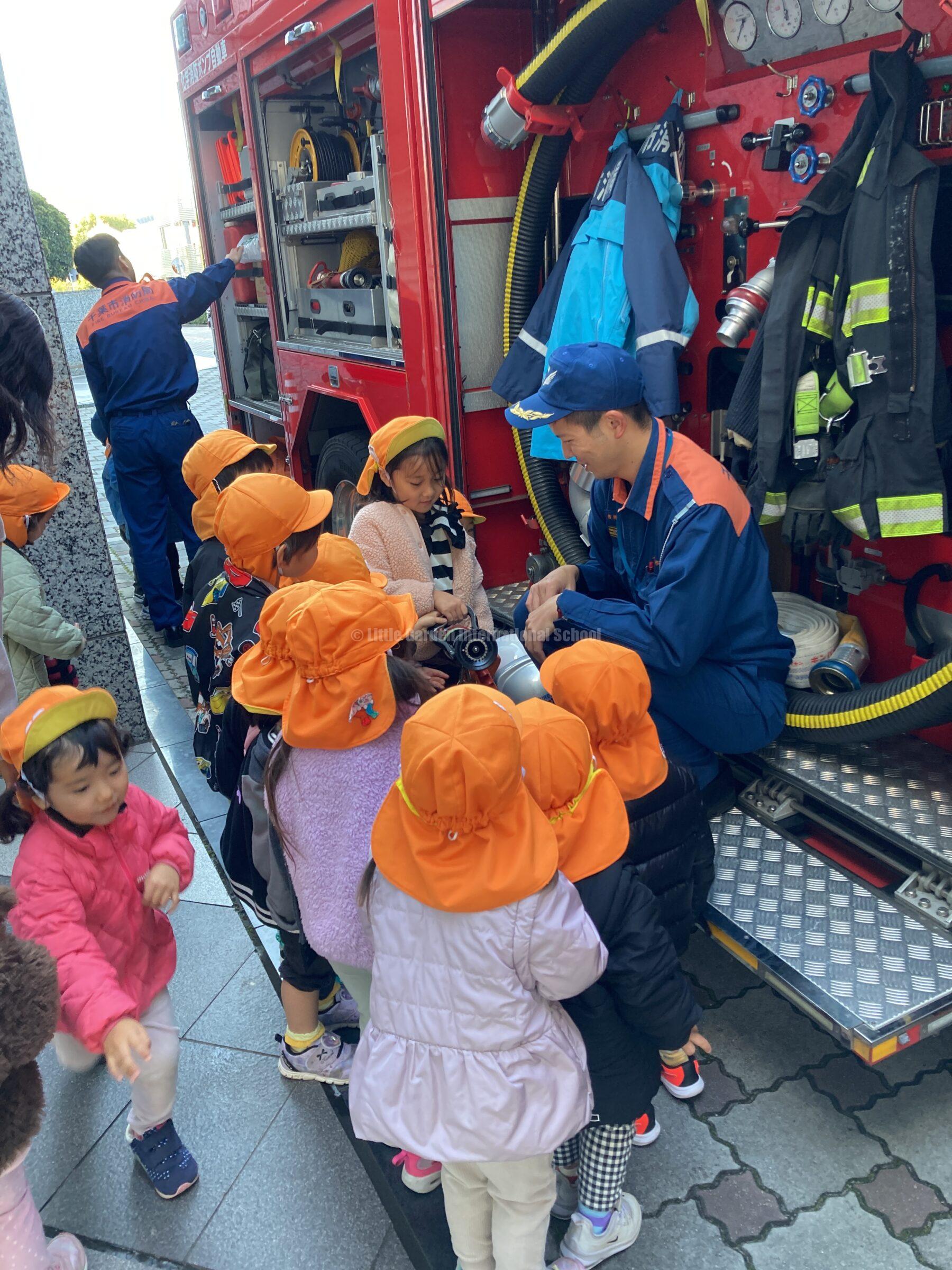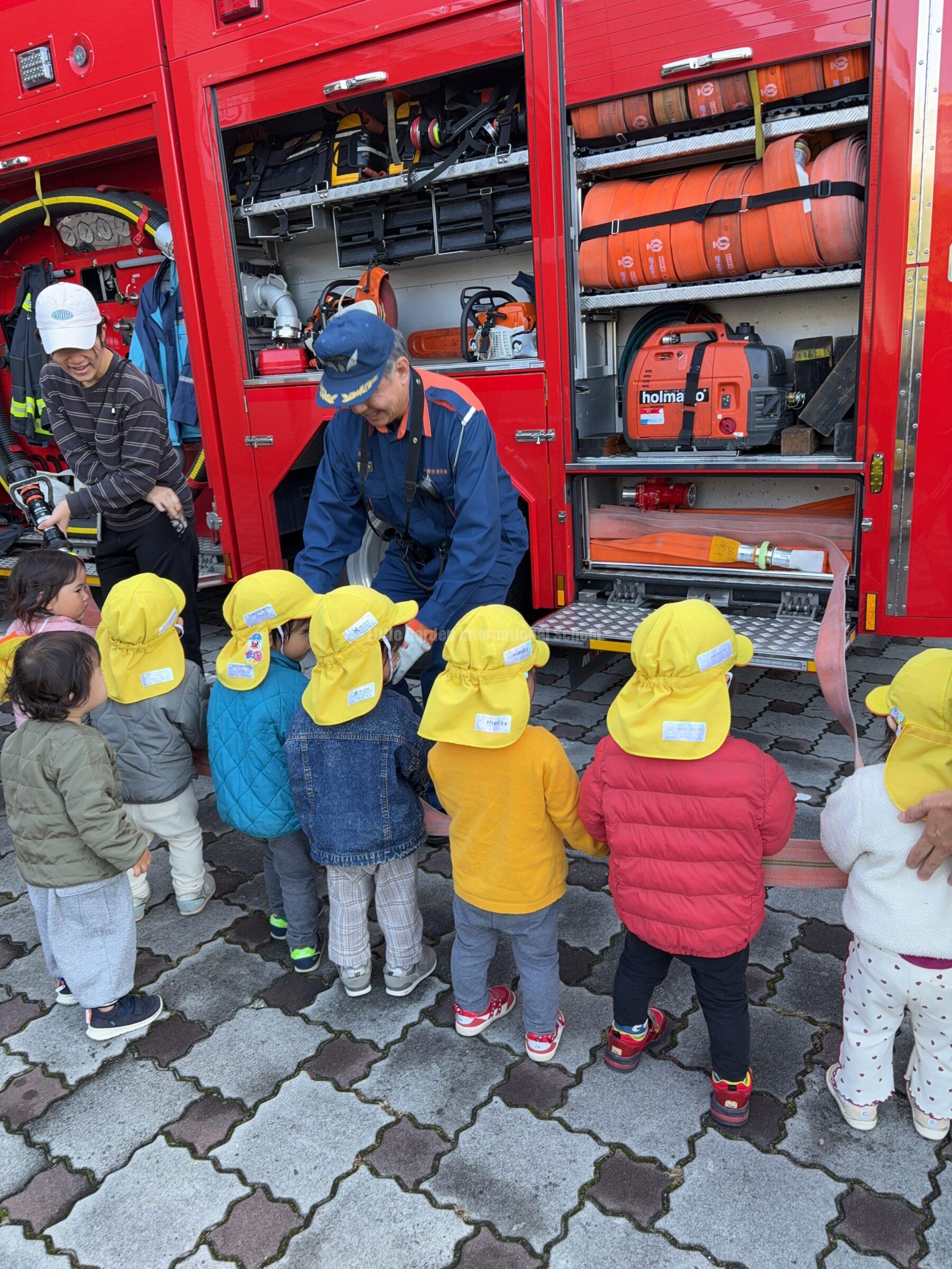 消防車の中っていろんな道具が積まれているんだなぁ…と興味津々なみんなでした☺