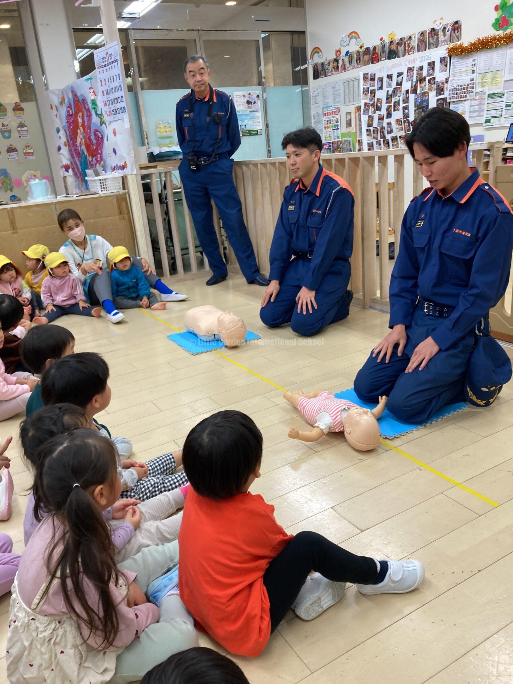 また、先生達の救急救命講習という事で、もしも倒れてしまった子がいた時の対処法等を指導していただきました。