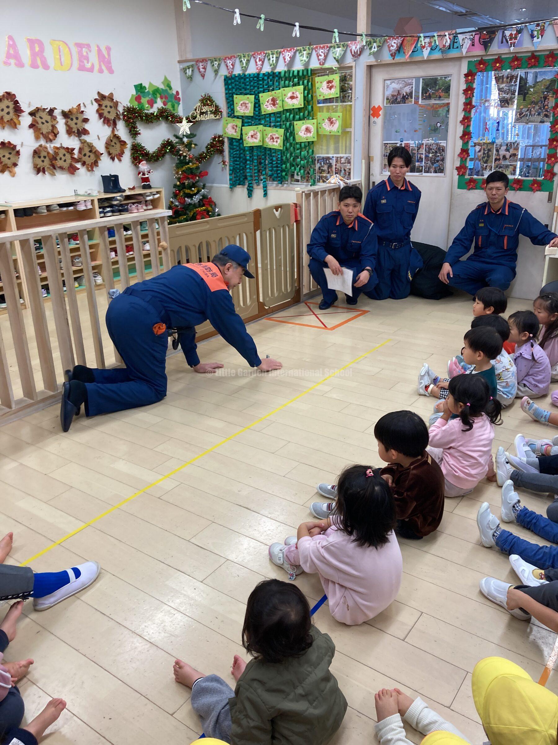 子どもたちみんなも真剣な眼差しで消防隊員の方のお話を聞いています…👀