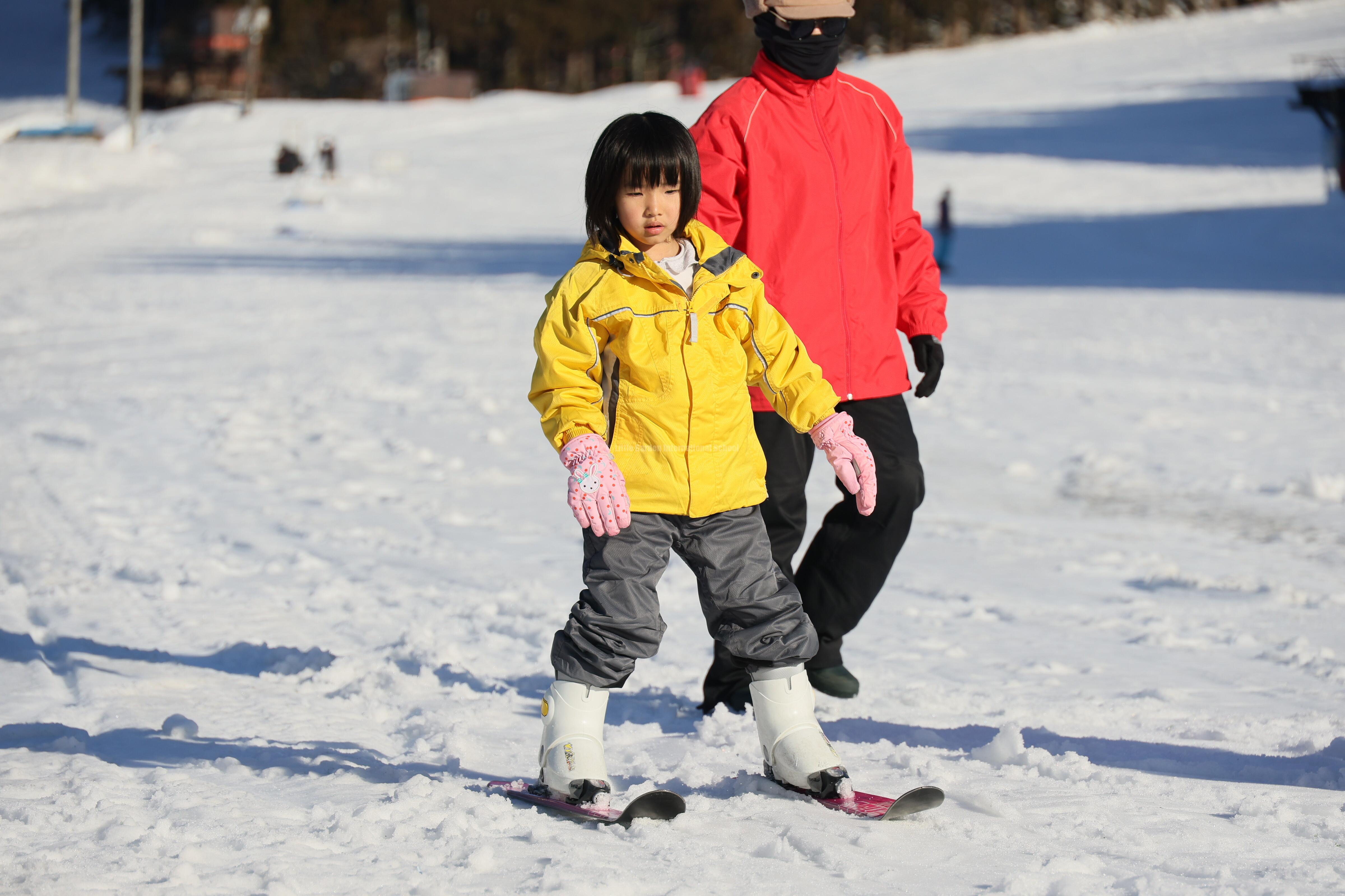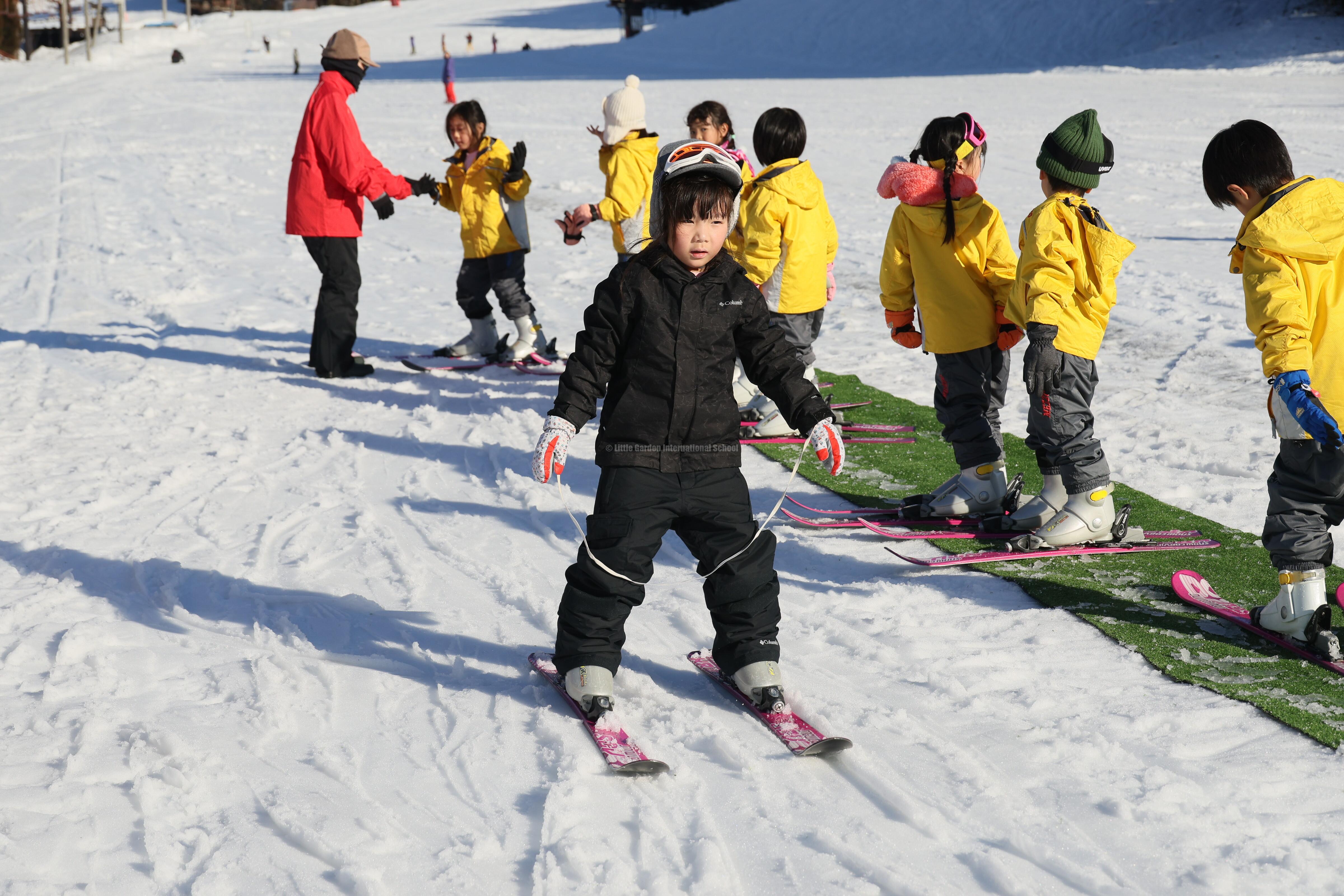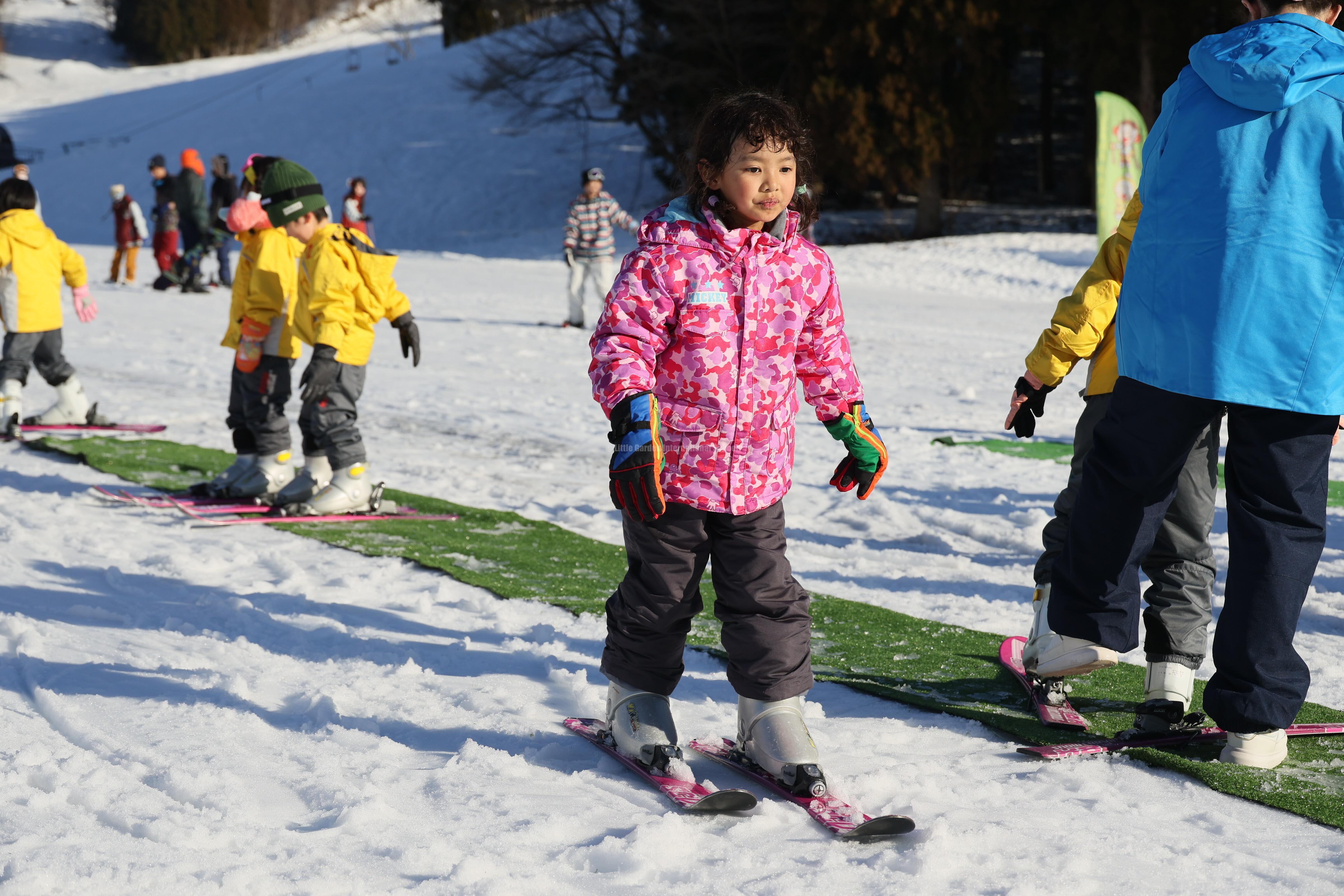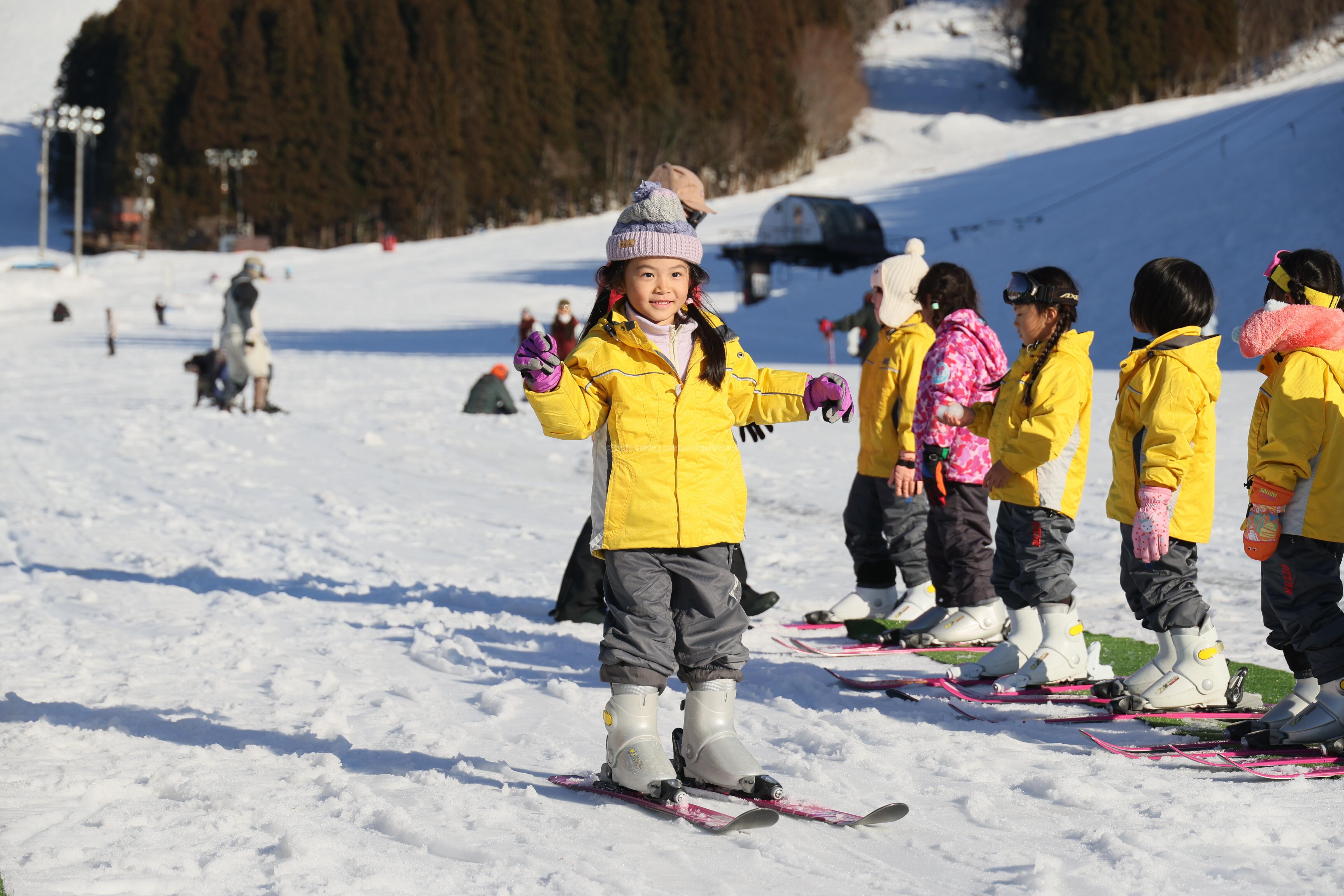 その後はいよいよスキーに挑戦!初めてのお友だちも、何度も挑戦するうちに少しずつコツをつかみ、楽しそうに滑る姿が見られました。
