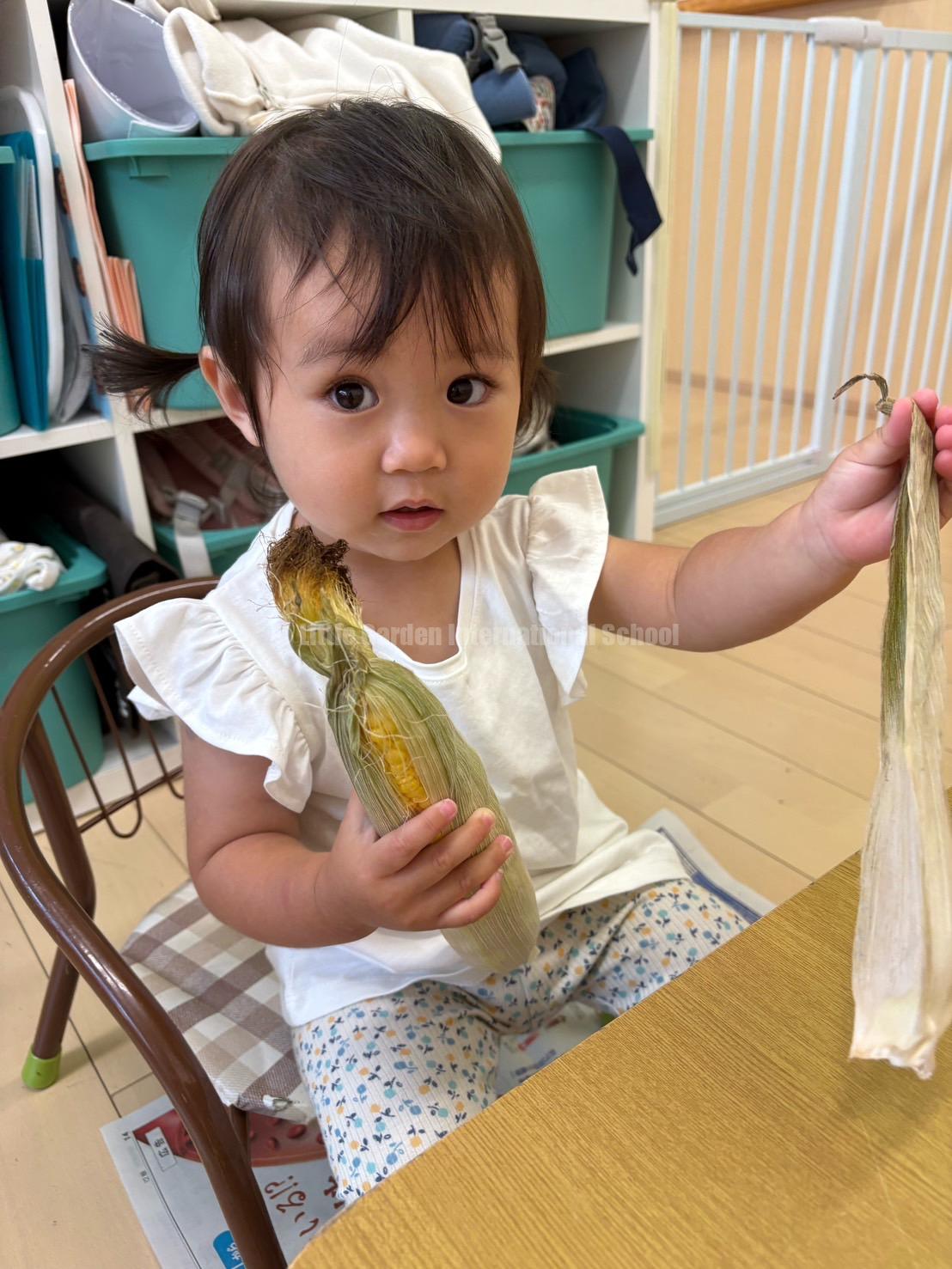 そしてその日の給食は『トウモロコシご飯』 「さっき剥いたのと同じだね~」と言いながら給食も楽しみました🍴