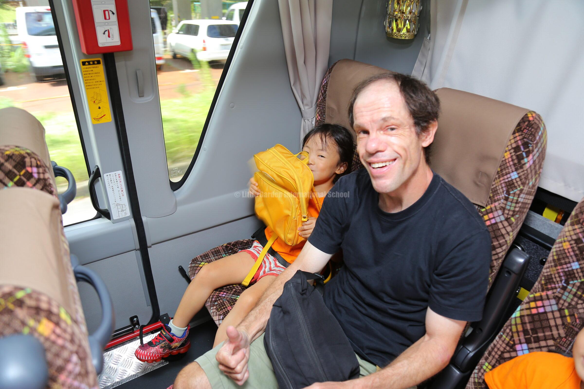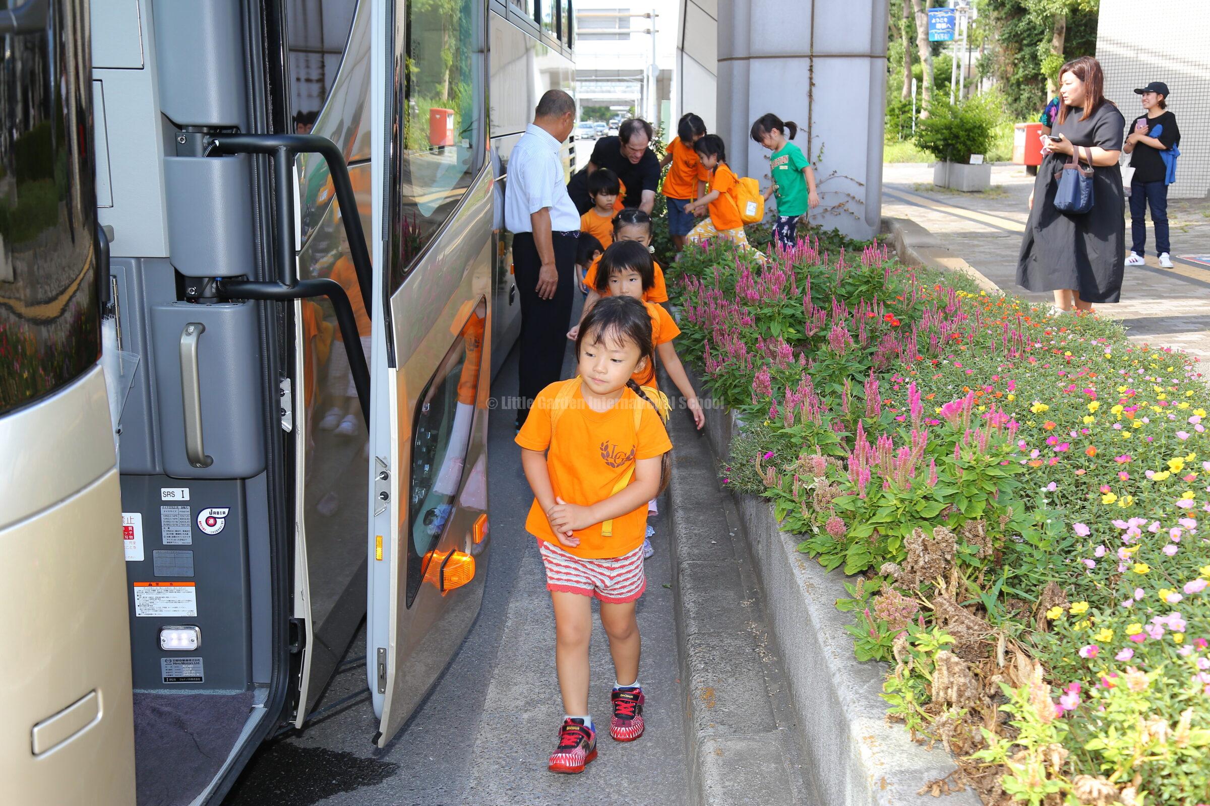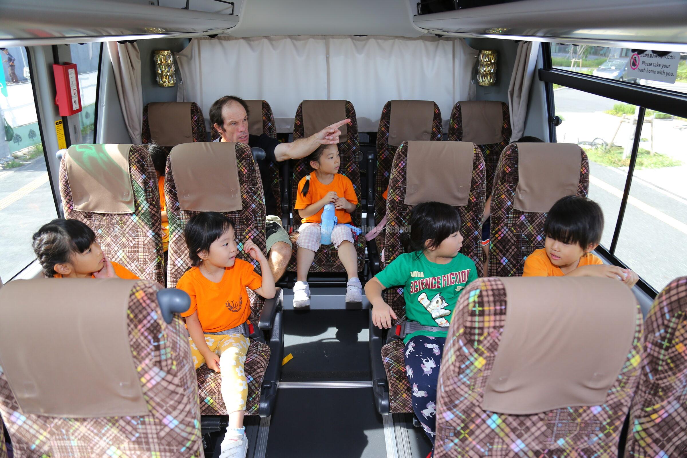 🚌 バスに乗って元気いっぱい出発!「まだかな〜?」「楽しみ!」とワクワクの表情でロマンの森共和国に到着しました。
