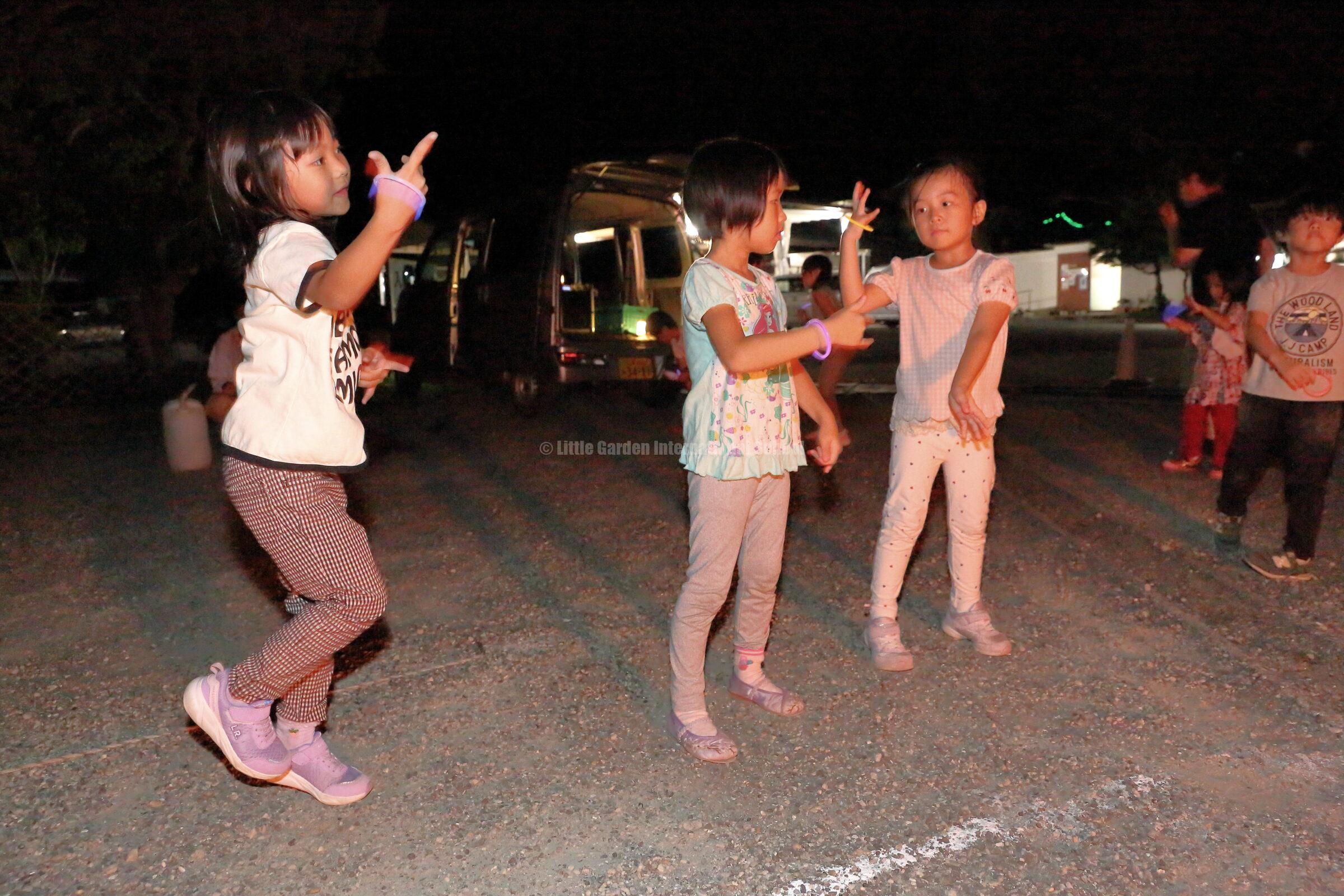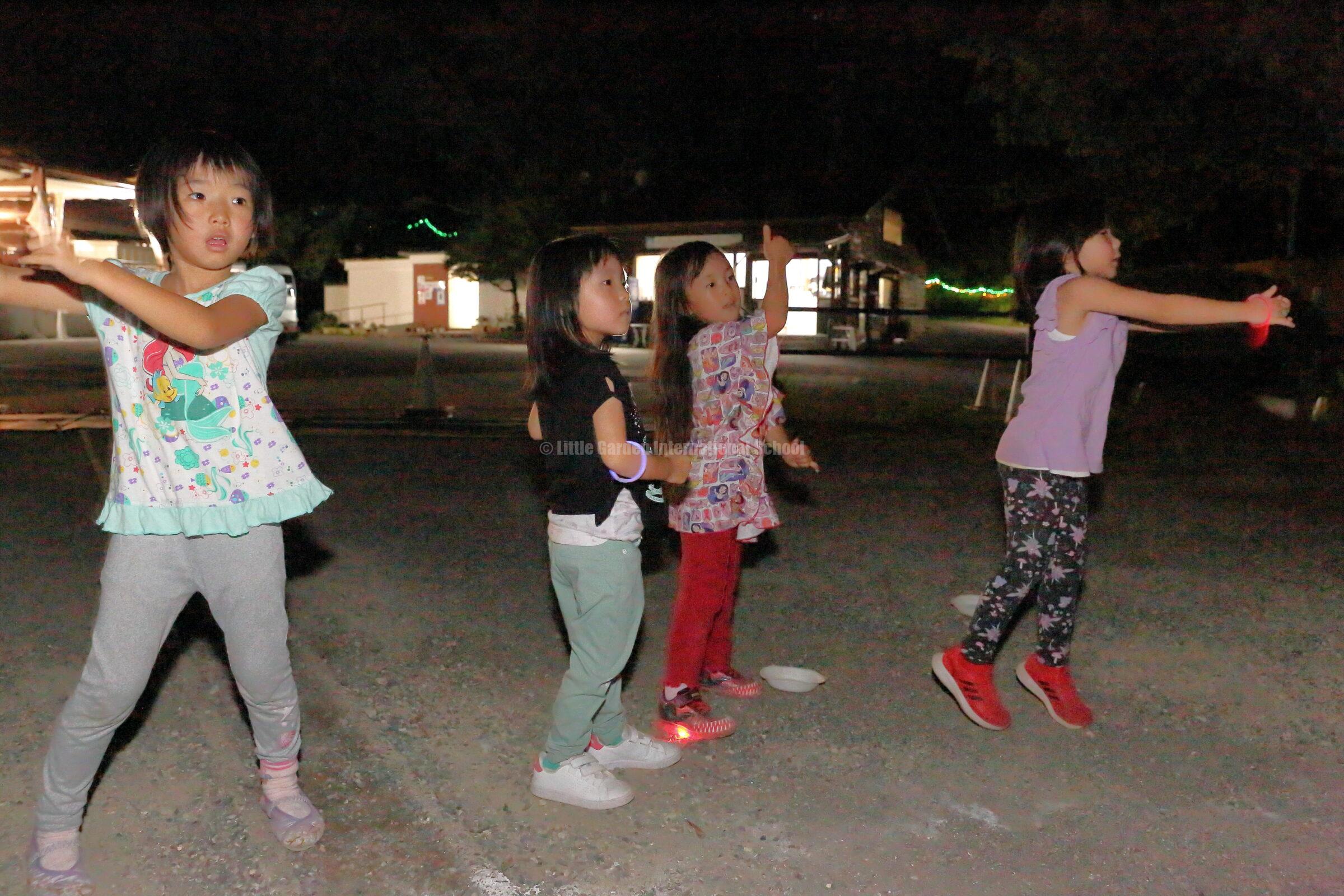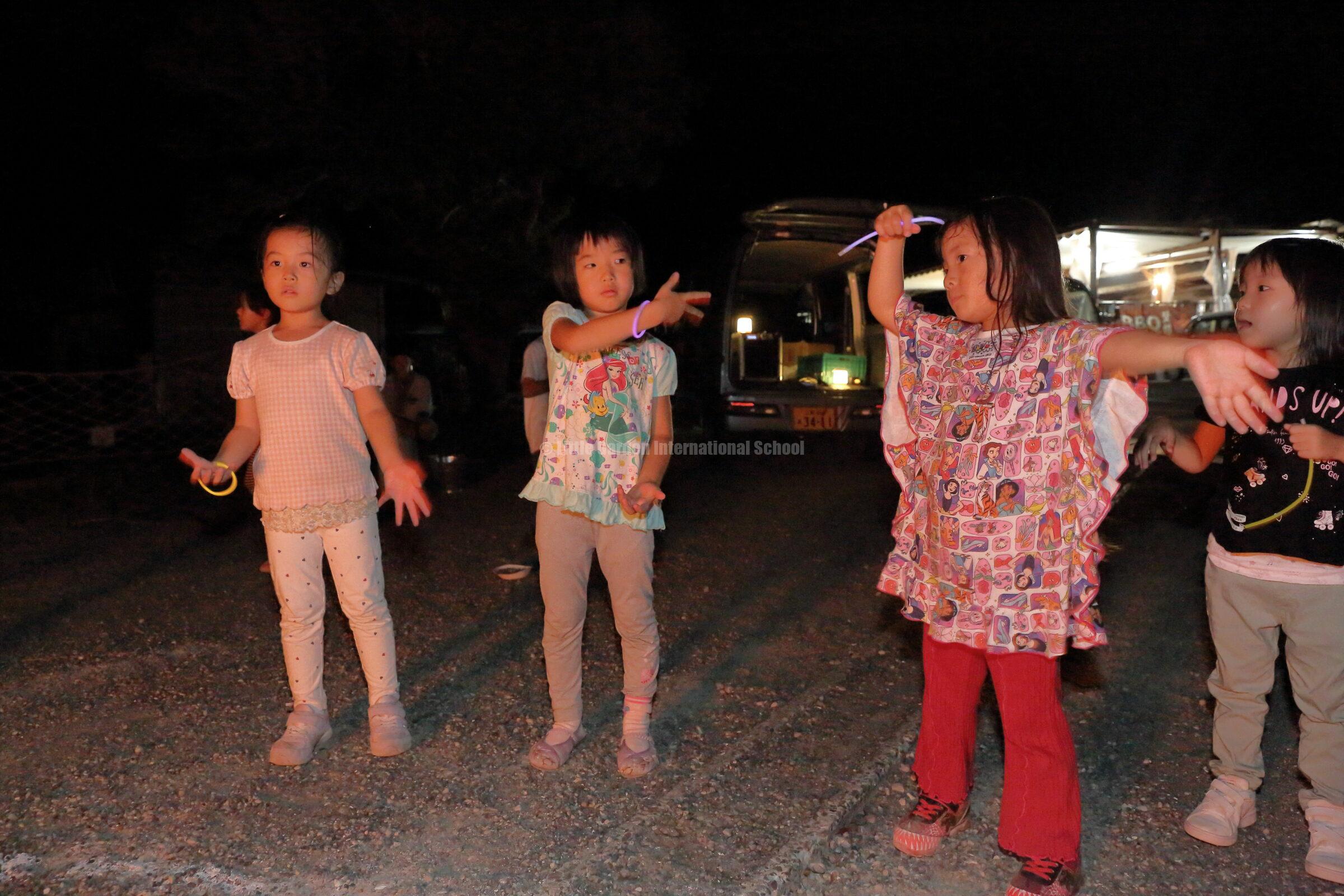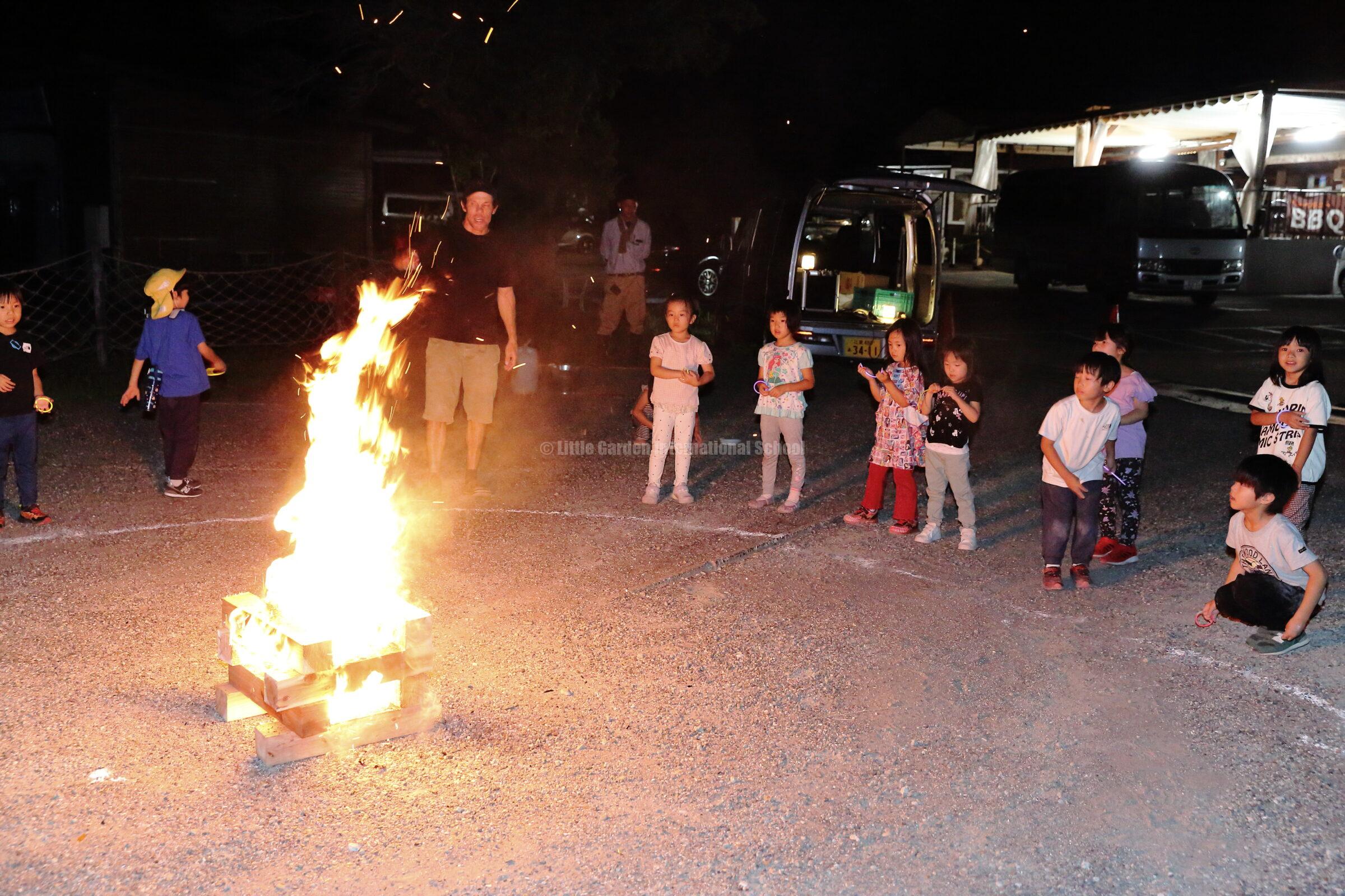 🔥 夜はキャンプファイヤー!歌を歌ったり踊ったり、炎を囲んで特別なひとときを過ごしました。