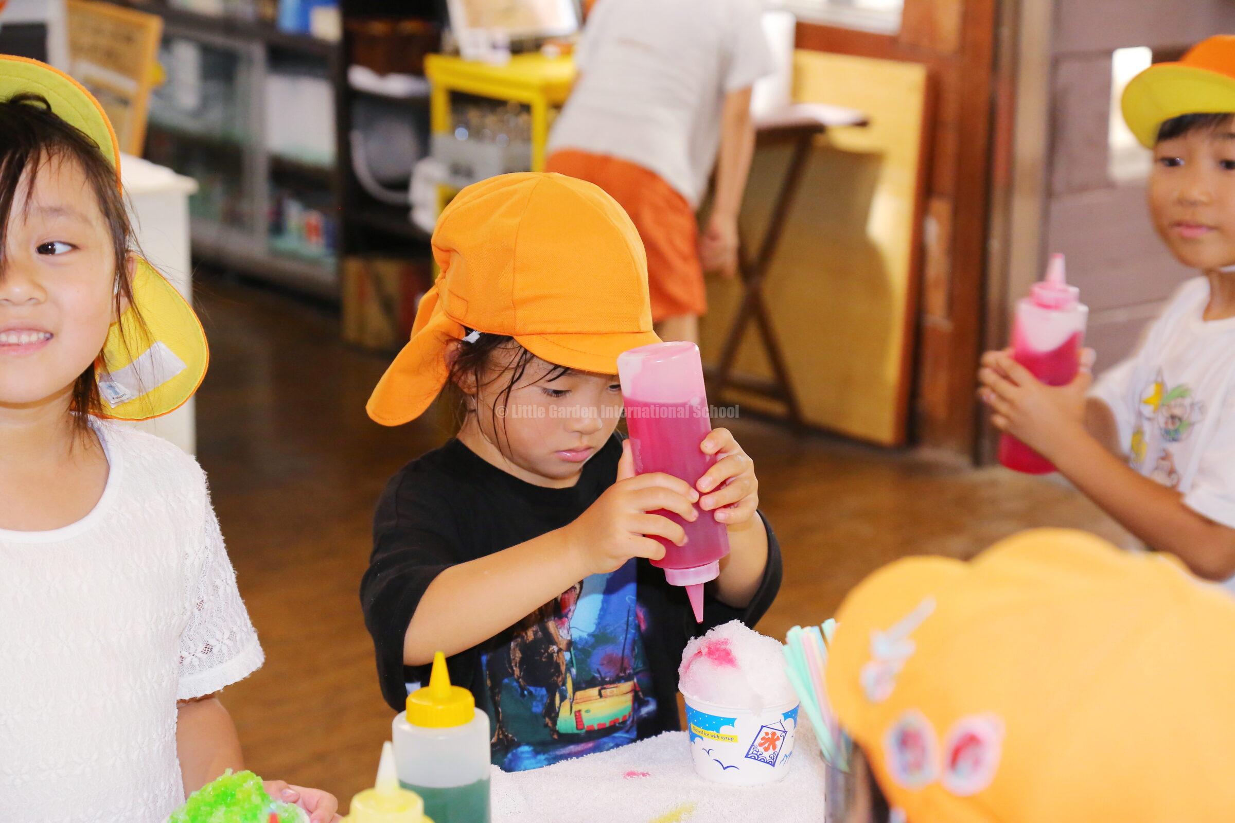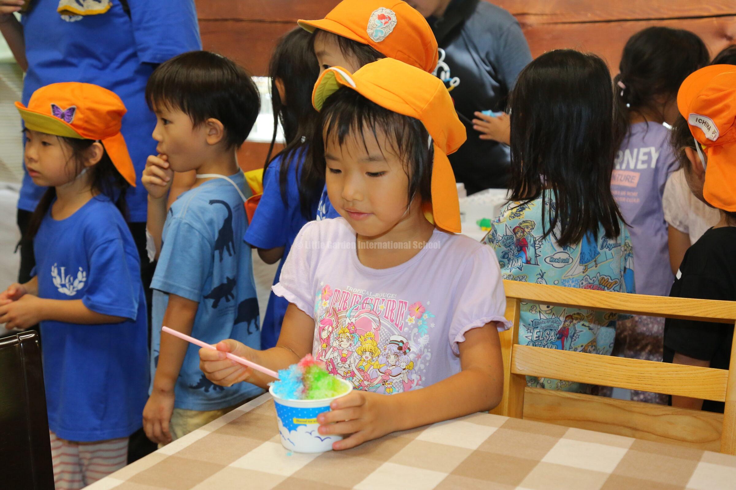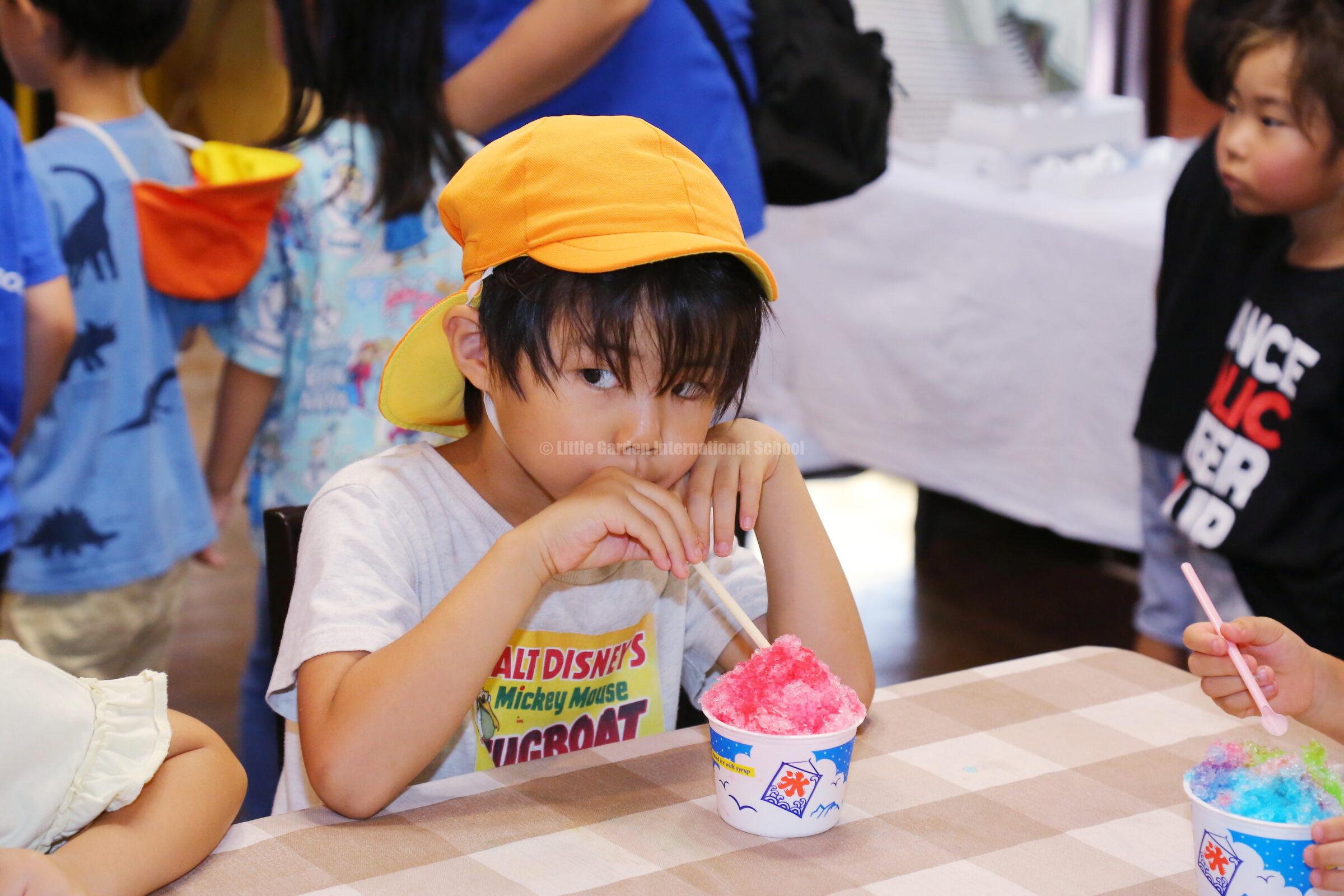 🍧 そして最後はかき氷タイム!「いちご!」「ブルーハワイ!」と好きな味を選んで、遊んだ後のひんやりデザートを楽しみました。