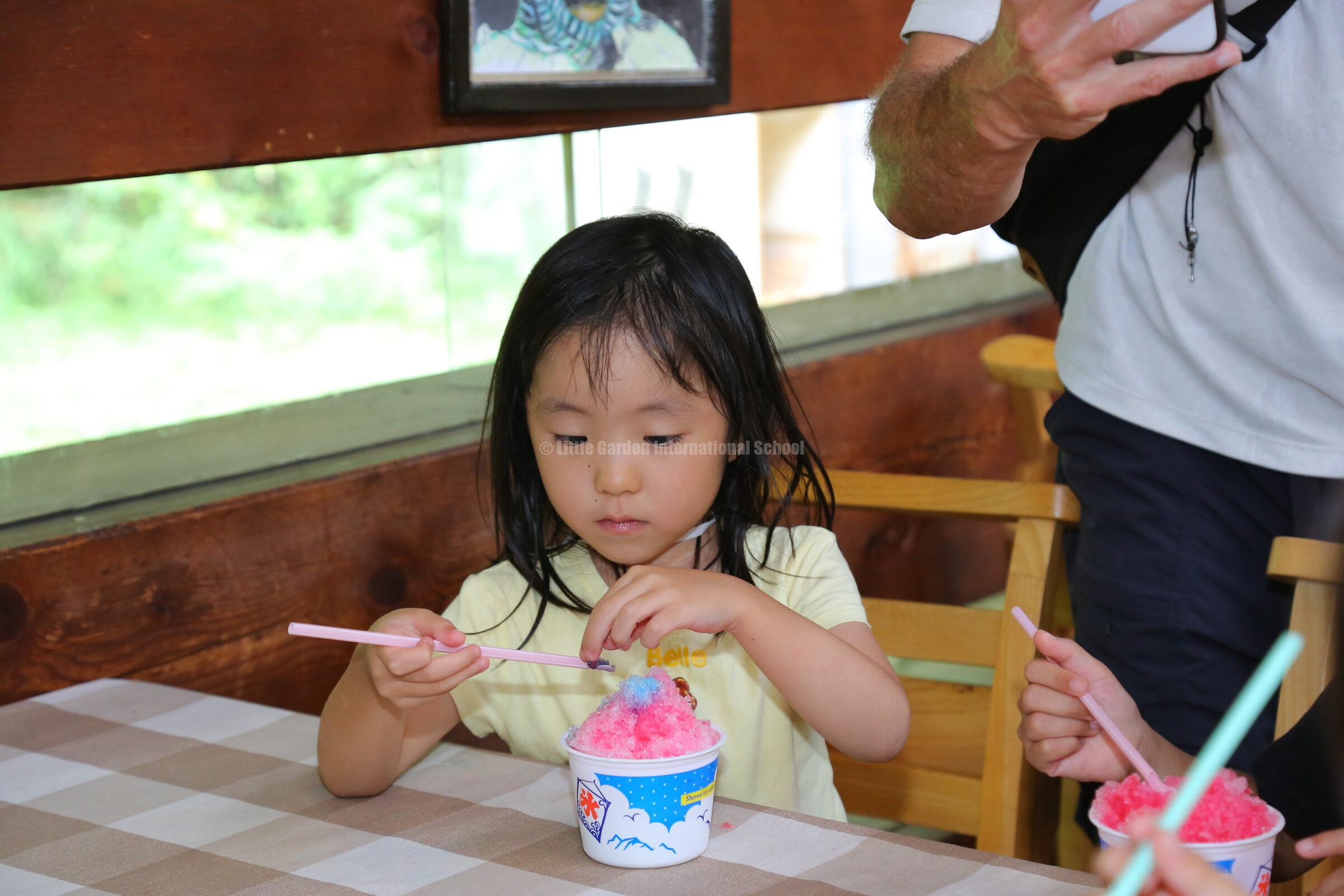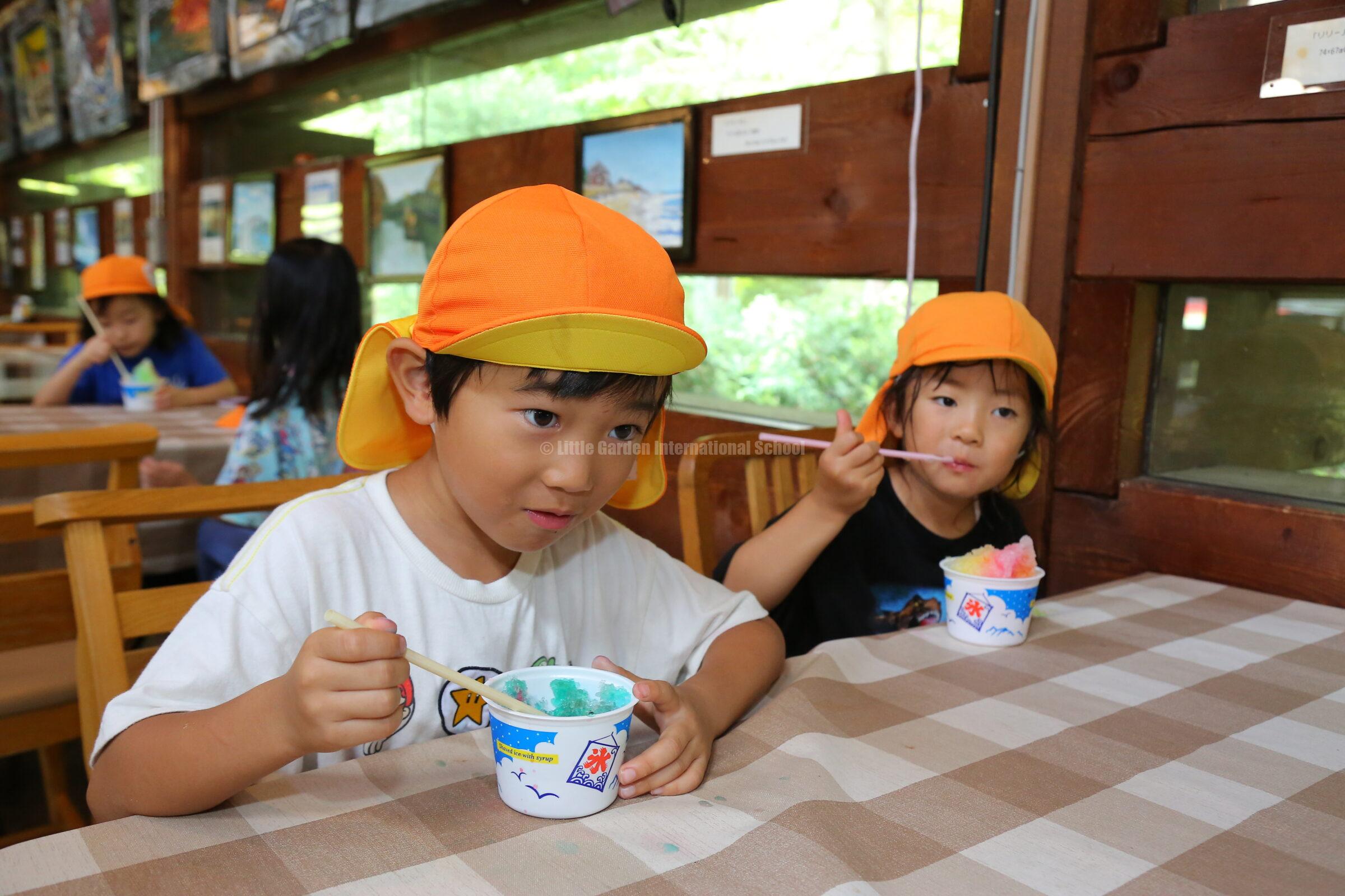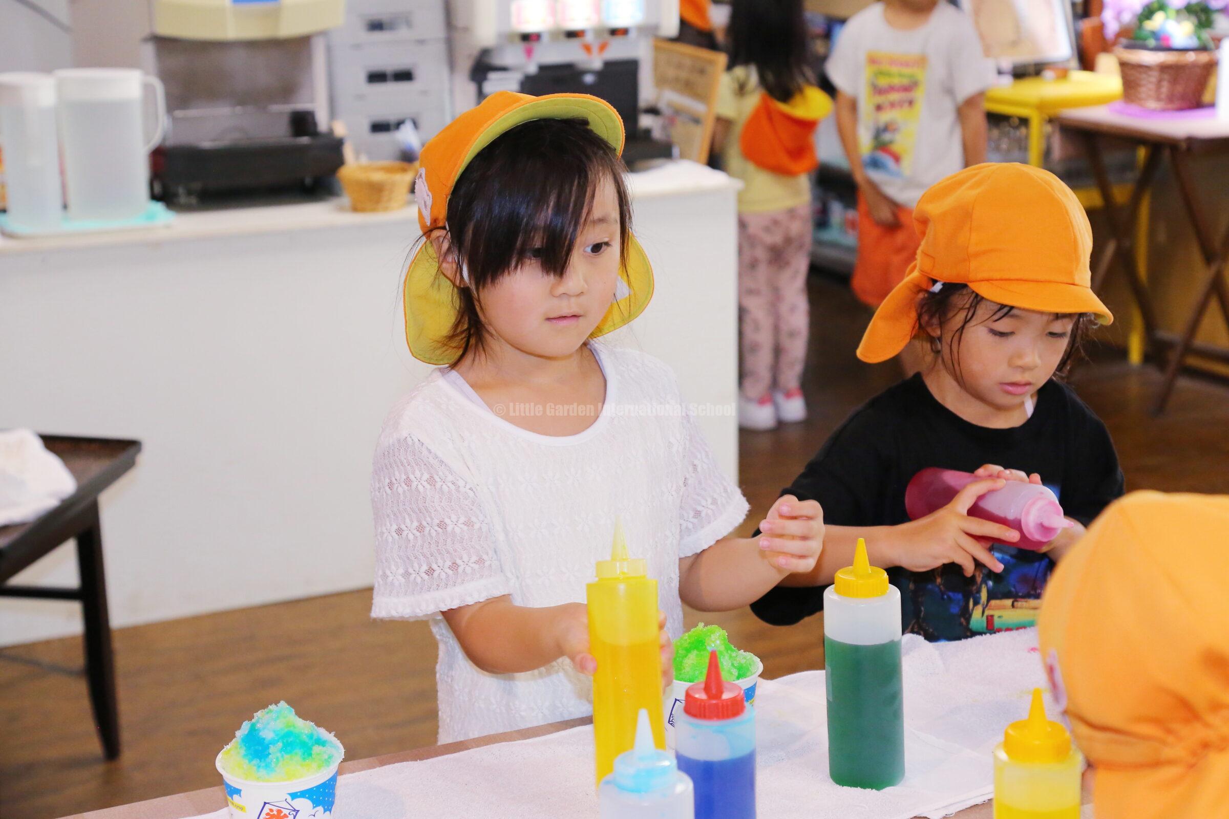 🍧 そして最後はかき氷タイム!「いちご!」「ブルーハワイ!」と好きな味を選んで、遊んだ後のひんやりデザートを楽しみました。