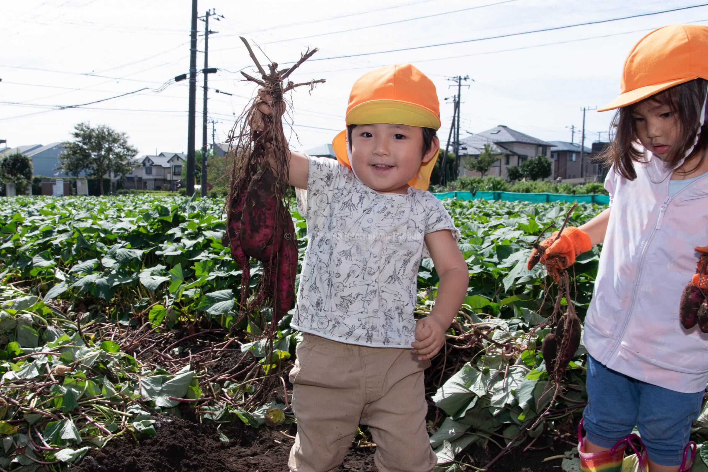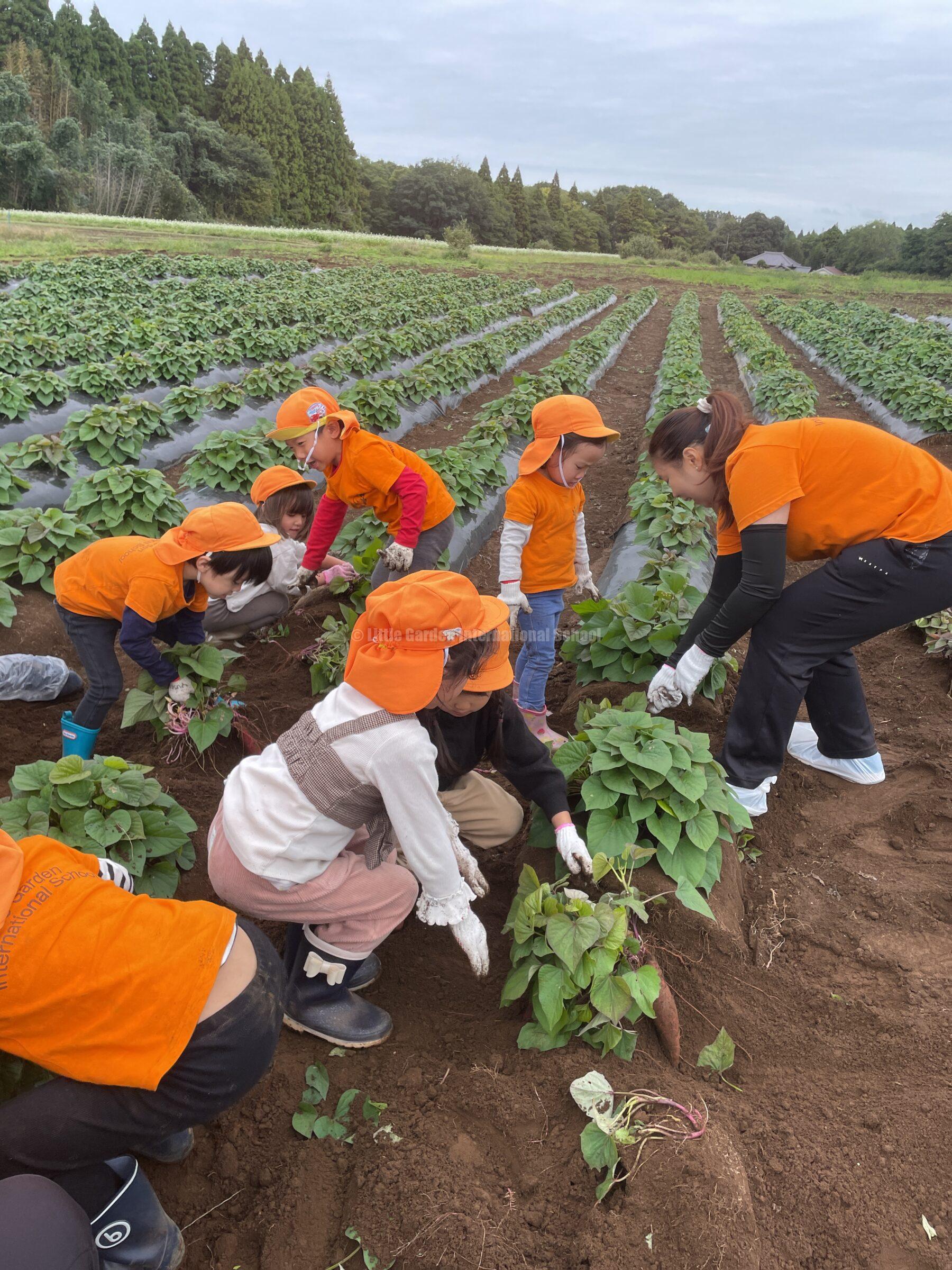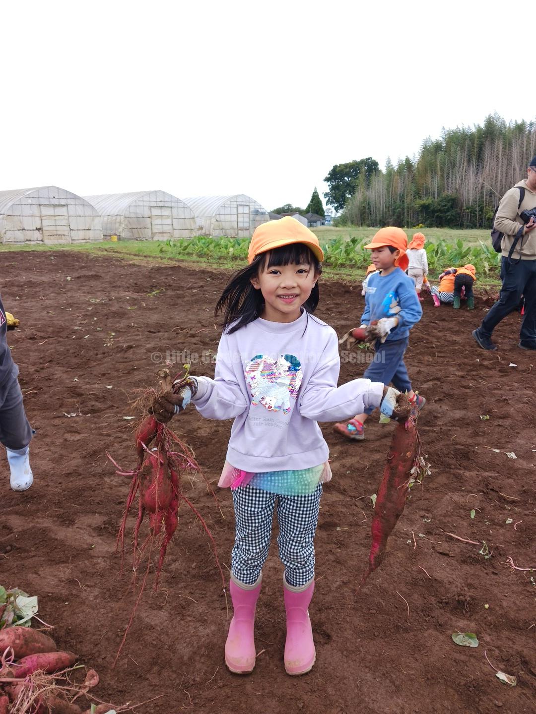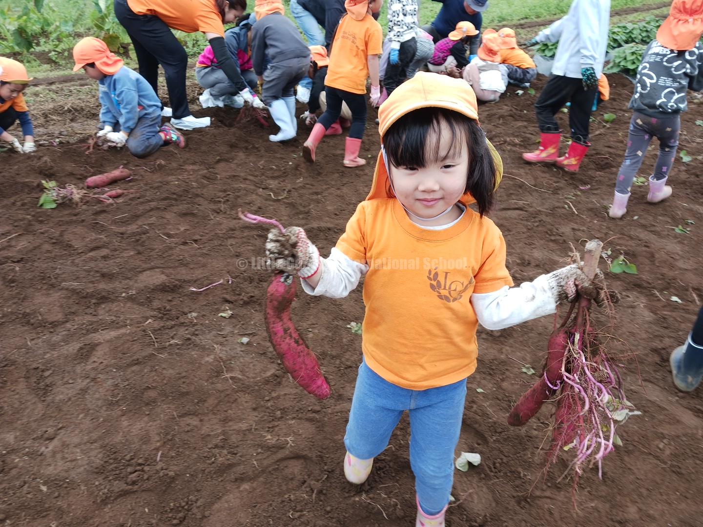 Preschool、K1、K2クラスのお友だちは、自社農園のLCファームで芋ほりを楽しみました。