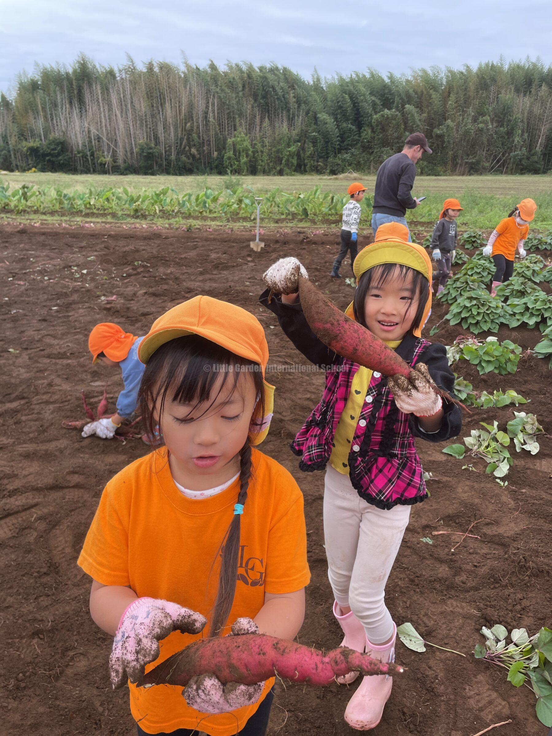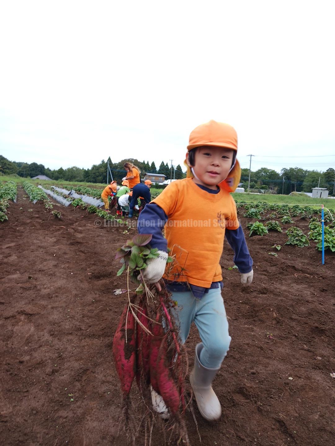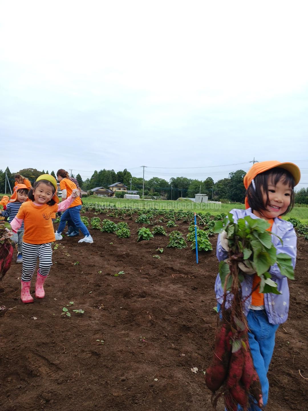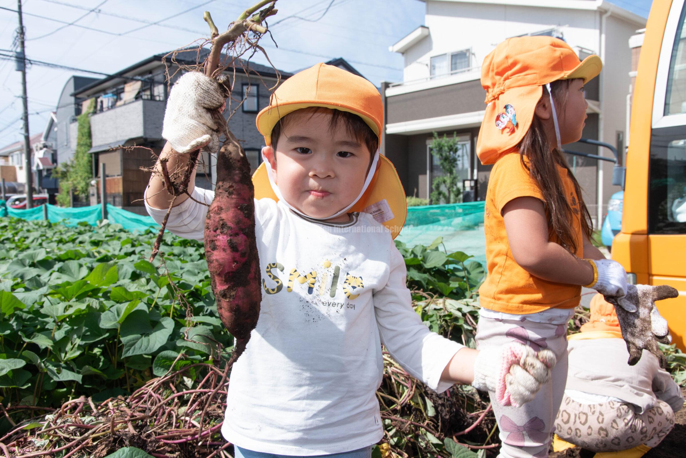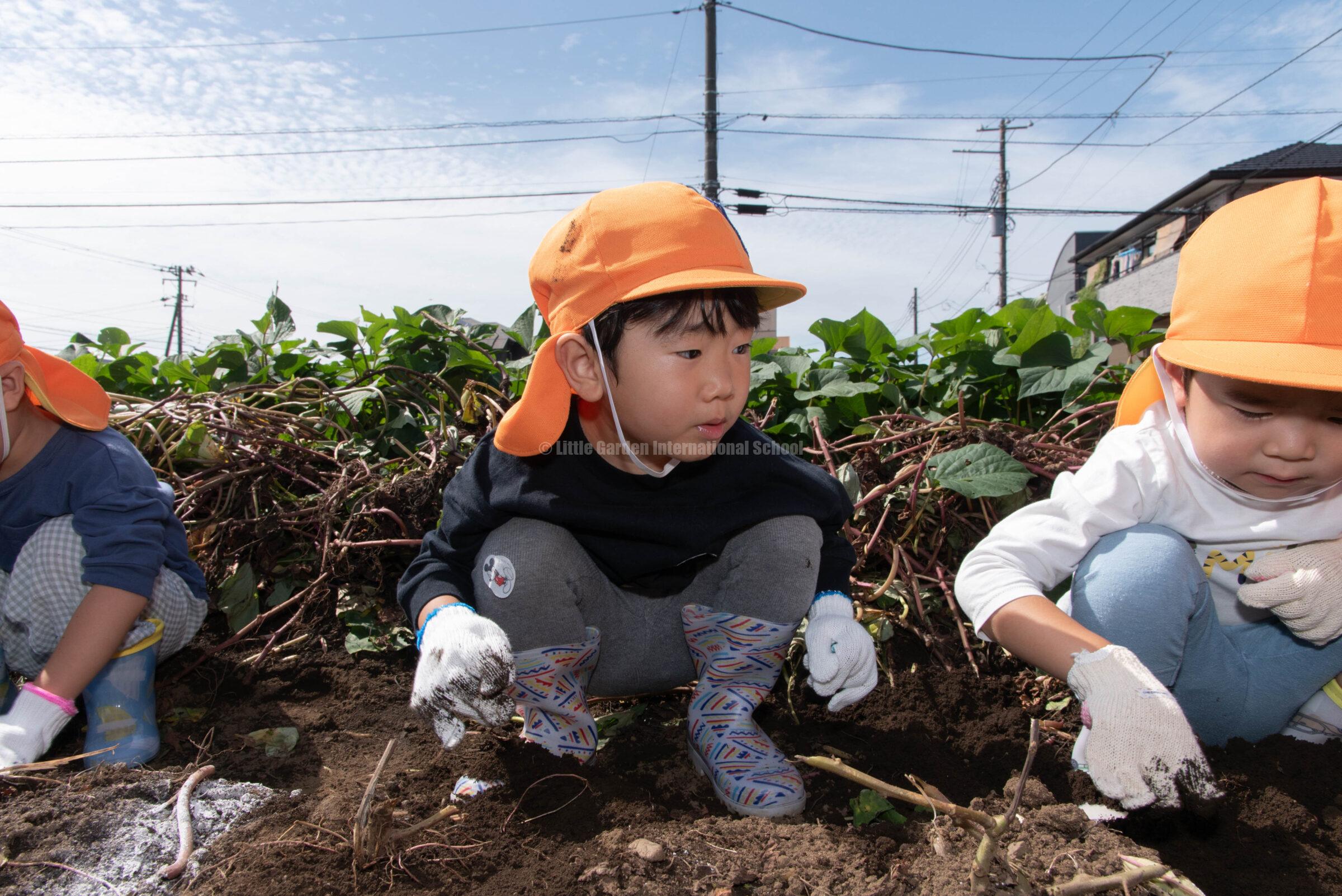 Preschool、K1、K2クラスのお友だちは、自社農園のLCファームで芋ほりを楽しみました。