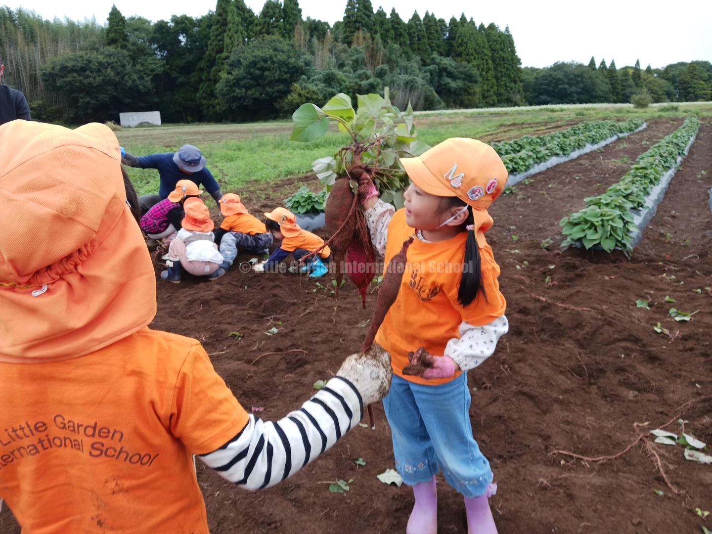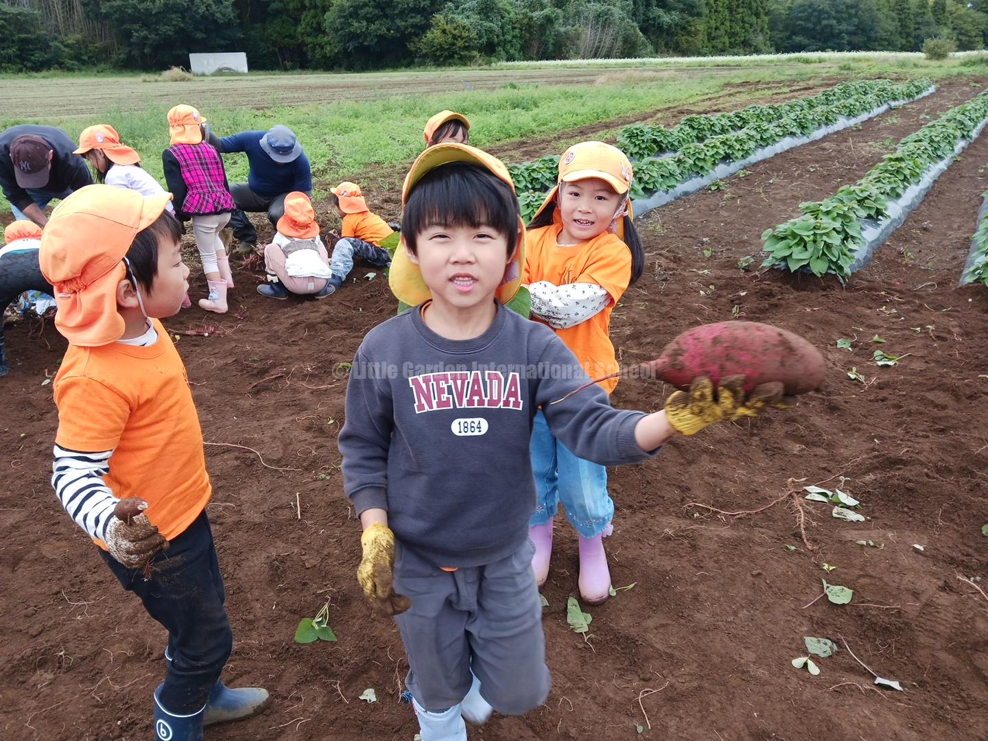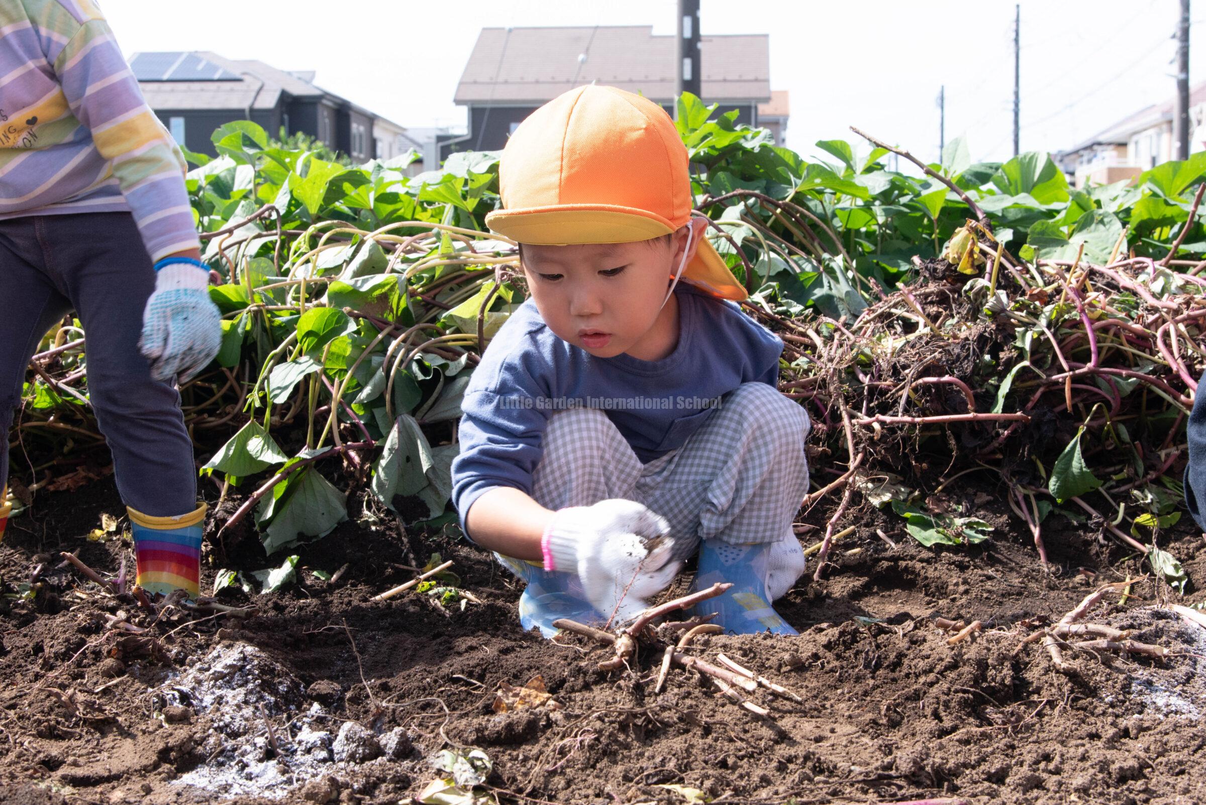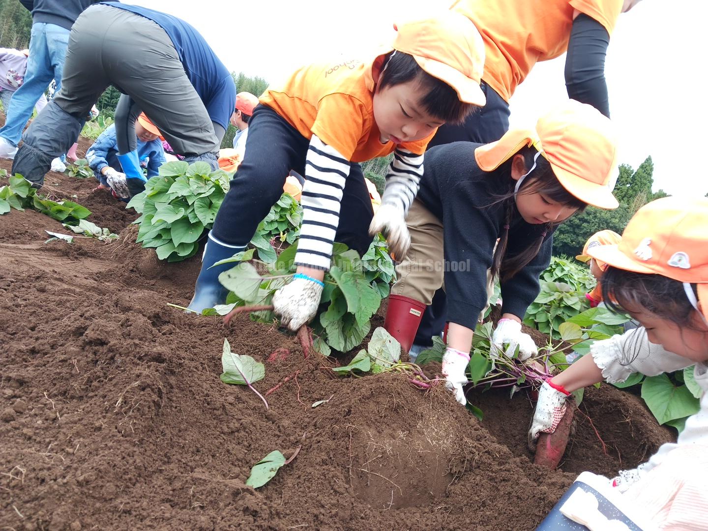 Preschool、K1、K2クラスのお友だちは、自社農園のLCファームで芋ほりを楽しみました。